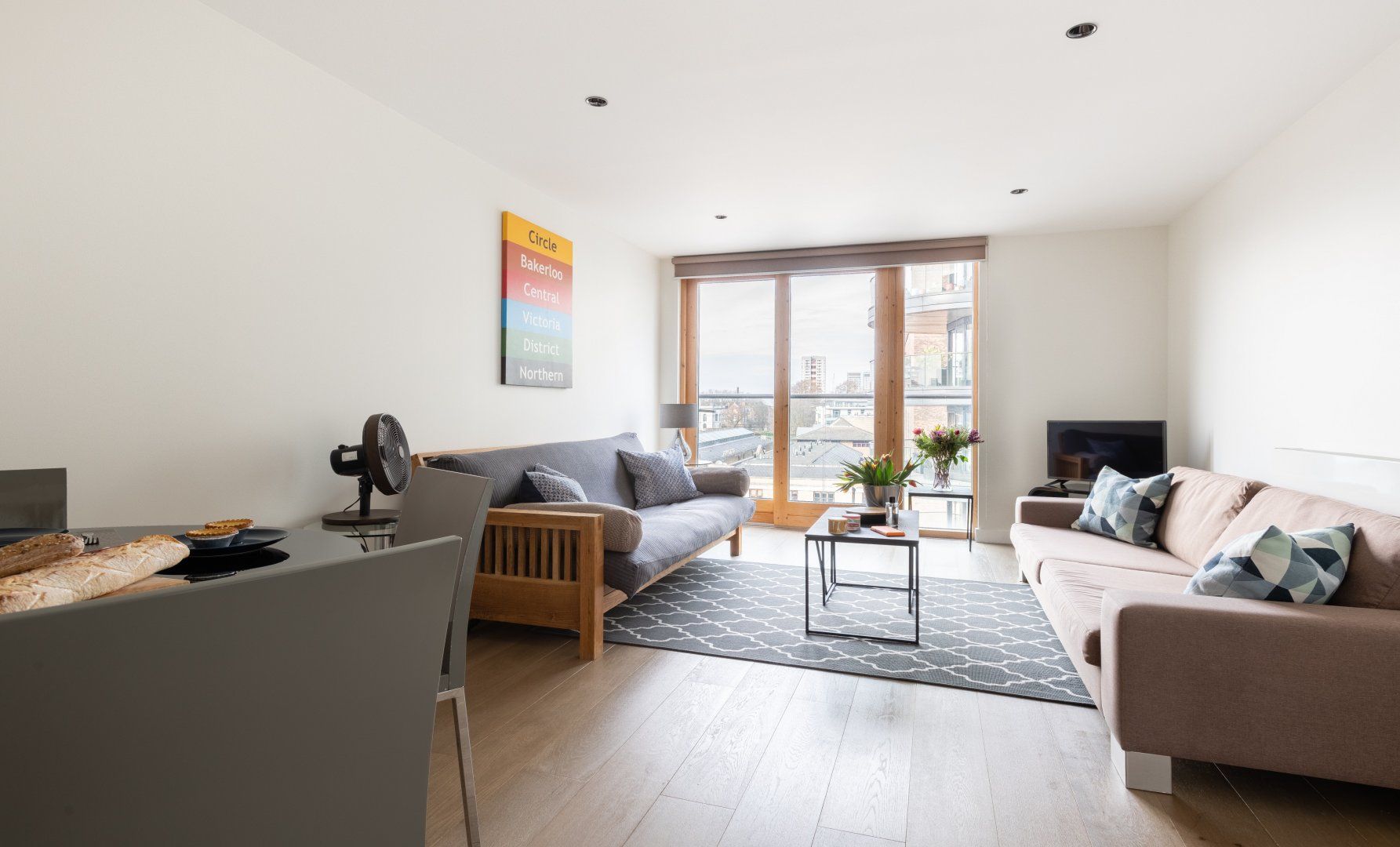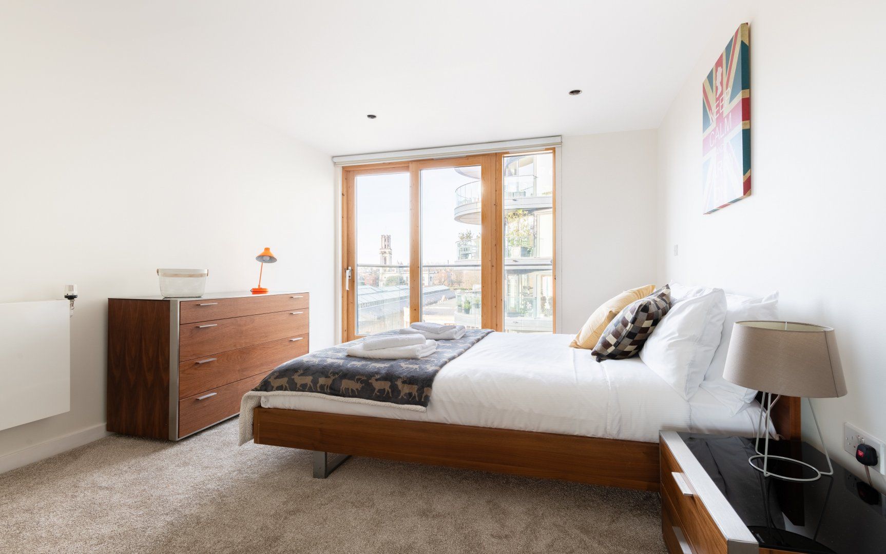 Located in Wapping and overlooking Tobacco Dock, this bright apartment gives you bird's eye views across the city and a comfortable base to call home.
