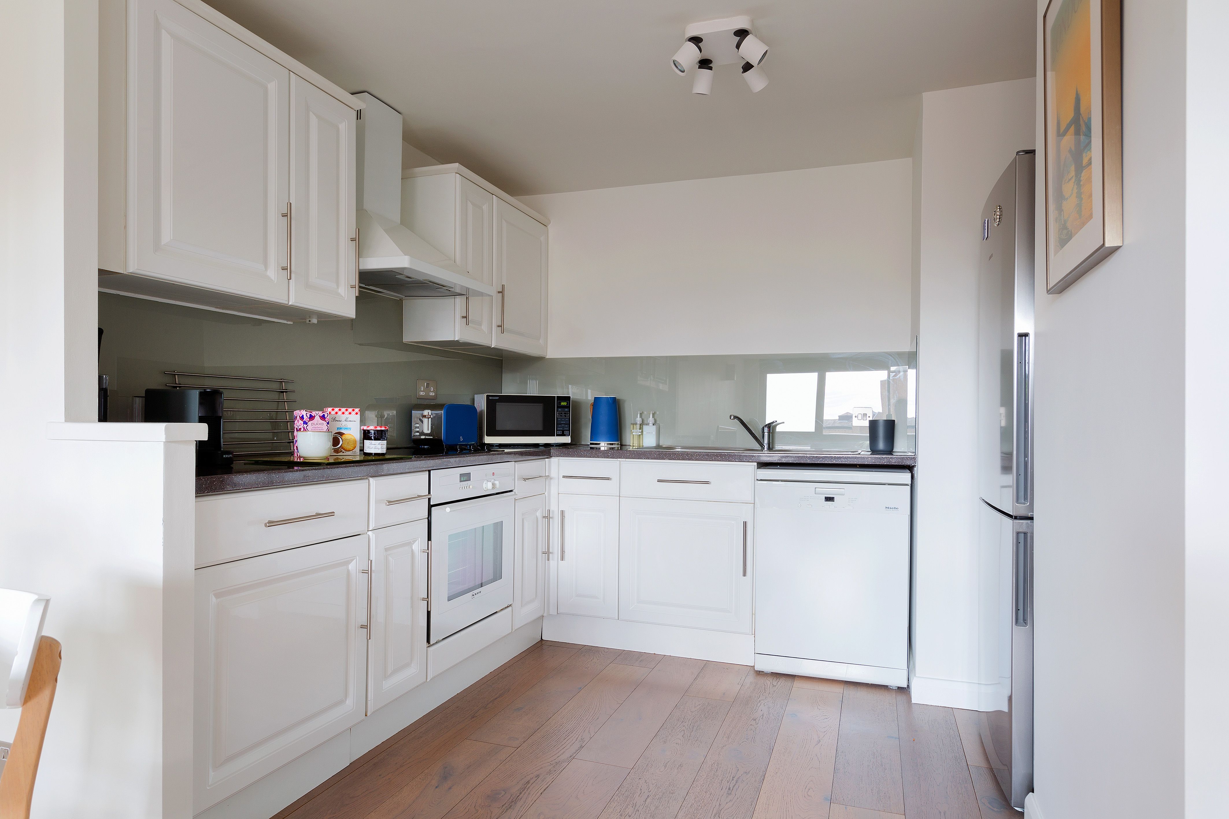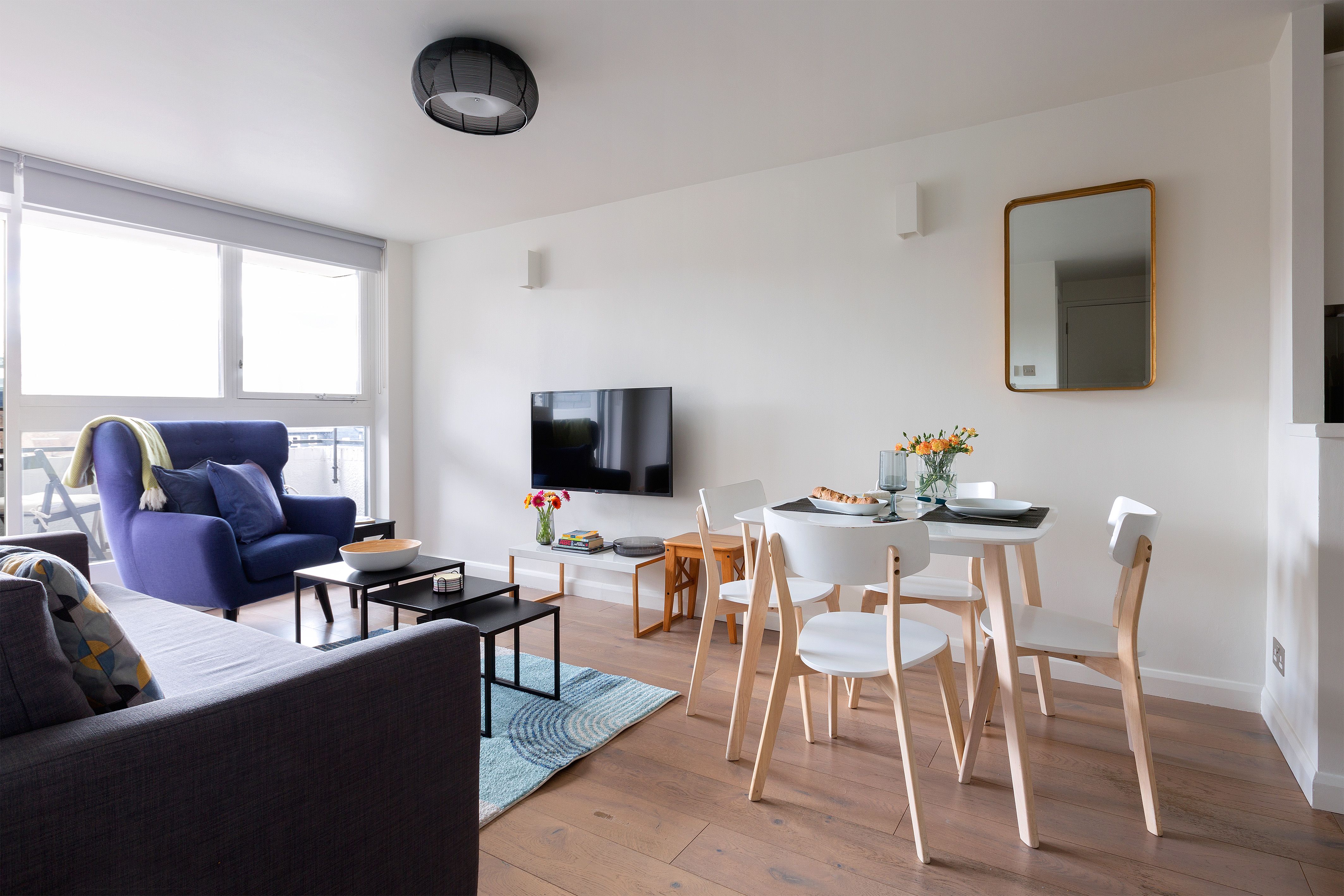 You'll find this contemporary apartment in St Katharine Dock, just a stone's throw from Tower Bridge, the Tower of London, and Tower Hill. Whether you're a first-time visitor keen to sightsee or a business traveller needing to work from home, this pad has you covered. There's a desk in the bedroom, a living area with a sofa bed, and a private balcony offering a view of Tower Bridge and the Shard. Style-wise, it's definitely on the simpler side, but we think the views and location speak for themselves.