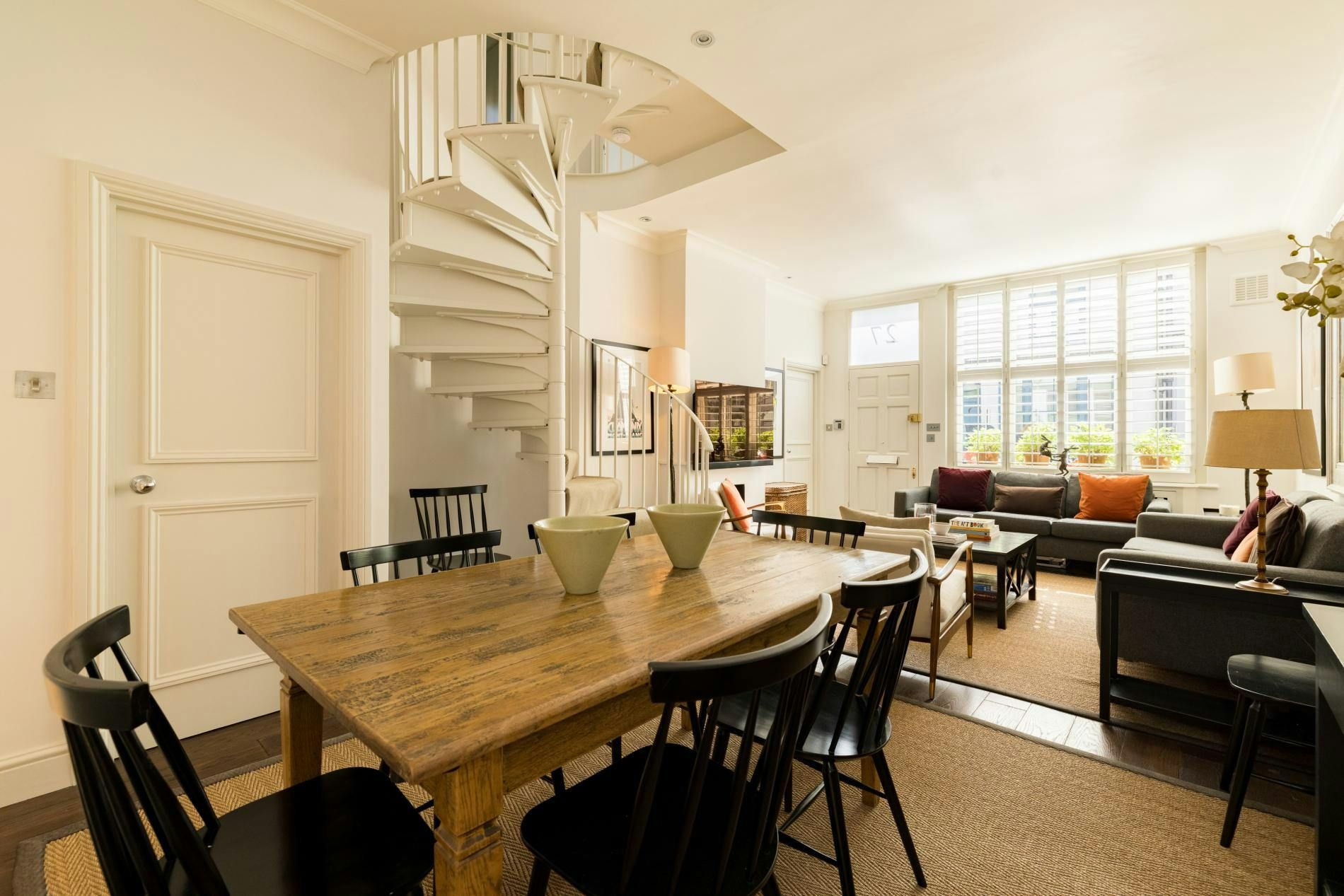 Occupying a pretty spot in a quiet mews street, this home feels like a hidden gem. There’s a terrace with outdoor seating for warm weather drinks and the rooms are perfect for cosy gatherings or catch up work sessions. You’ll find plenty of space to stretch out across the two floors and all the essentials are provided to help you settle in. Plus, the location couldn’t be better for explorations across London. From here, you can stroll through South Kensington to Hyde Park and you’ll be spoiled for choice when it comes to local restaurants and coffee shops. Plus, it’s just a short walk to the nearest tube station – providing quick links with the rest of the city.
