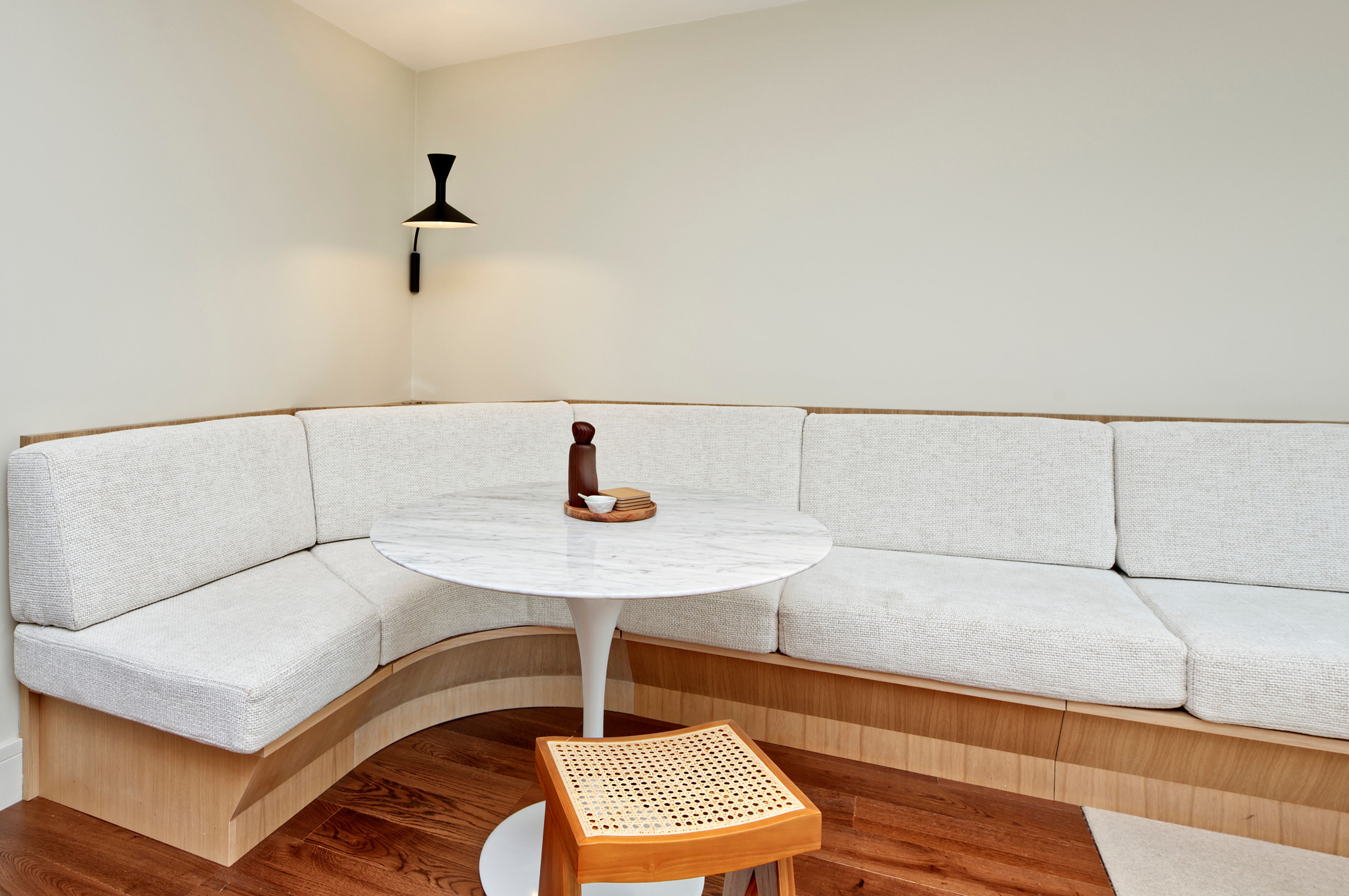 *There isn’t a real lounge here. The custom-built banquette is used as a dining area, workspace, and sofa.