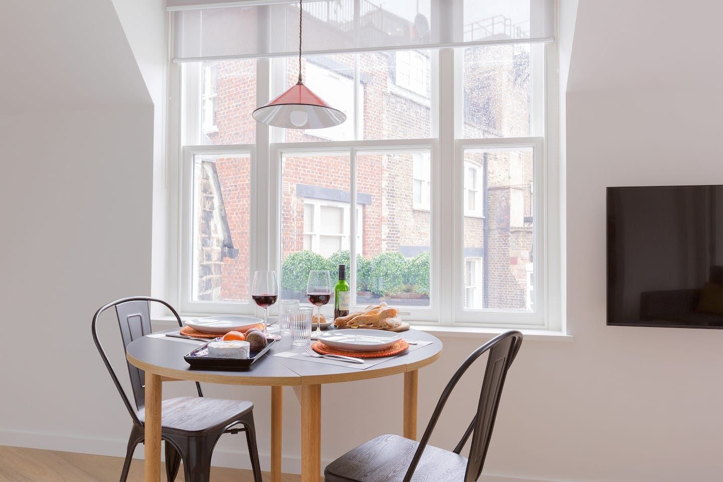 Whether you're a city-breaking couple or a business traveller, this stylish London pad is perfectly suited in both size and location. Sitting above Villiers Street connecting Charing Cross and Embankment station, you're well-connected to all the big sites and only a short stroll from an array of critically acclaimed restaurants in classy Covent Garden. Walk along the South Bank waterfront or visit the National Gallery – whichever way you turn there are things to see and do here. Back in your cosy digs, you'll find a modern interior with sleek wooden floors, industrial-style dining chairs and a contemporary kitchen that's ideal for knocking up a lazy brunch. And for those keeping one eye on work during their stay, there's a stylish study area in the bedroom for powering through. While all the usual mod-cons set the scene for a comfortable stay, we love the original features, with the exposed brickwork and old fireplace gap that echo back to this home's Georgian history. It's this blend of old and new that makes the apartment a homely and inviting city bolthole to return to after a day spent sightseeing, working or generally overindulging.