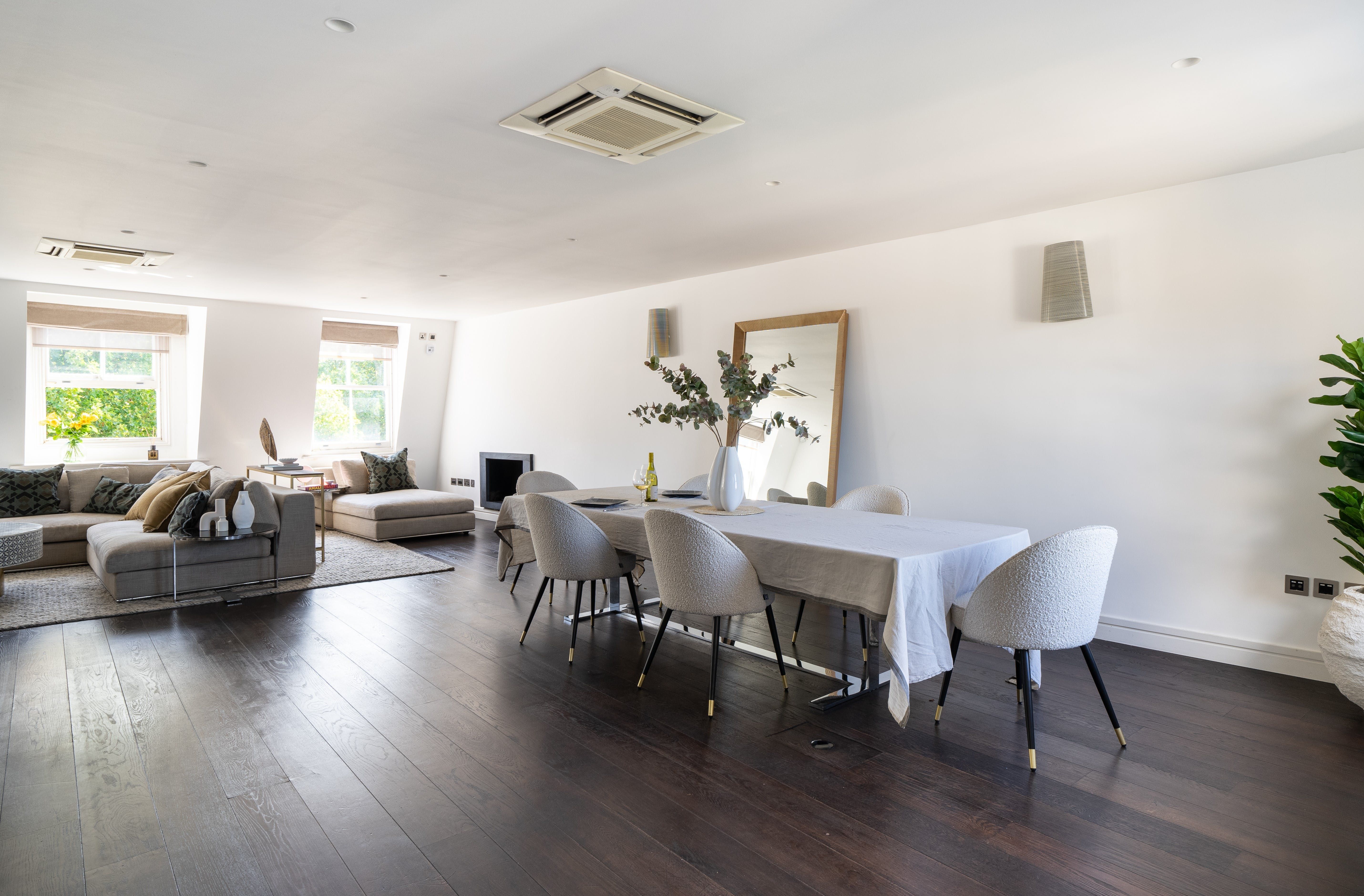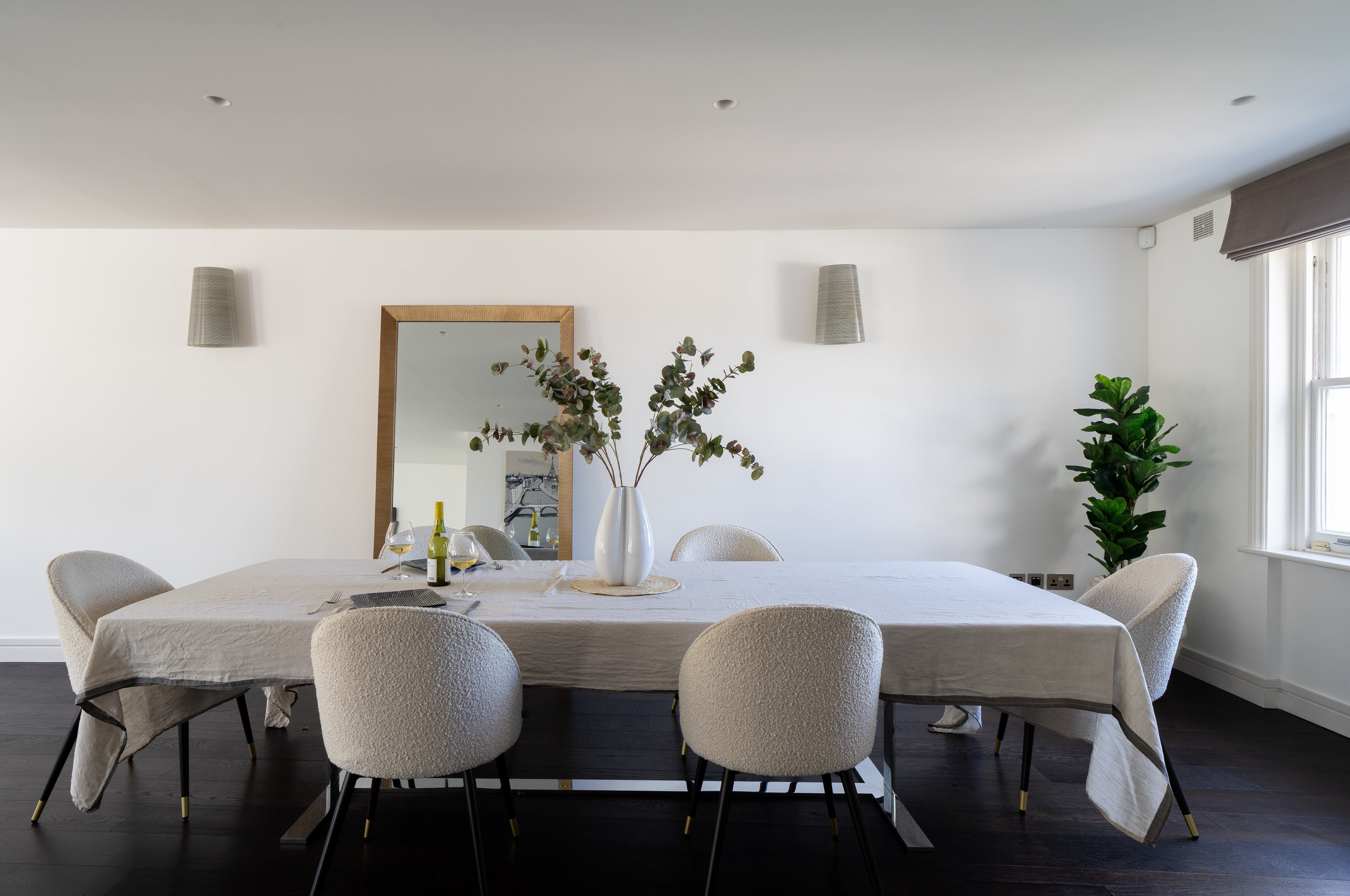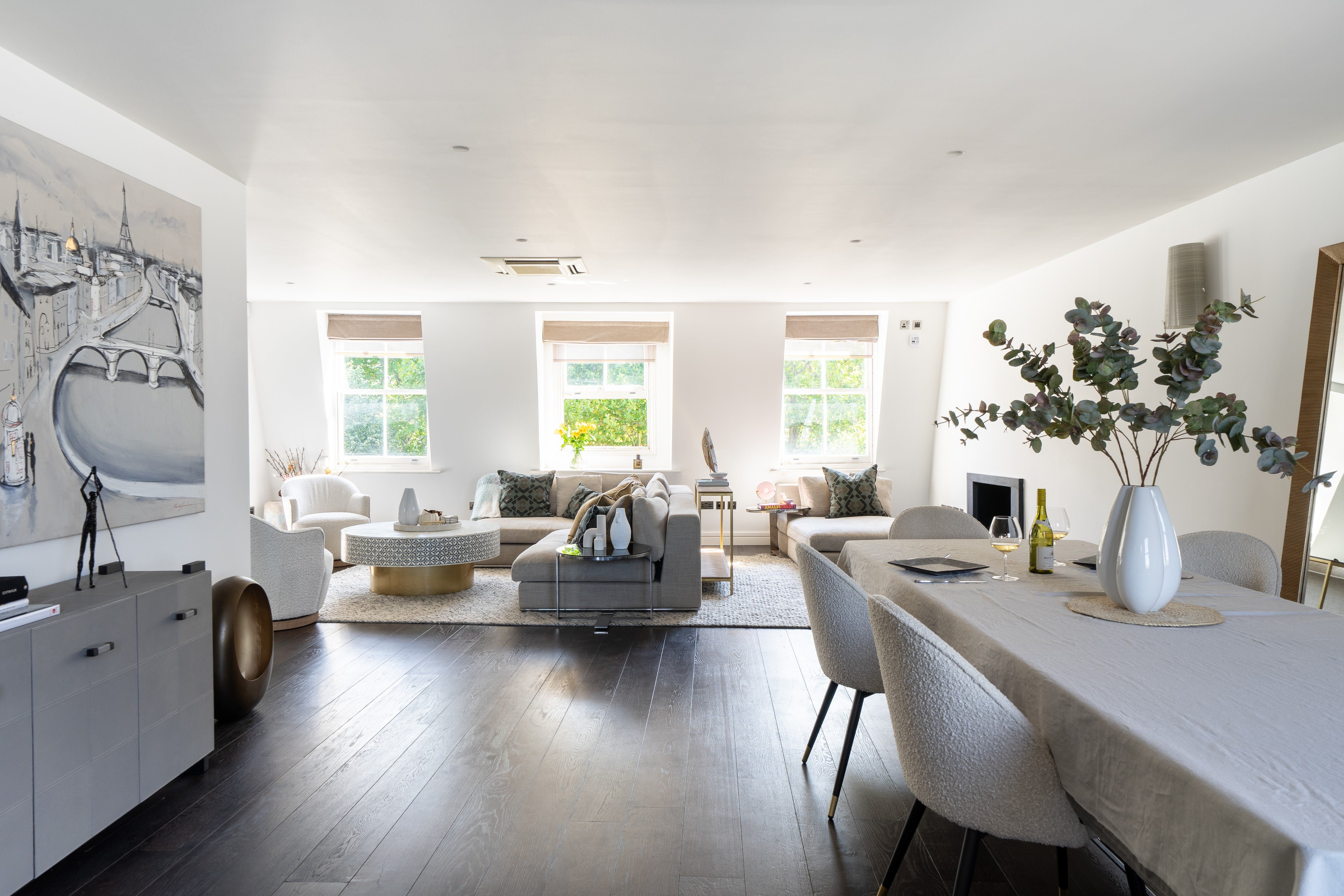 This luxurious London home is perfect for a couple of couples or a small family seeking to explore all that the UK capital has to offer. Featuring a modern, fully-equipped kitchen and large, light-filled open plan living and dining room courtesy of three sash windows, this really is the perfect penthouse. Cool, comfortable and chic, this sophisticated yet serene city abode boasts stylish Scandinavian inspired interiors – think whitewashed walls, dark wooden floors and neutral coloured, textured soft furnishings.