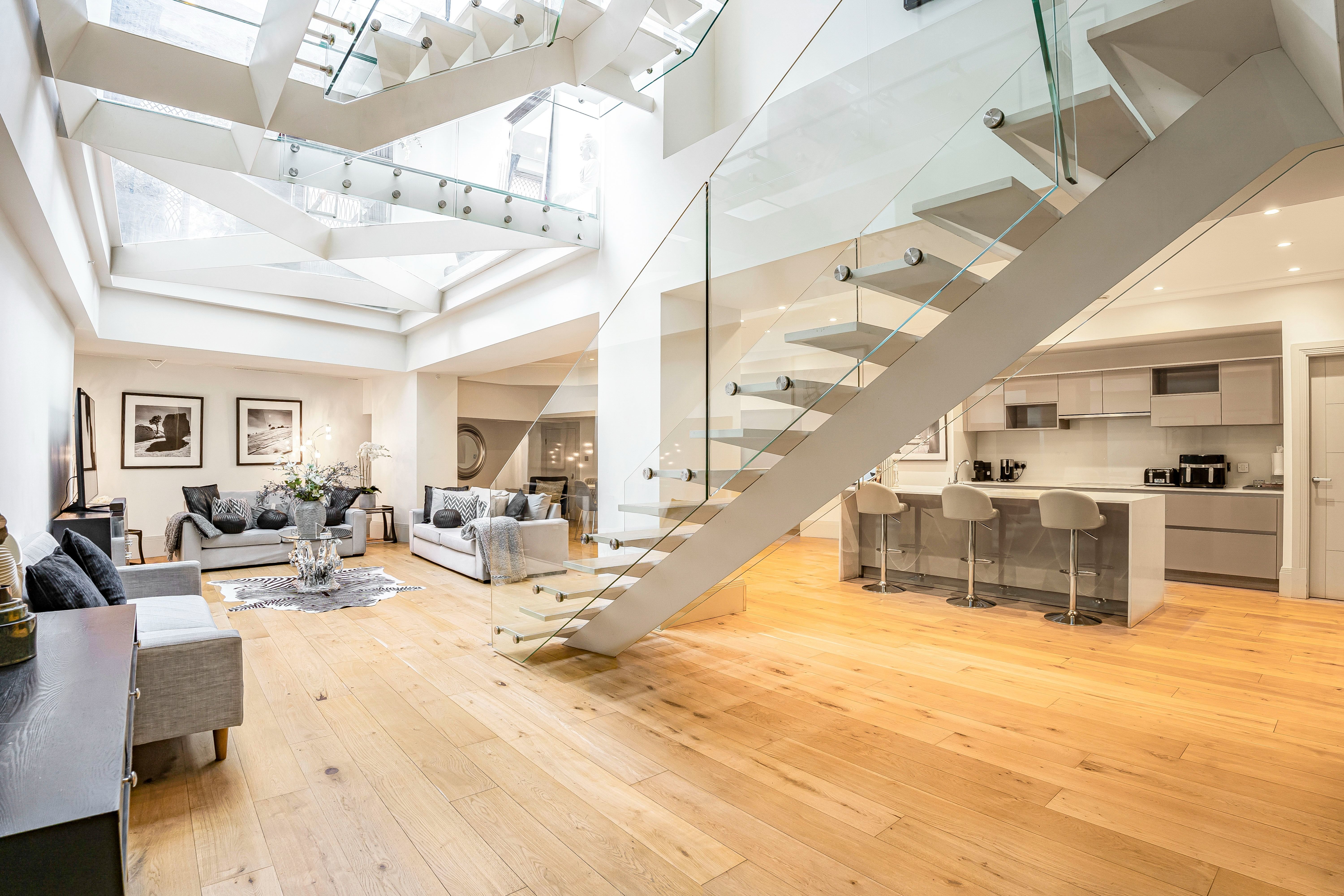 If luxury travel is your thing, this glamorous Mayfair apartment will tick all the boxes. With walk-in wardrobes, spa-style en-suites and a dramatic glass staircase that runs through the entire home, you'll feel like a real VIP. There's a terrace with outdoor seating so you can enjoy views of Hyde Park, and the soundproof windows mean you get a central location without the usual noise. From here, you're a stone's throw away from the greenery of Hyde Park, while iconic London sights like Buckingham Palace, The National Gallery, and classic luxury boutiques are a short walk away.