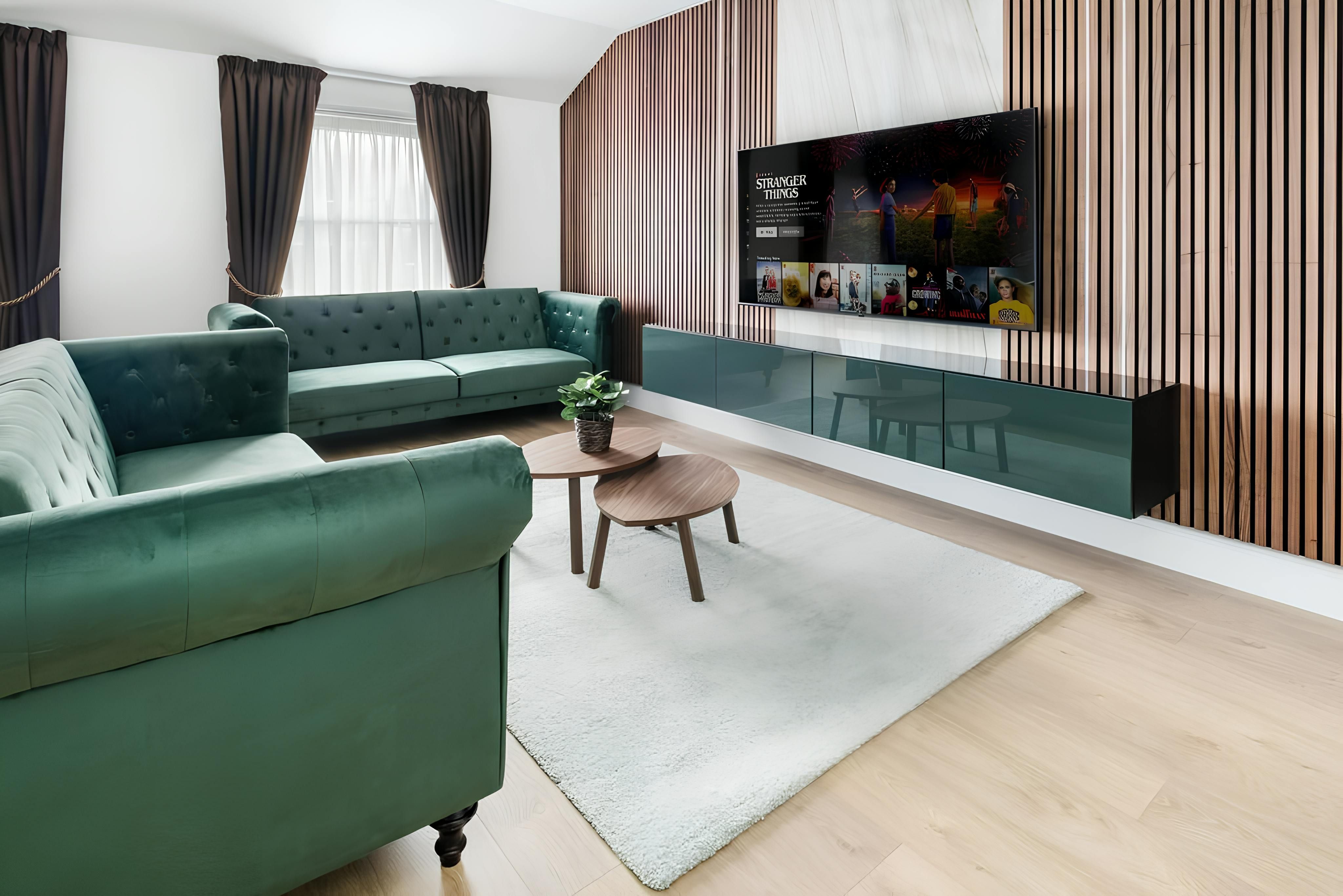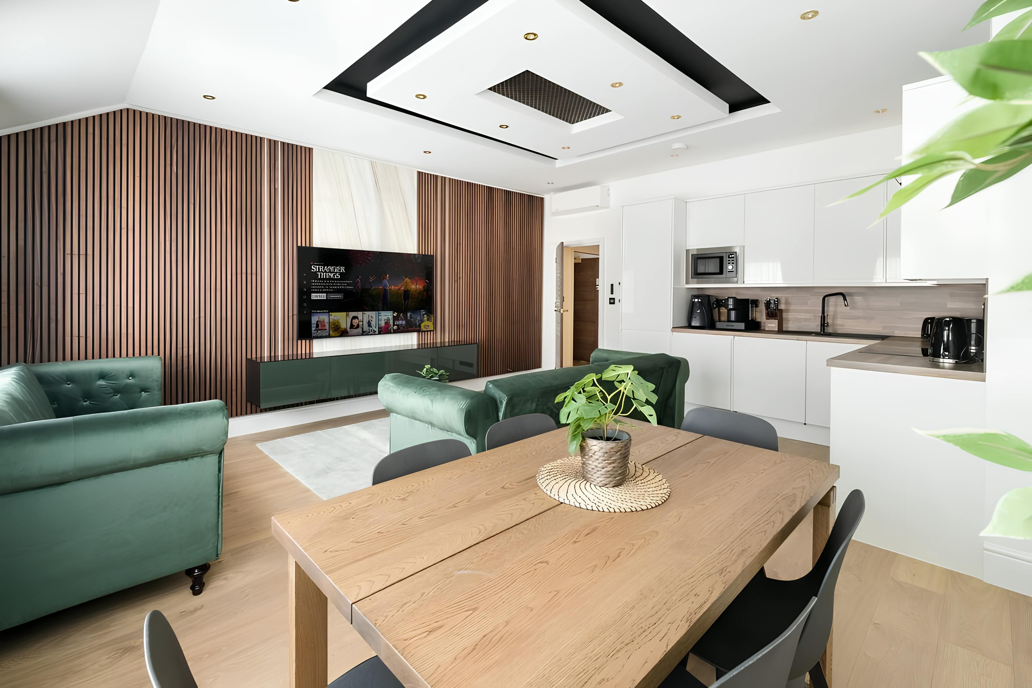 You'll find this stylish apartment in Marylebone, one of London's most sought-after neighbourhoods. Alongside cafes, bars, and restaurants, you'll be walking distance from Regent's Park, Oxford Street, and two Underground stations. It's on the fourth floor and there isn't a lift, so be prepared to climb some steps here. But we think you'll like what's waiting for you. Inside, there's a contemporary living space, a cosy bedroom, and a well-equipped kitchen for those days when you fancy a home-cooked meal. Whether you're enjoying a chilled evening at home with Netflix or a night out on the town, this pad should be a perfect fit.