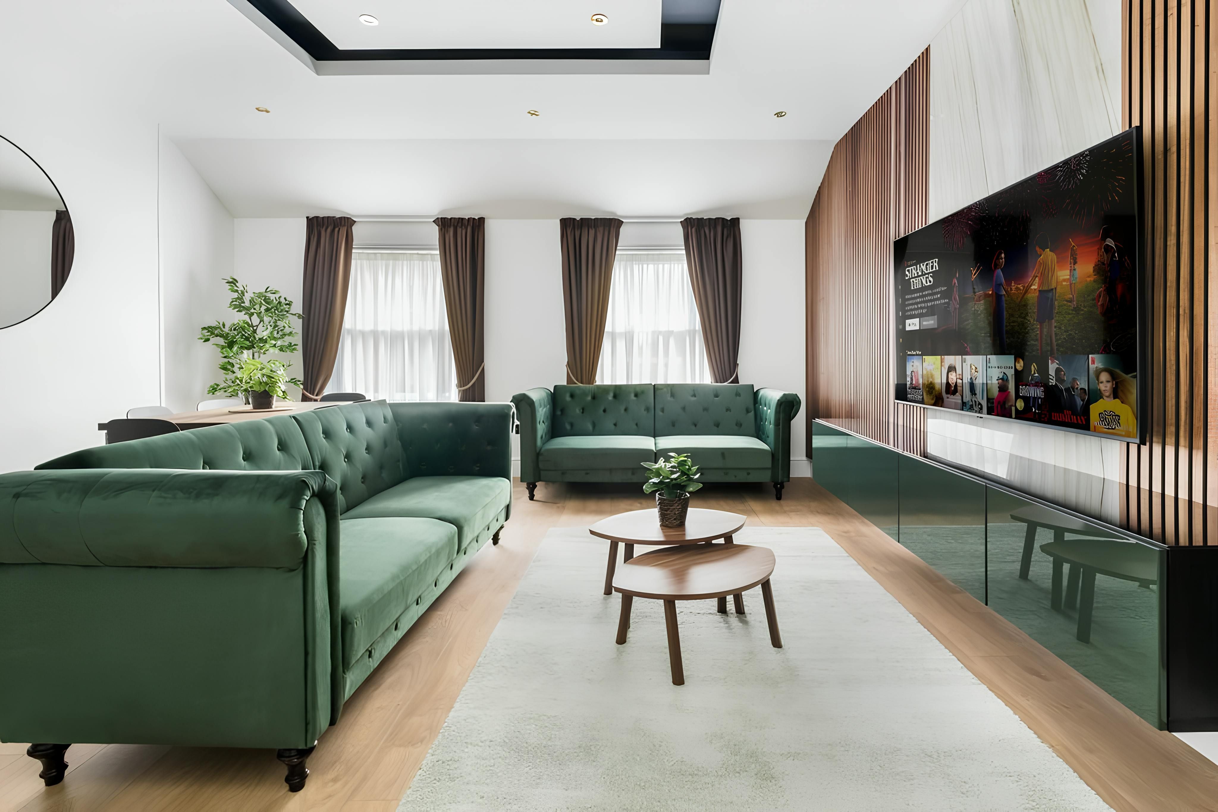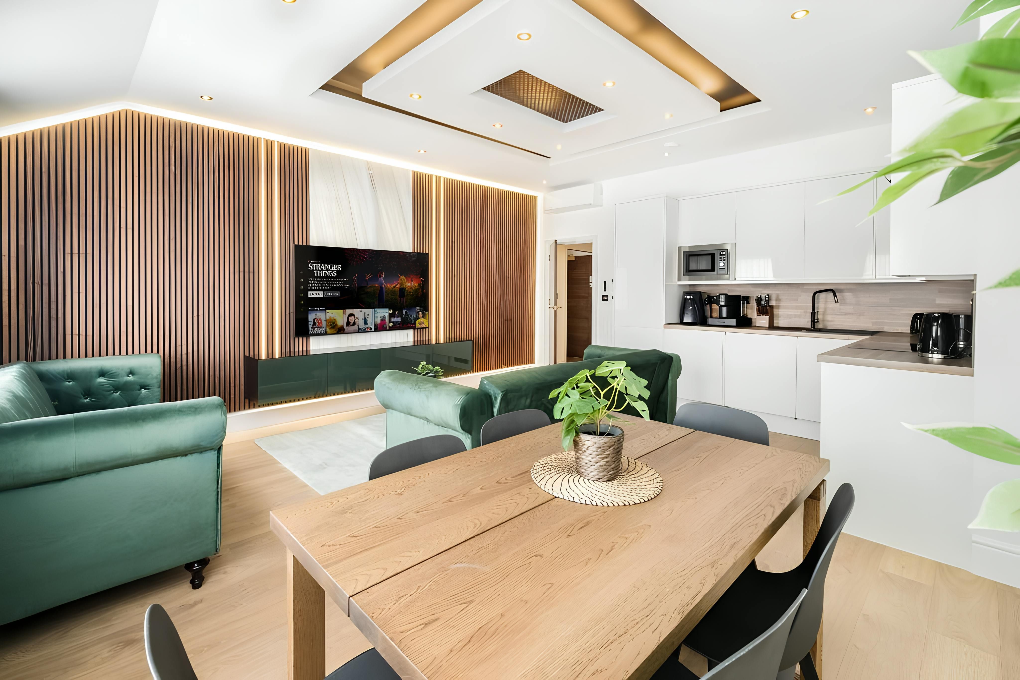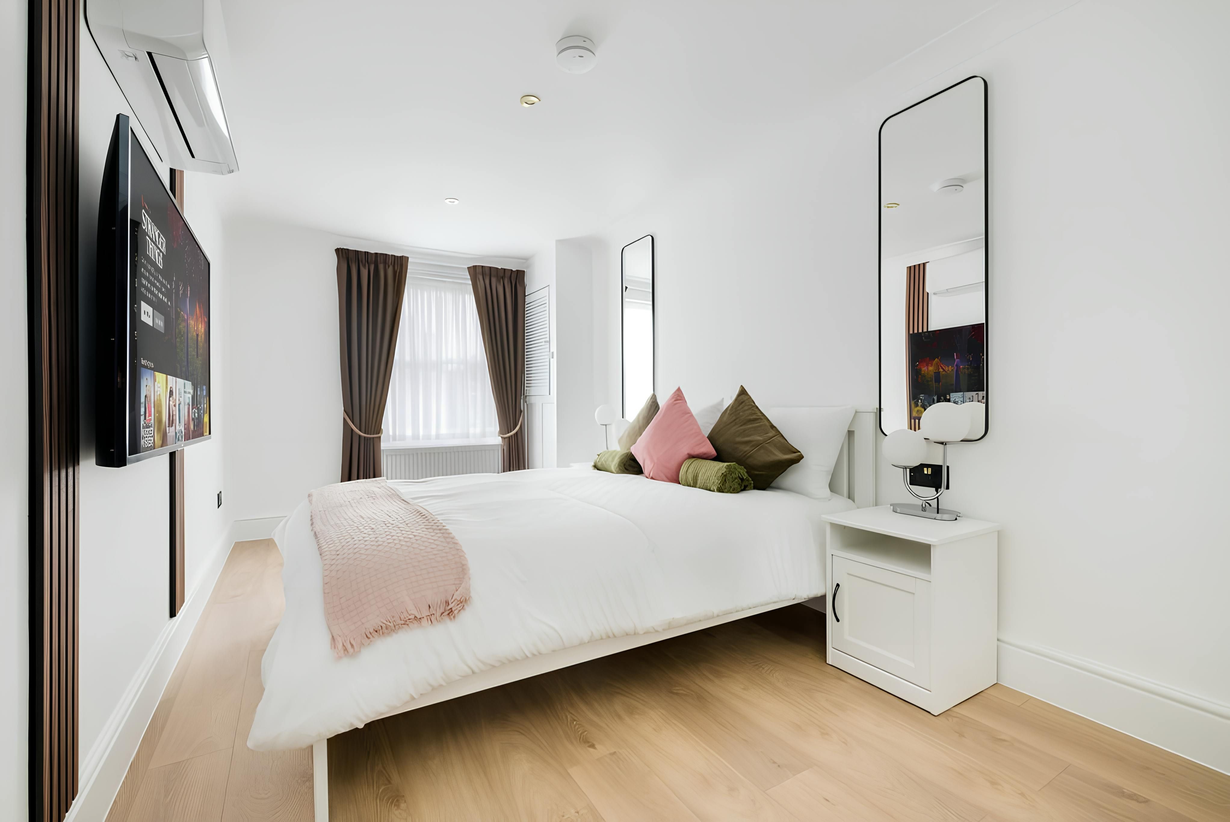 Home truths: *This apartment is on the fourth floor without a lift. If needed, the property manager can help carry your luggage on check-in and check-out days. *If you're travelling with little ones, your host can provide a free cot and high chair on request. *There isn't a dedicated desk here. However, the dining table doubles up as a laptop-friendly workspace if you plan to catch up on work during your stay. *Given the home's central spot, expect to hear some street noise throughout your stay. *Parking isn't provided, but with two Underground stations within walking distance, a car isn't needed. We think the best way to explore London is on foot. *At full occupancy, 3 guests will share two sofa beds in the living room