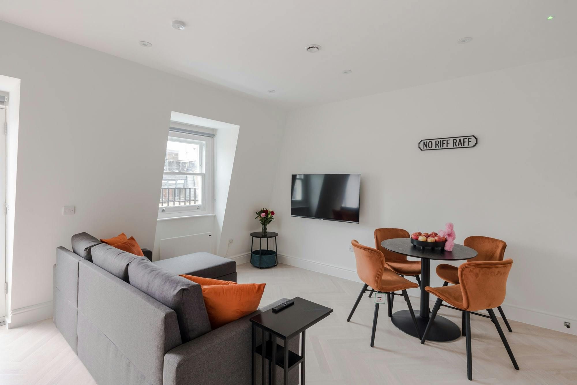 This Fitzrovia flat is centrally located and contemporary in style – just how we like it. The neighbourhood is home to cosy gastropubs, local eateries, and fantastic transport links. Yet, you'll still be an easy stroll from many London landmarks – including Soho, Oxford Street, and Covent Garden. It's on the third floor of a building without a lift, so expect to climb quite a few stairs. Another thing to keep in mind is that two guests will sleep on a sofa bed. Still, with a breezy living space and a balcony offering a view of the BT Tower, it ticks all the boxes for a fuss-free stay.