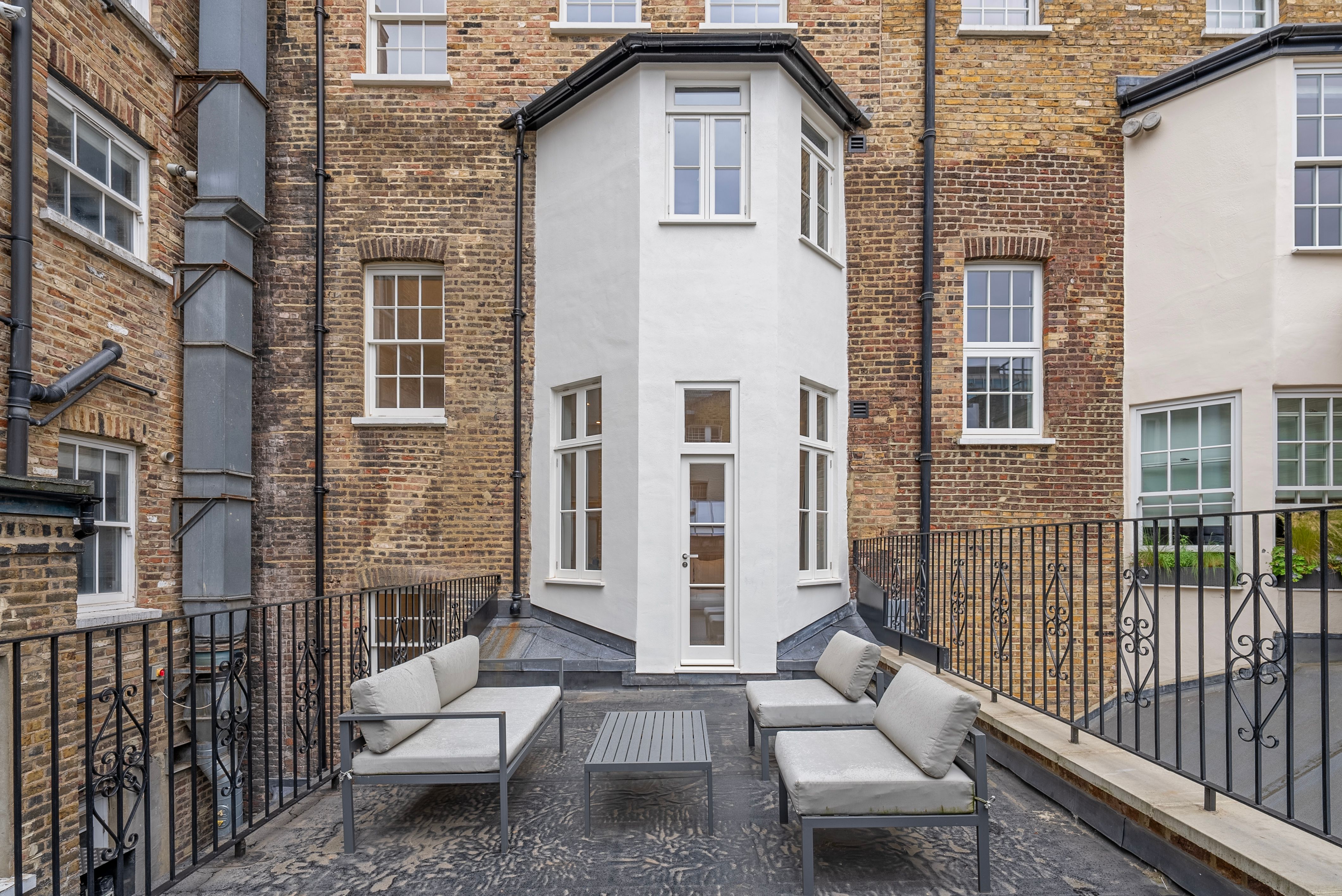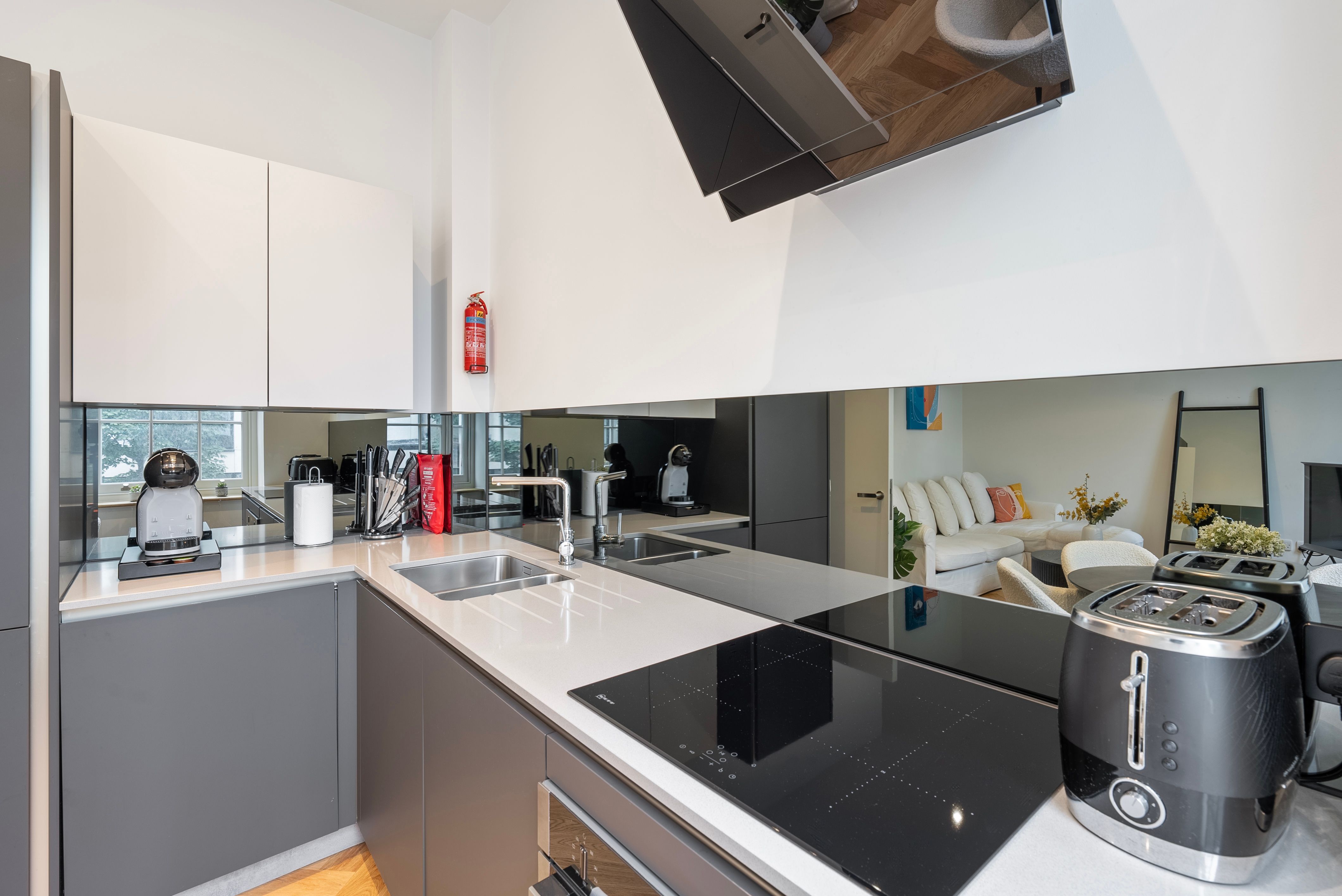 Digital nomads, this fuss-free Fitzrovia flat might be perfect for you. It's got a workspace in the living area, a kitchen with everything you need, and a comfortable bedroom. The cherry on top is the private patio – although a little plain, it's still a lovely spot to enjoy a cup of tea in the morning sun. It's worth pointing out that two guests will sleep on a sofa bed here and that the building lacks a lift. As for location, cafes, bars, and eateries line the nearby streets, while multiple Tube stations are within walking distance. You're also a short stroll from Soho, the British Museum, and Oxford Street.