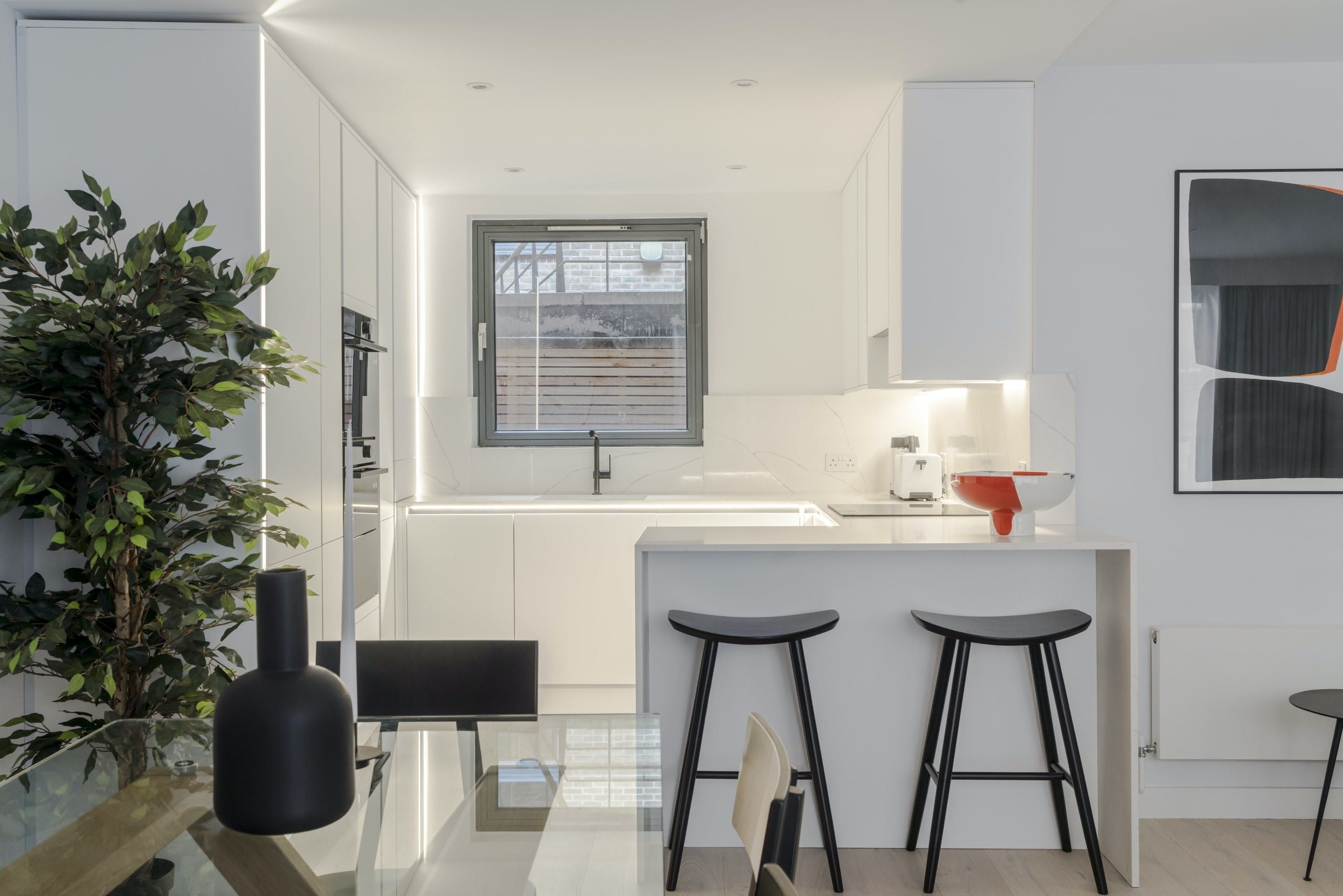 This modern hideaway is in buzzing Fitzrovia – a neighbourhood packed with swanky cocktail bars, Michelin-starred restaurants and chi-chi cafes. Plus, the British Museum is just a short stroll away. The apartment is fairly swanky itself, with a stylish open living, kitchen and dining room with space for the whole group to hang out together. Bedrooms are comfortable – ideal after a day sightseeing in the city or attending meetings. Right in the heart of London, it’s the perfect spot for business or leisure.