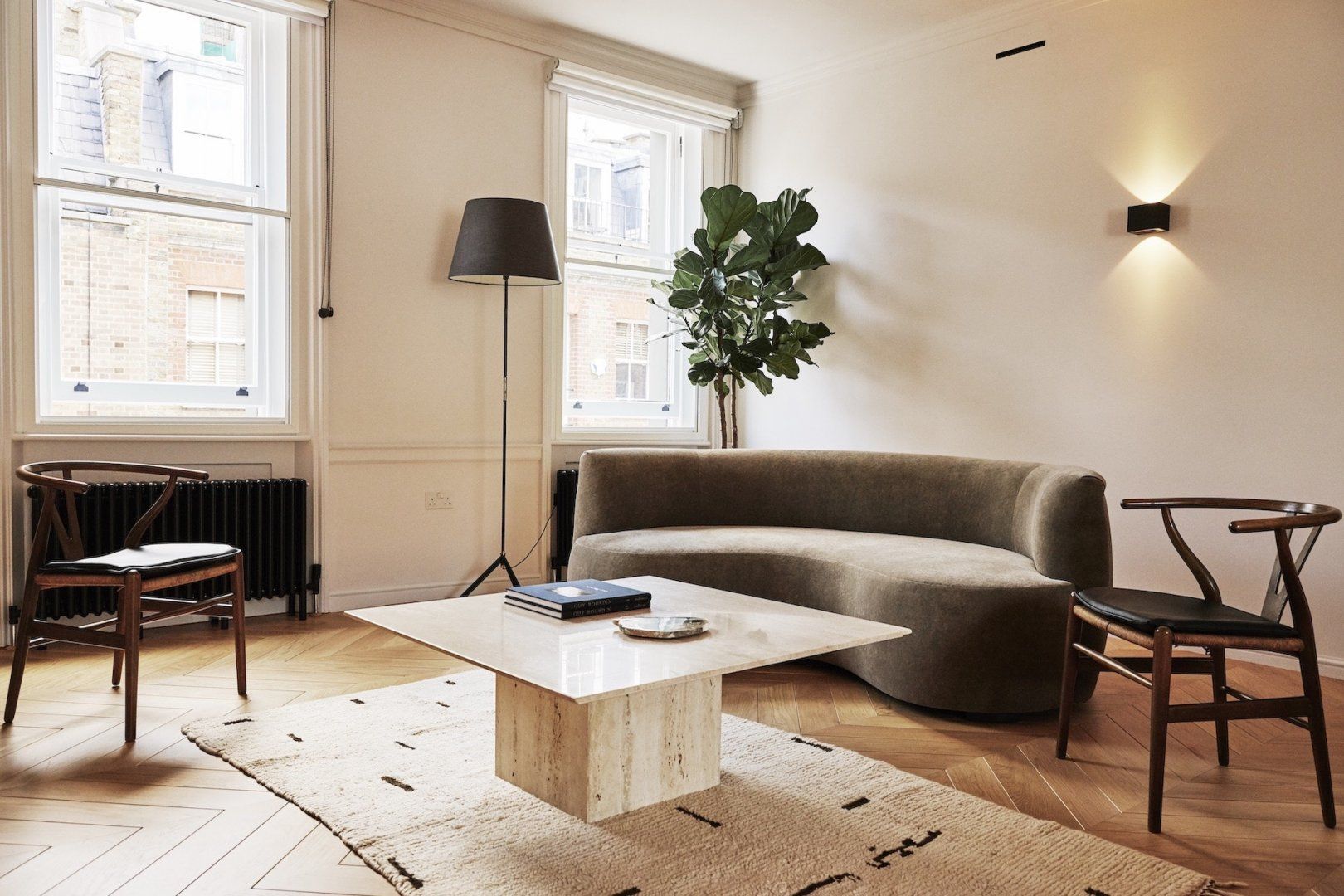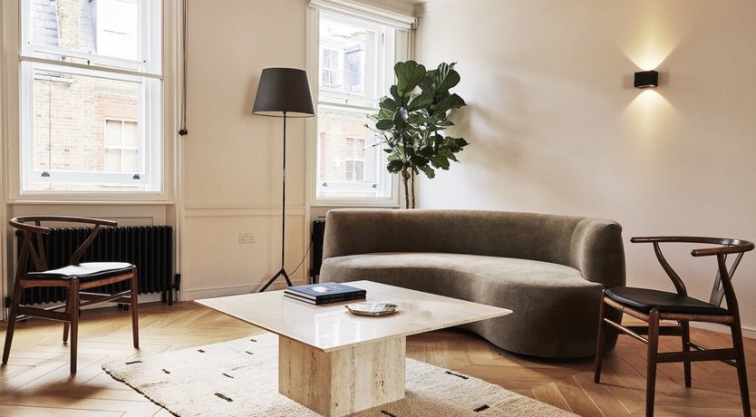 Housed in a period, Grade II listed building in the centre of Marylebone, this home combines a quintessentially English style – cast iron fireplaces and traditional bay windows – with brand new, modern finishes and mid-century furniture. There’s a 24-hour concierge for a bit of hotel-level luxury, but touches like handwoven rugs and a vintage record player with a curated selection of vinyl in the apartment keep it feeling like a home from home. The bespoke design from award-winning architects Morrow & Lorraine ensures a unique vibe. Marylebone is packed with museums, shops and restaurants and Oxford Street is just a 10-minute walk away (or 5-minute cycle on one of the complimentary bikes). If you want to keep up your gym regime, the apartment offers special rates for a series of health clubs in the area.