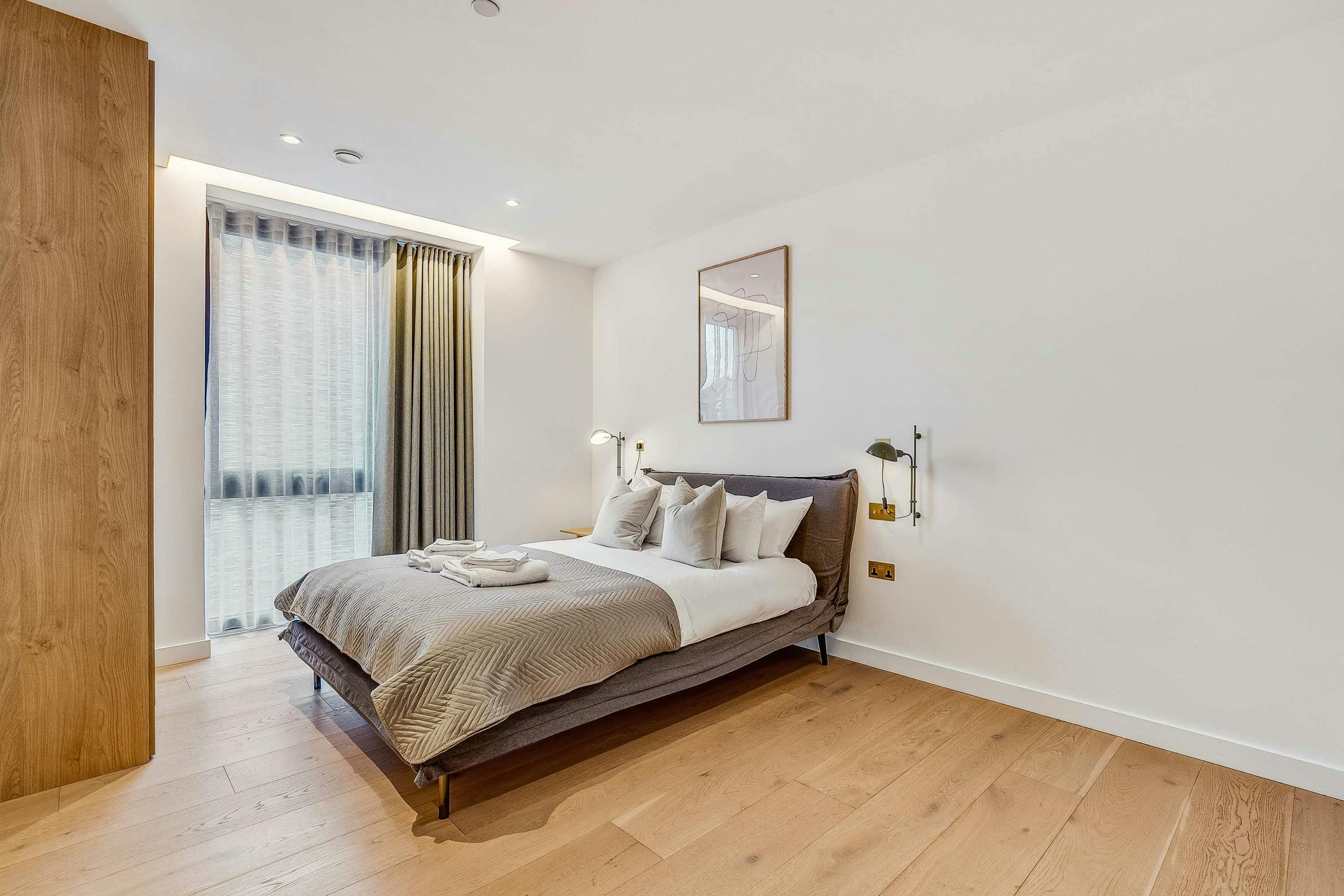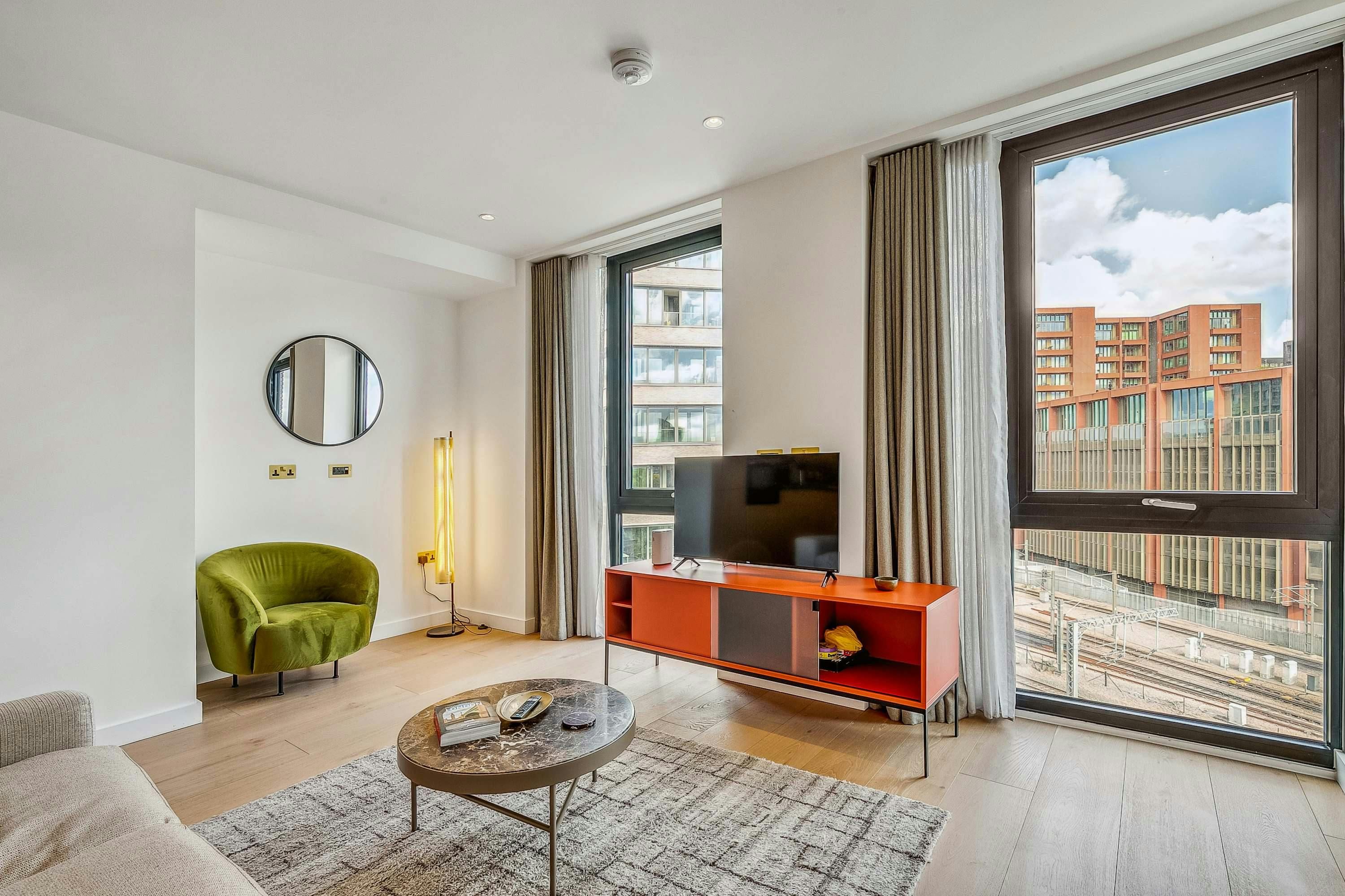 Nestled in the heart of King’s Cross, this apartment brings ease and comfort to its vibrant location. There’s a private balcony for warm weather drinks and a wonderful open-plan living room for relaxing, socialising or catching up on work. You can also enjoy access to a communal gym during your stay and there’s plenty of co-working space as well as a shared outdoor terrace. There’s no private parking available here, but you will find fantastic public transport links with King’s Cross station just a short walk away. You’ll also be spoiled for choice when it comes to local shops, bars and restaurants.
