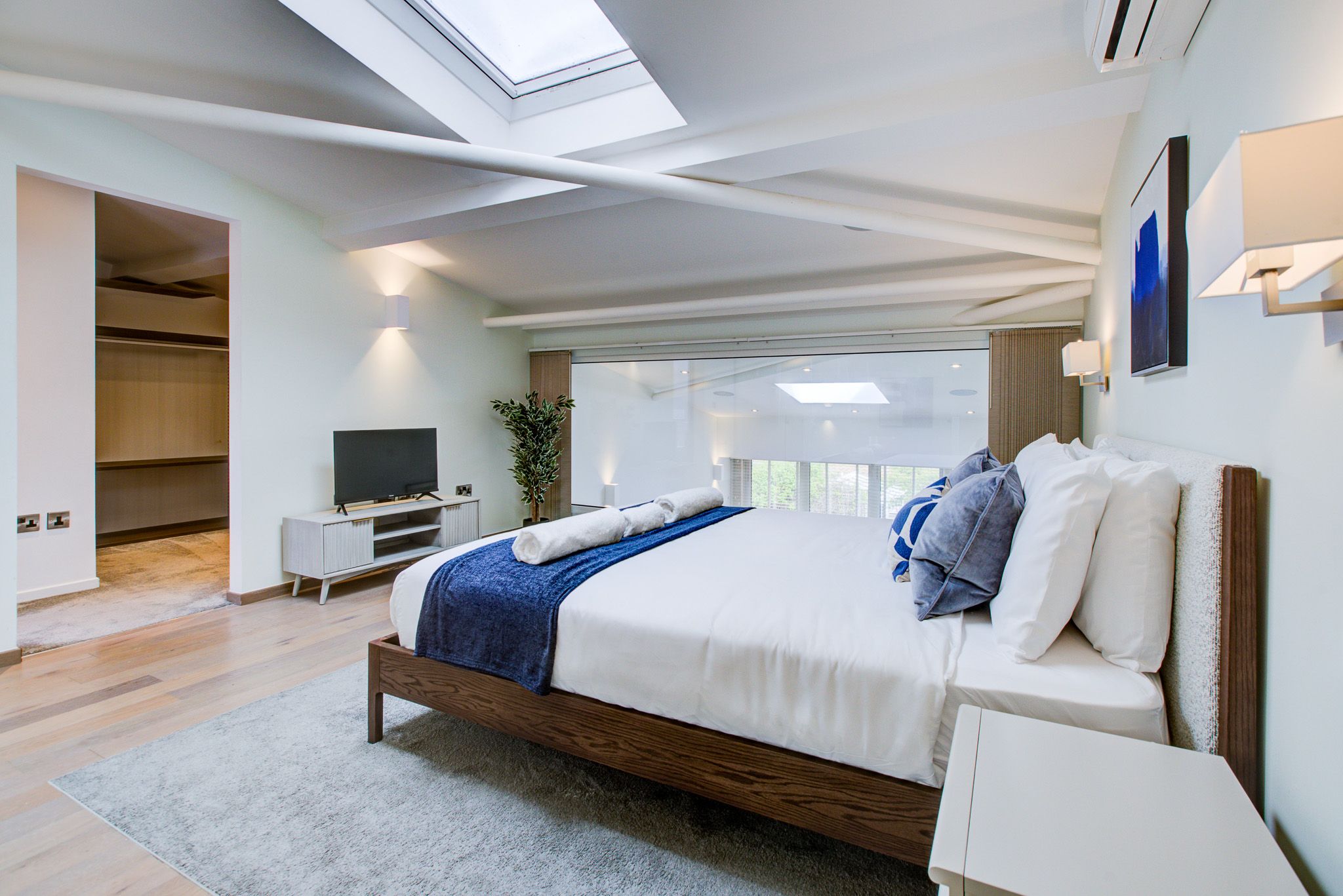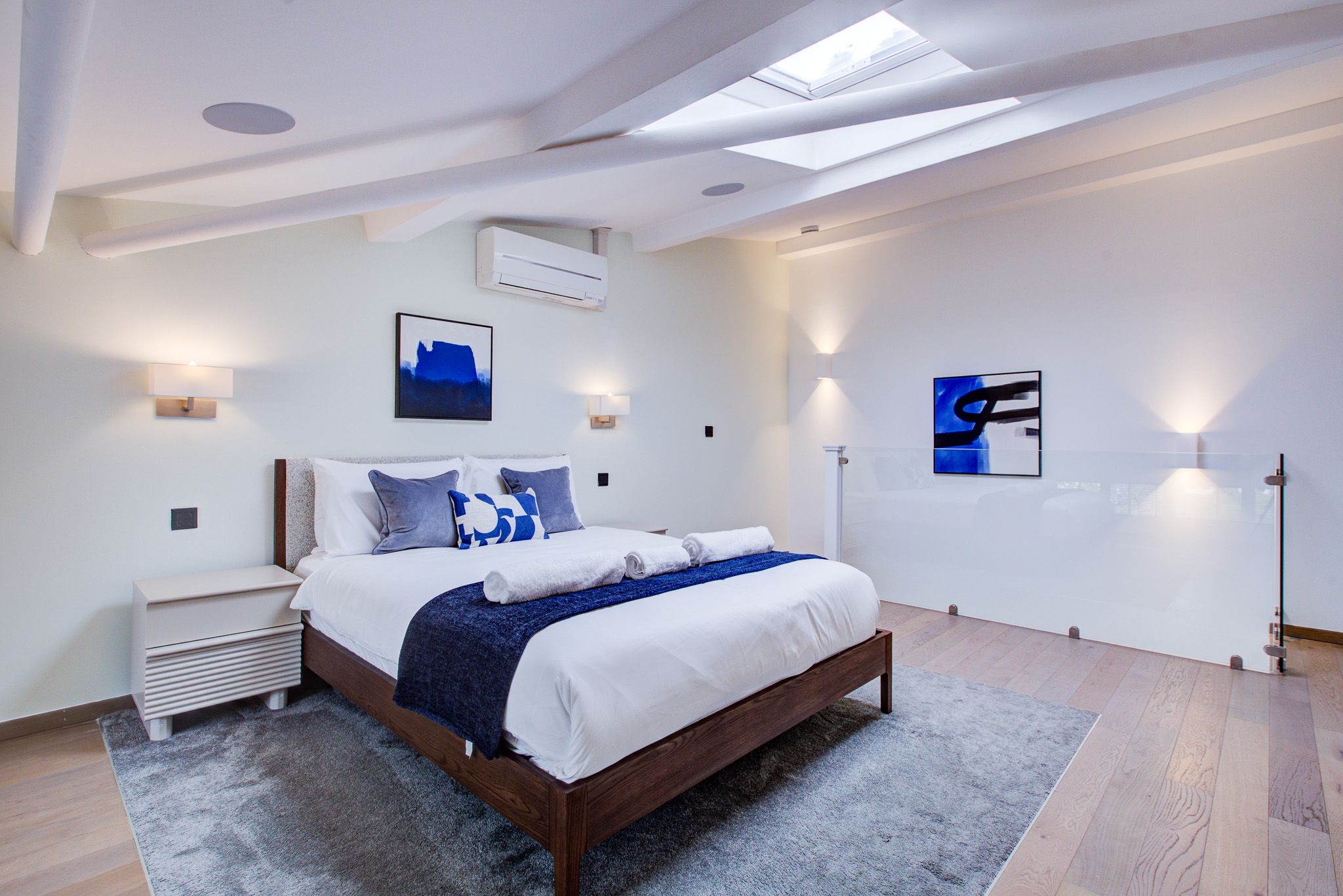 Modern and comfortable, this apartment in Fulham is ideal for fuss-free travellers. It has everything you need to feel at home, including a desk for digital nomads, walk-in wardrobes, and a large eat-in kitchen. Two guests will sleep on a sofa bed in the living area, but aside from that, there's plenty of space. You'll find it on a business park right by the Thames. It's a bit tucked away from London landmarks, but free parking is a nice perk. Prefer to travel on foot? Parsons Green Station is about a twenty-minute stroll away.