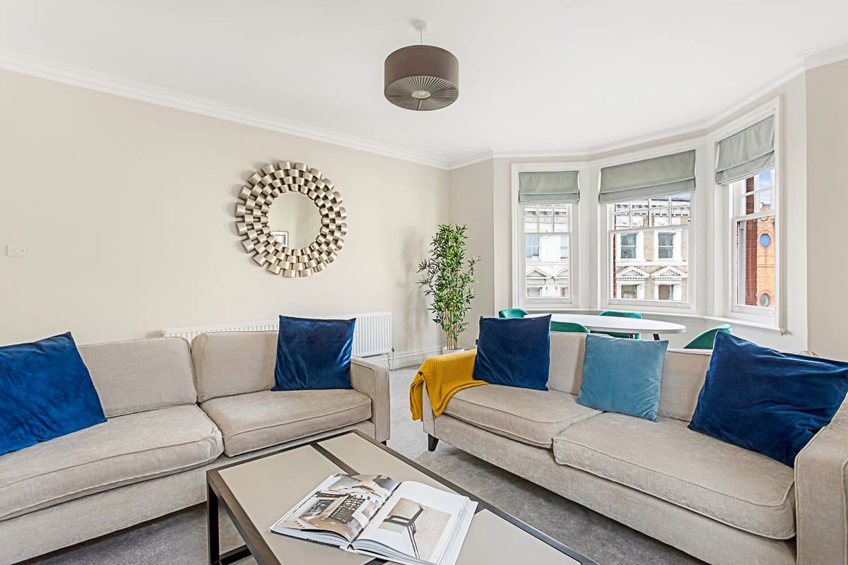 This two-bedroom flat is in fashionable Fulham – home of cosy pubs, sought-after shops, and riverside strolls along the Thames. Inside, you’ll find an apartment that's simply styled yet comfortable, including a well-equipped kitchen for cooking at home (although you'll be spoilt for choice when it comes to local restaurants). The location is right in the heart of the hustle and bustle, so some noise is to be expected, but that also means you have everything you need on your doorstep. Fulham Broadway Underground station is nearby too, which is on the District line – connecting you to London landmarks like the Natural History Museum and Westminster Abbey.
