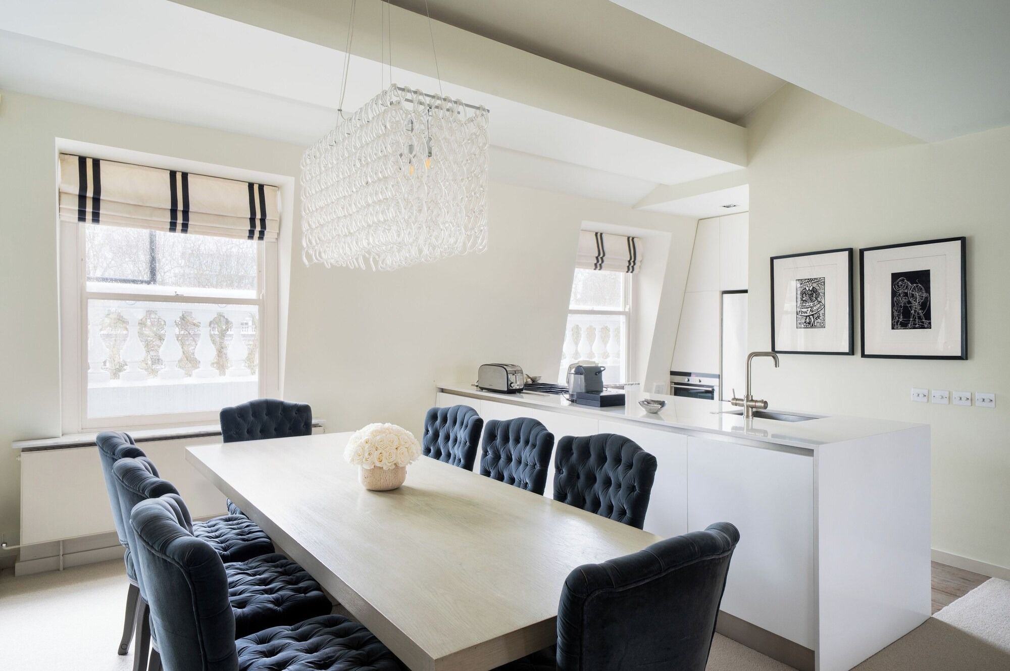Ever dreamed of waking up in the heart of Chelsea with the city at your fingertips? This elegant penthouse makes that dream a reality. It’s a sophisticated retreat above one of London’s most refined neighbourhoods. Inside, the space is thoughtfully curated for comfort – whether you're dining in, working remotely, or unwinding in the sun-soaked, airy living room. Both bedrooms offer a restful end to busy days exploring London’s iconic sights – with the museums of South Kensington, the boutiques of King’s Road, and some of the city’s finest dining just a stroll away. This is Chelsea living done right.