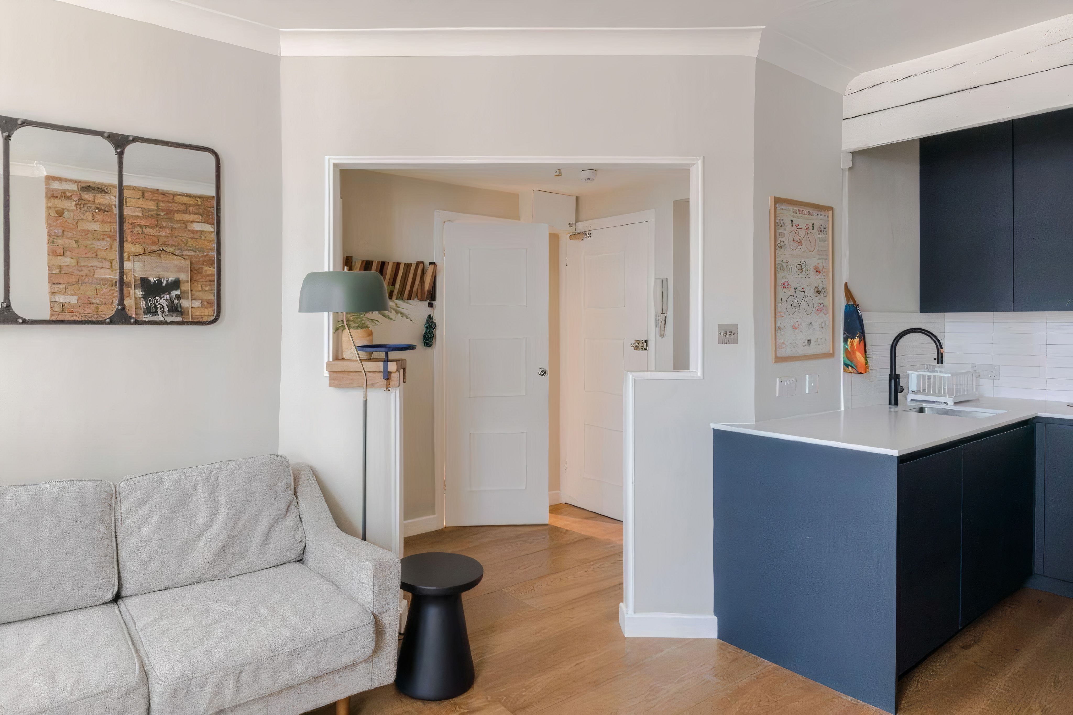 This home offers a cosy stay in the heart of Fitzrovia. Outside, you’ll be perfectly placed for sightseeing and it’s just a short walk to local restaurants, cafes and shops. It’s also possible to stroll into Soho, Oxford Street and Marylebone or jump on the nearby tube and explore further afield. Wherever the day takes you, this apartment welcomes you to switch off and unwind. The living room is perfect for laidback evenings or catch up work sessions, while the bedrooms are simple and well suited to couples and solo travellers.