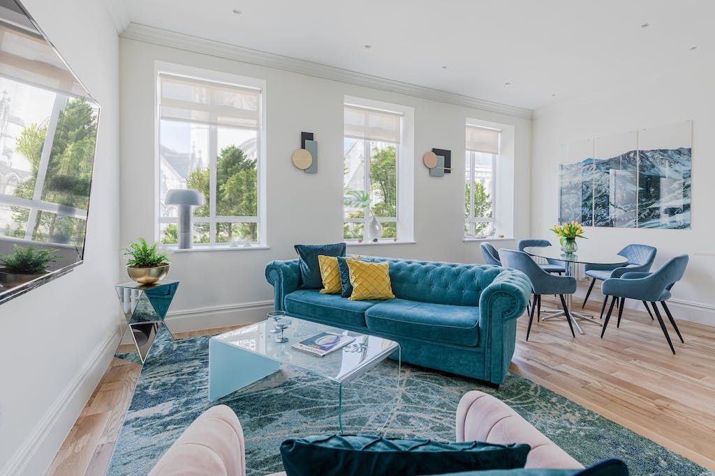 Bathed in light from all sides, this home offers a stylish and comfortable stay that will give you a taste of luxe city living. We love the vibrant jewel tones in the decor, as well as the sociable open-plan layout of the bright main room. Kick back on the sofa with a glass of wine or gather around the chic dining table for a soirée at home when you’re not out sampling the local food scene.