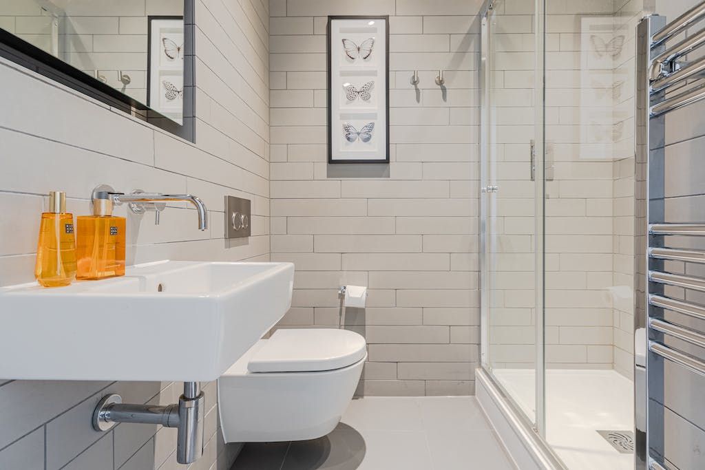 The three boutique bedrooms each boast large sash windows giving way to views of your Temple neighbourhood and vanity desks should you need to catch up on work – not to mention the beautifully dressed beds you’ll relish curling up in at the end of the night. Factor in the modern bathrooms with their rainfall showers and enticing tub, and you’ve got everything you need for a blissful break.