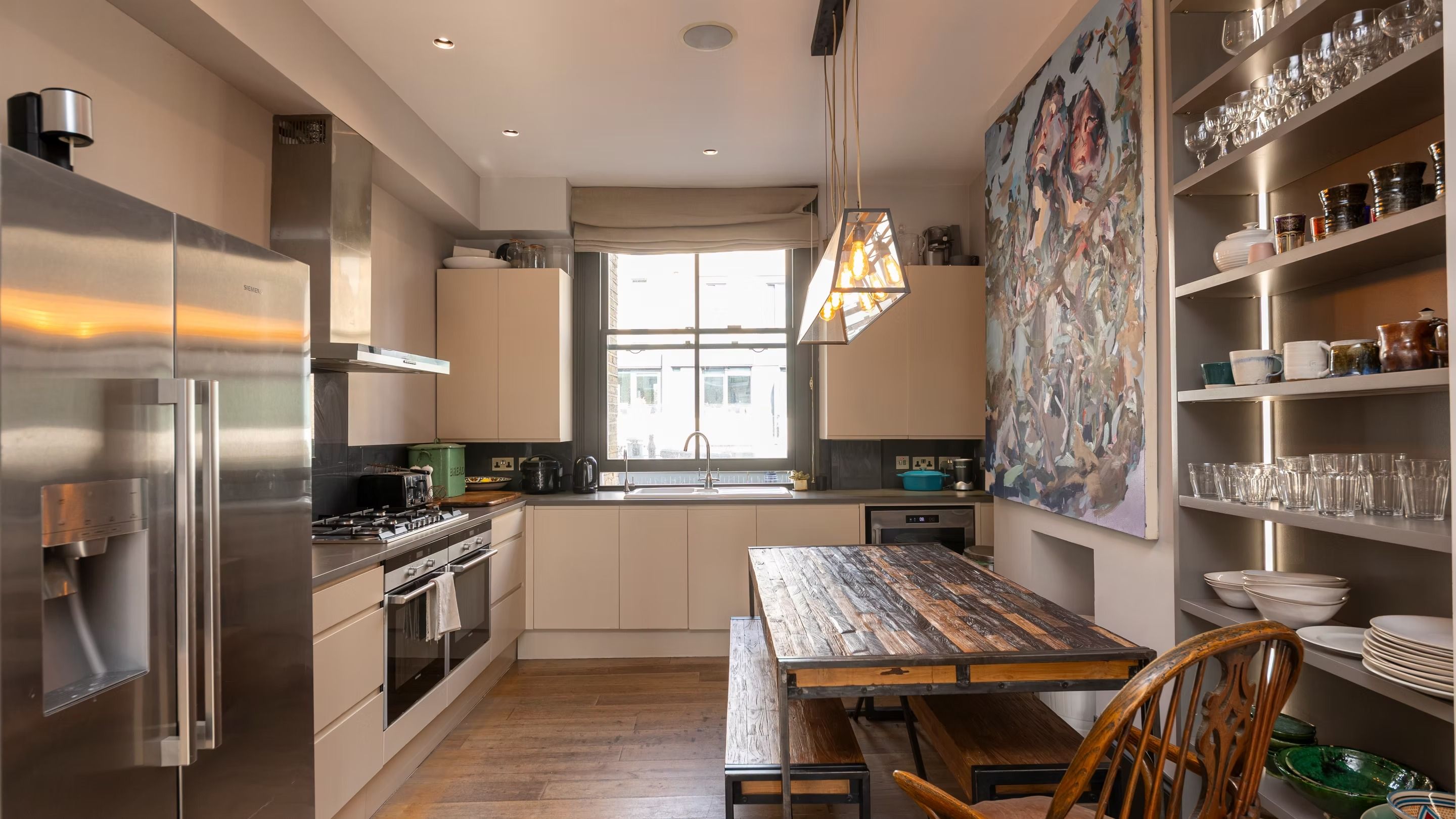This stylish Notting Hill maisonette is a light-filled retreat over two floors, perfect for friends, families and professionals seeking a chic city base. Our favourite feature has to be the expansive roof terrace, offering skyline views, two BBQs, and al fresco dining above the city – ideal for sunset soirees with a drink in hand. Inside, open-plan living and dining spaces flow effortlessly, with a well-equipped kitchen and hardwood floors throughout. And when you’re not relaxing at home? Nearby Portobello Road and Westbourne Grove offer cafés, boutiques, and vibrant London life just a short stroll away.