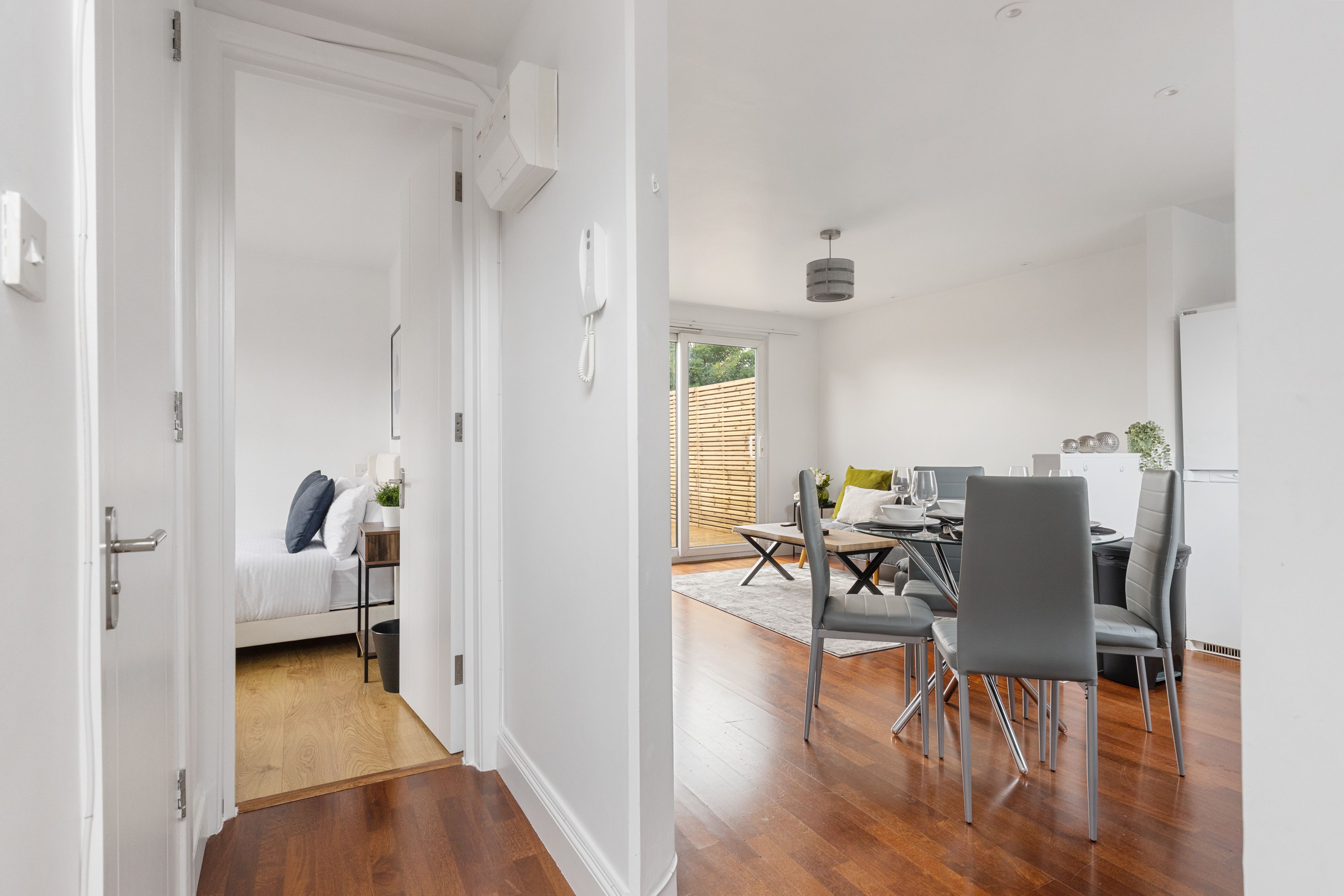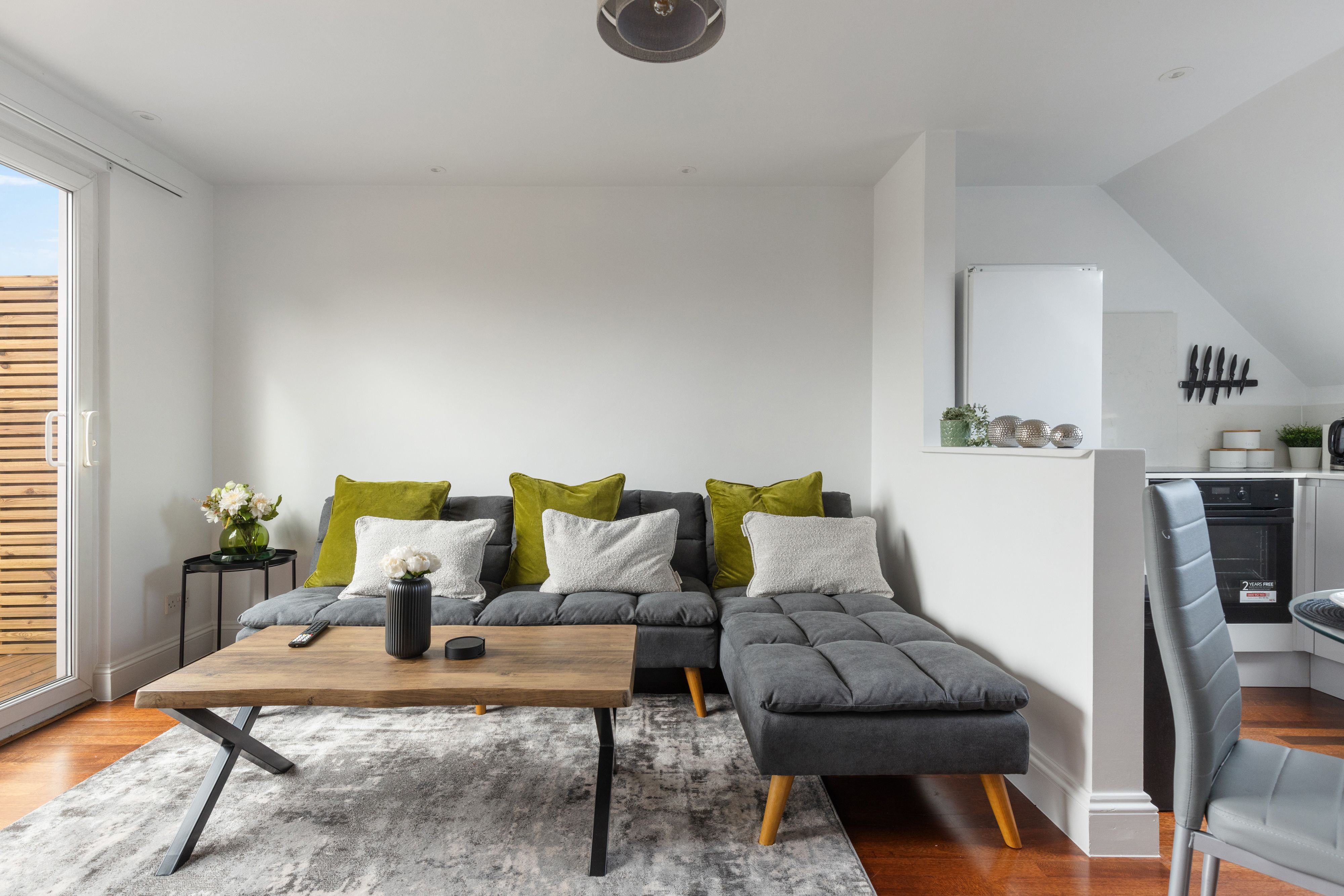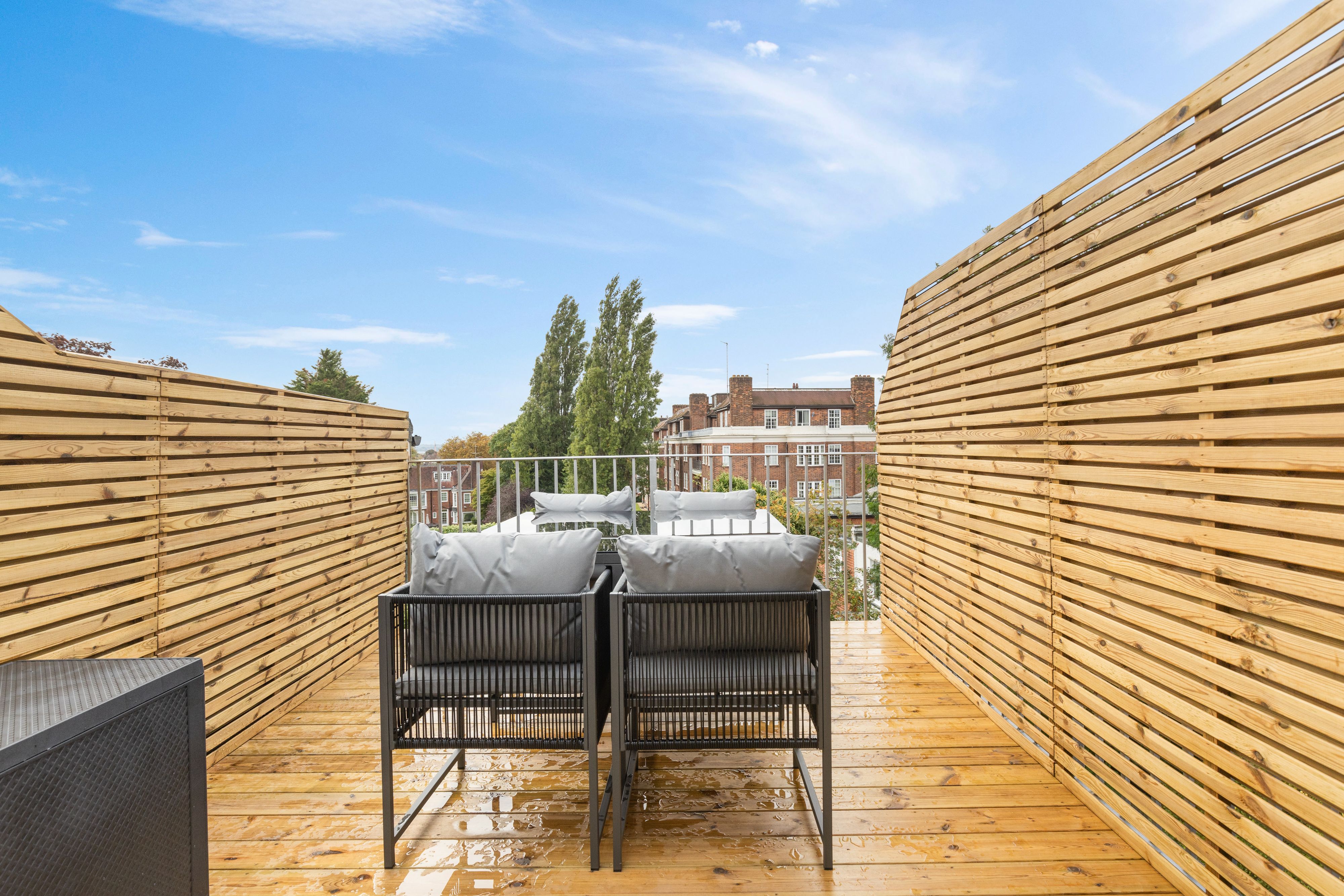 Just a ten-minute walk from Golders Green Station, this apartment is ideal for a family or group of friends. Hopping on the Tube, you can reach central London in fifteen minutes, but the peace of Hampstead Heath is a short walk away – you get the best of both worlds here. The apartment is stylish and comfortable, with an open-plan living and dining space leading to a balcony terrace. At full occupancy, two guests will sleep on the sofa bed in the living space.