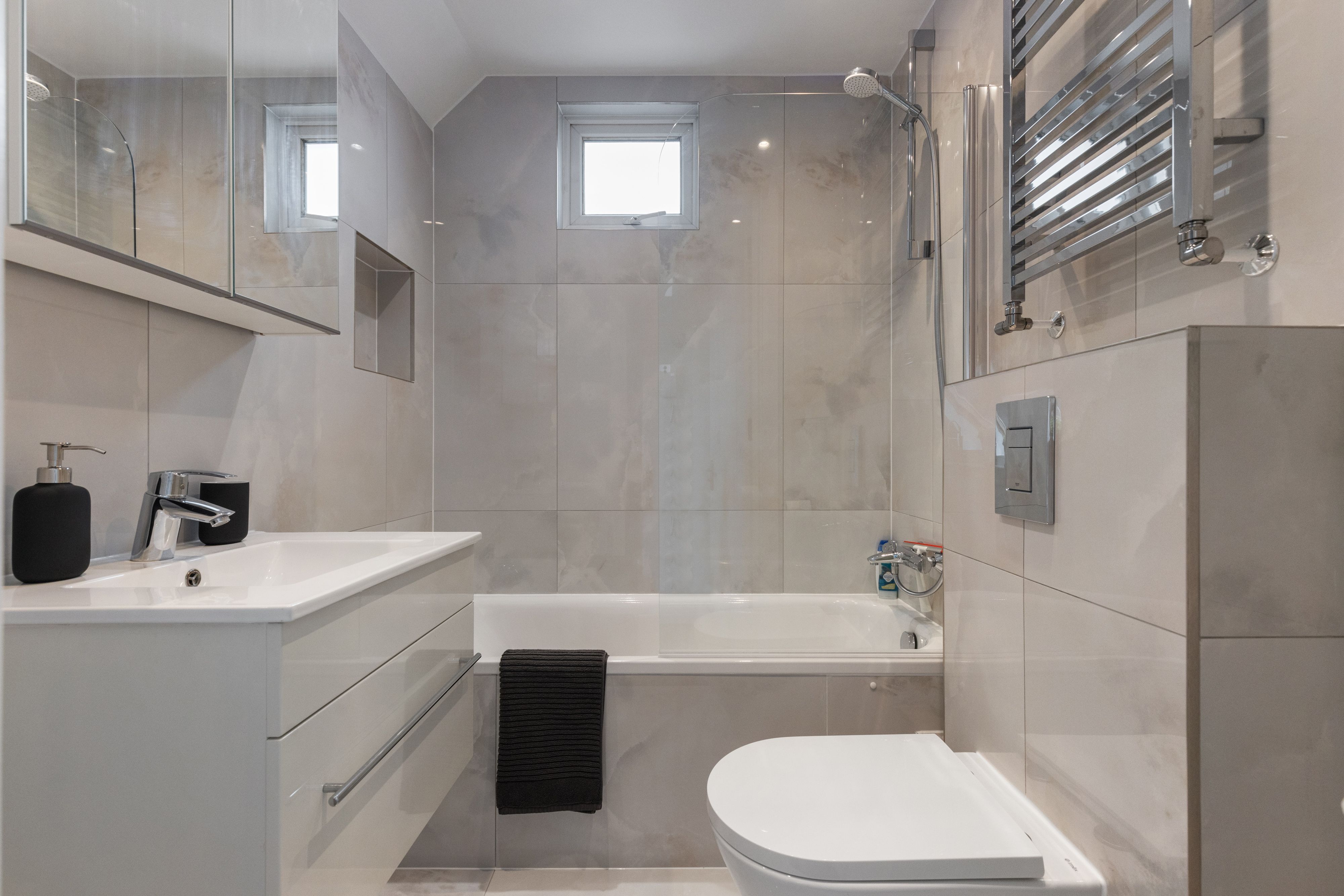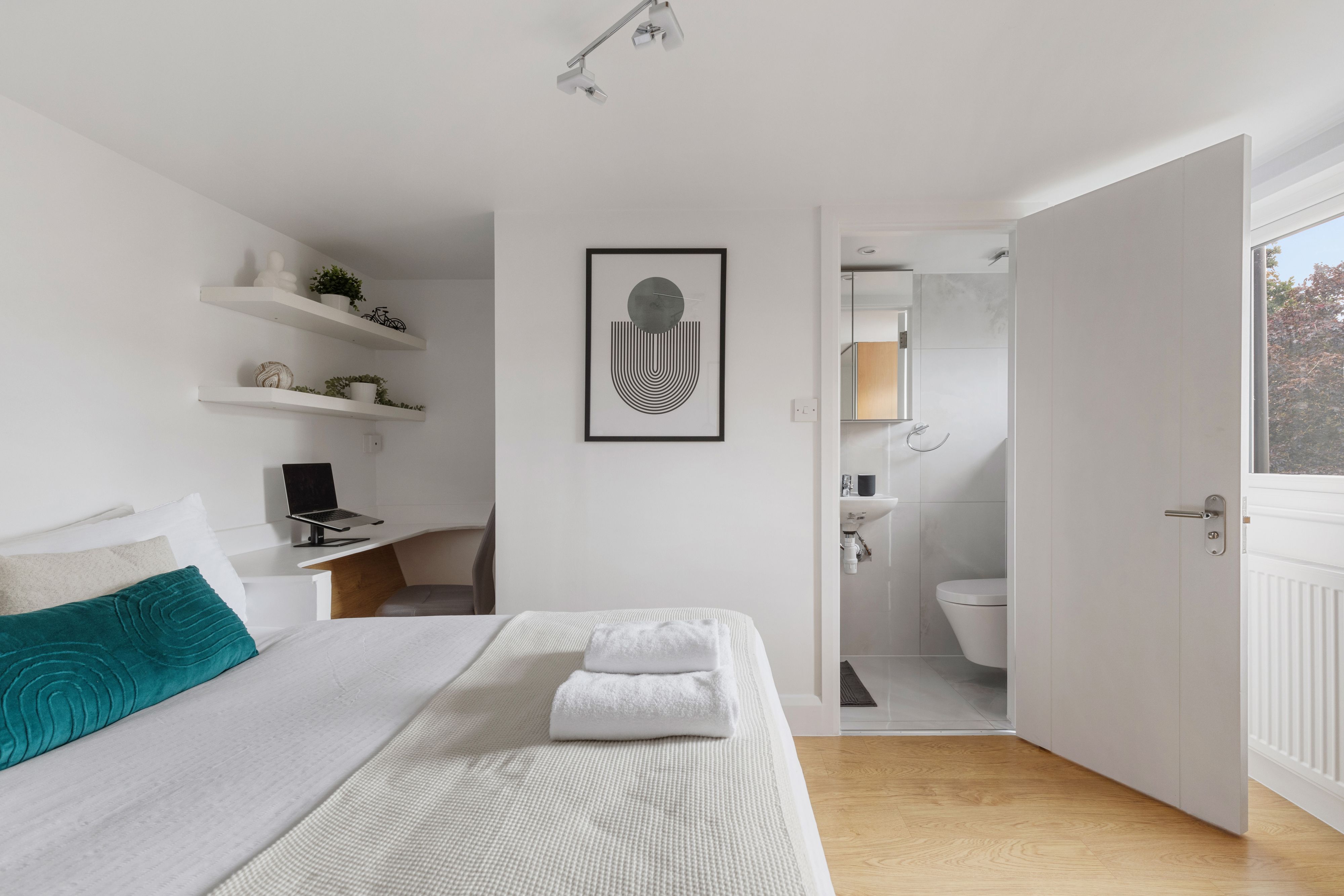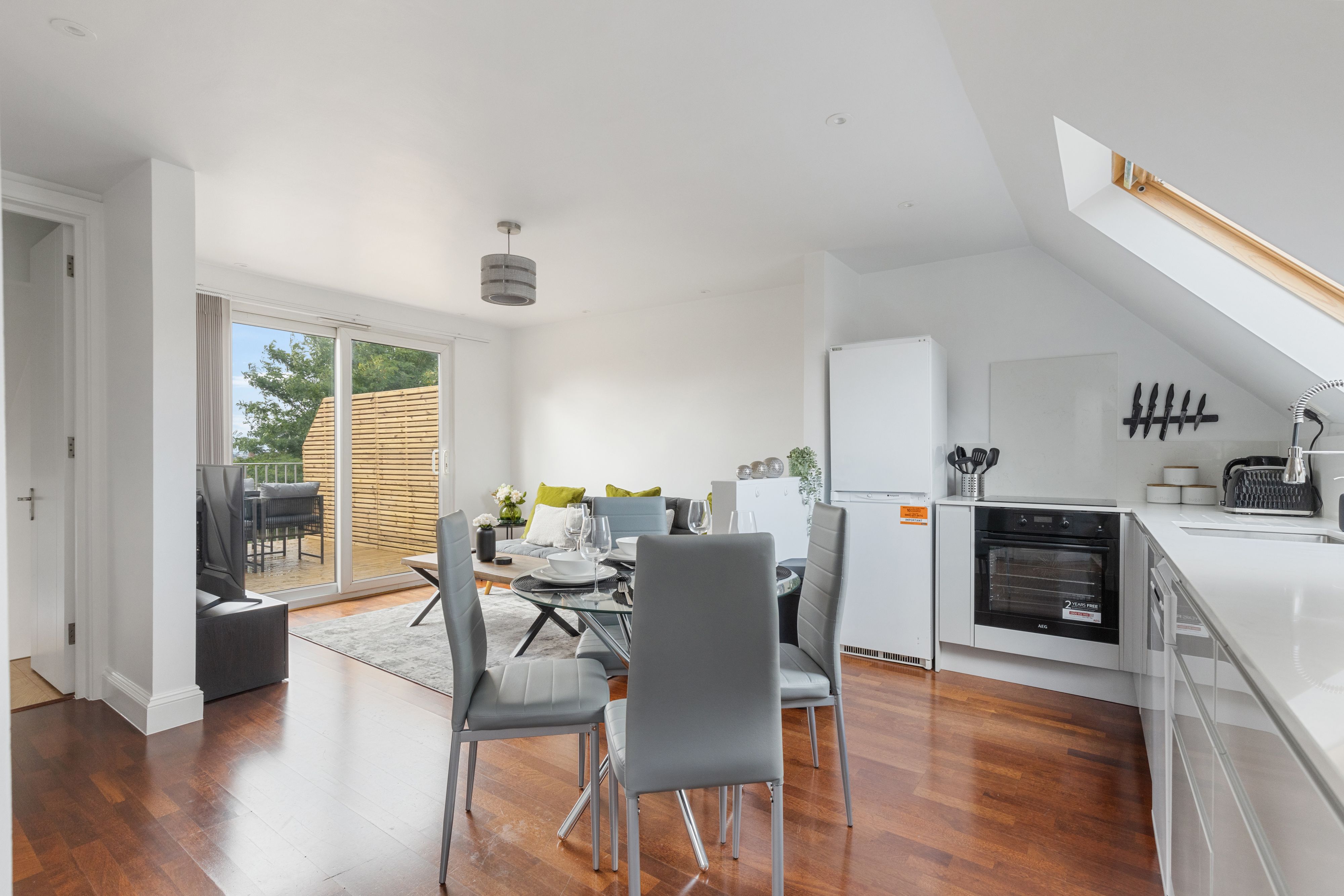 Just a ten-minute walk from Golders Green Station, this apartment is ideal for a family or group of friends. Hopping on the Tube, you can reach central London in fifteen minutes, but the peace of Hampstead Heath is a short walk away – you get the best of both worlds here. The apartment is stylish and comfortable, with an open-plan living and dining space leading to a balcony terrace. At full occupancy, two guests will sleep on the sofa bed in the living space.