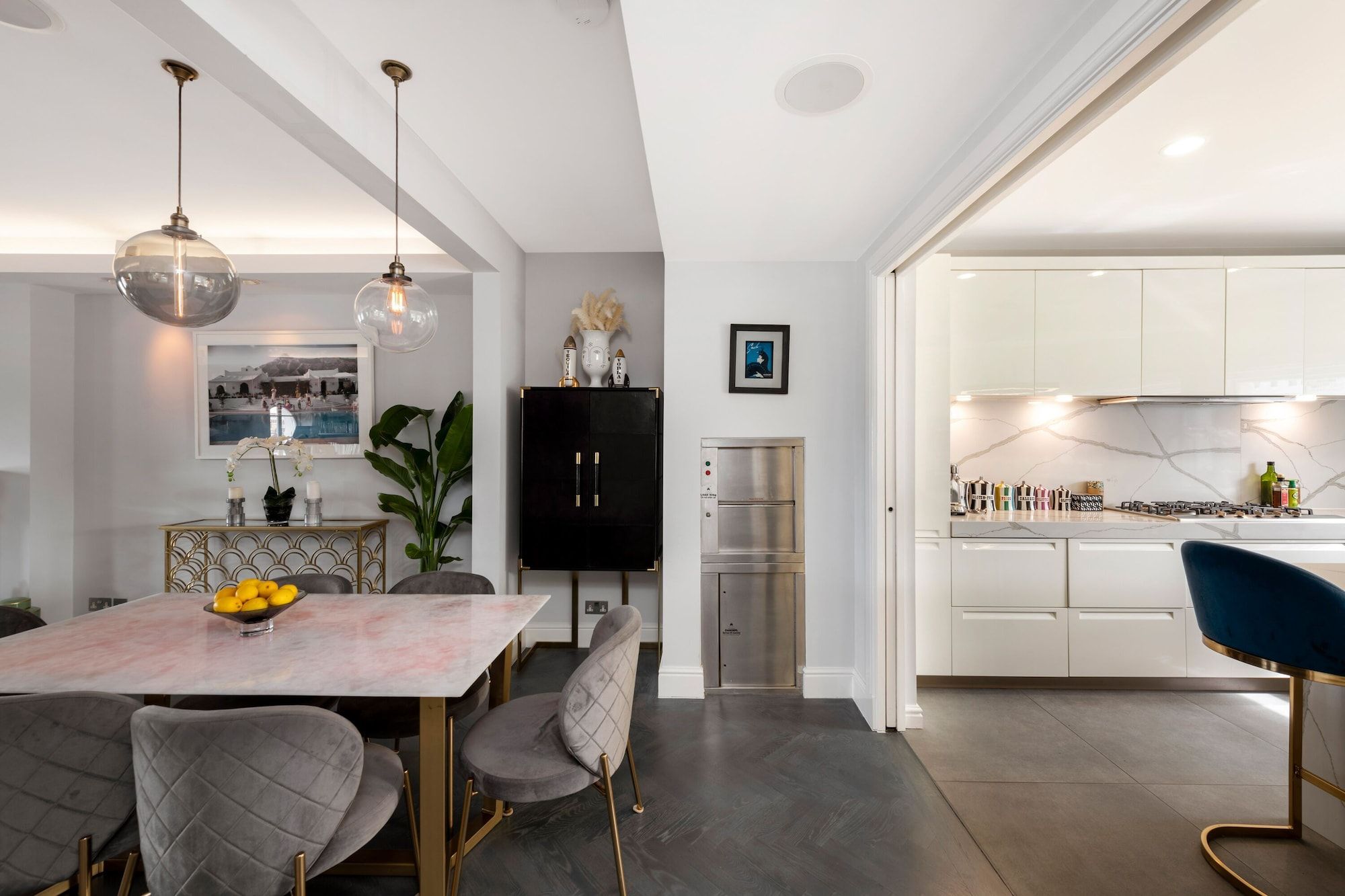 Situated in one of Kensington's characteristic white stucco townhomes, this apartment is truly something special. Here, world-class museums, trendy eateries, high-end boutiques, and the greenery of Hyde Park are all within easy reach. But it's not just the location that caught our eye. Three floors of stylish living space give families plenty of room to spread out. The kitchen is a dream come dinnertime, the lounge is ideal for cosy nights at home, and the dedicated office has remote working covered. Topping it all off is a private roof terrace, where you can open a bottle of wine, fire up the barbecue, or simply sit back and admire the views.