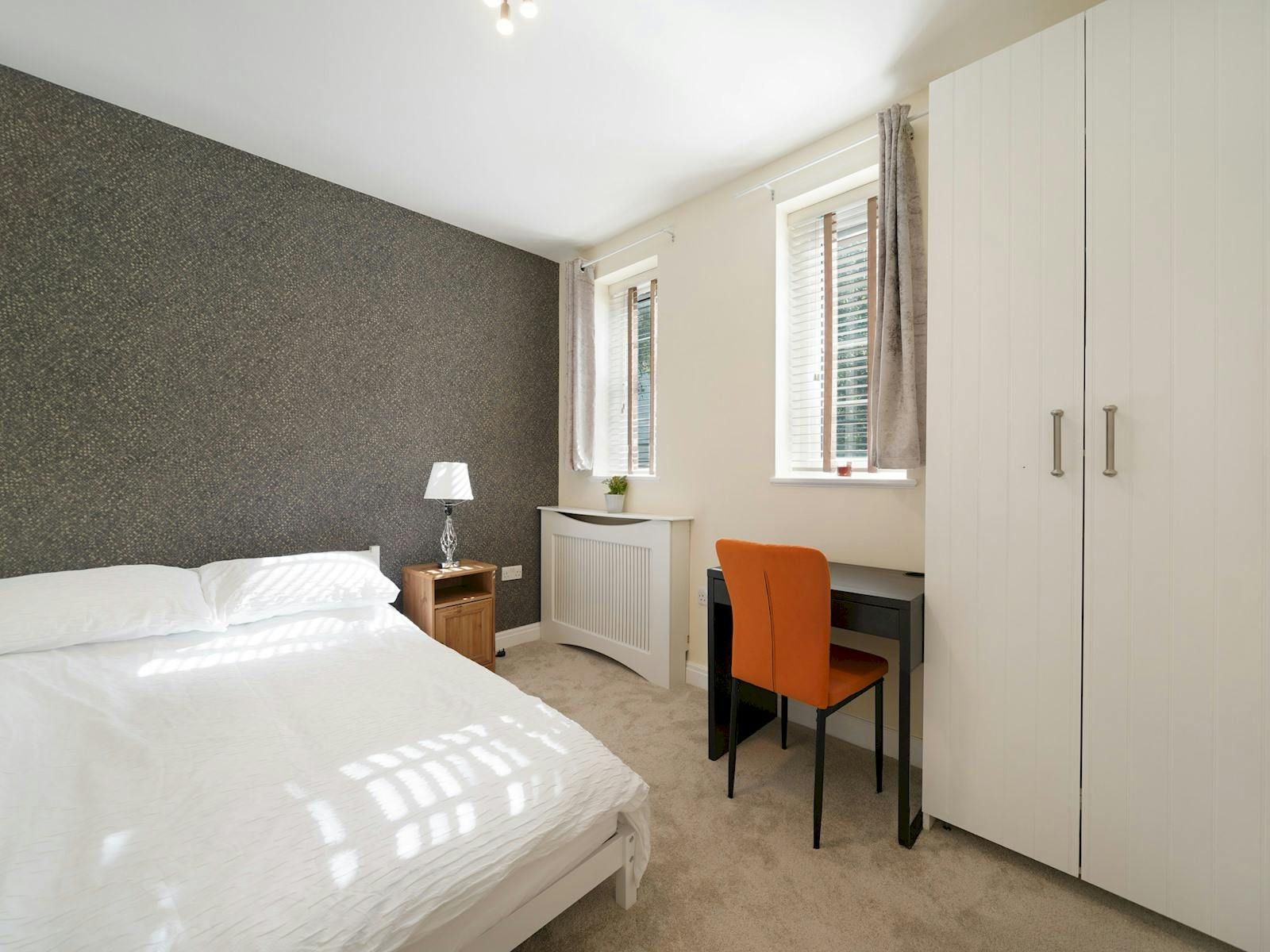 Tucked away in peaceful NW3, this bright, three-bedroom flat offers a quiet escape with effortless access to the city. Inside, light pours into the spacious living-dining area, opening onto a leafy balcony that overlooks the communal gardens. Two of the bedrooms come with en-suite bathrooms, while a third shares a smart family bathroom—ideal for families, friends, or colleagues staying together. The separate kitchen is large, fully equipped, and perfect for easy breakfasts or winding down after a day exploring. Just a few minutes from Golders Green Underground and bus routes into Chelsea and Central London, this flat combines convenience with calm. With Wi-Fi, parking, and modern amenities throughout, it’s a relaxed base for your London stay.