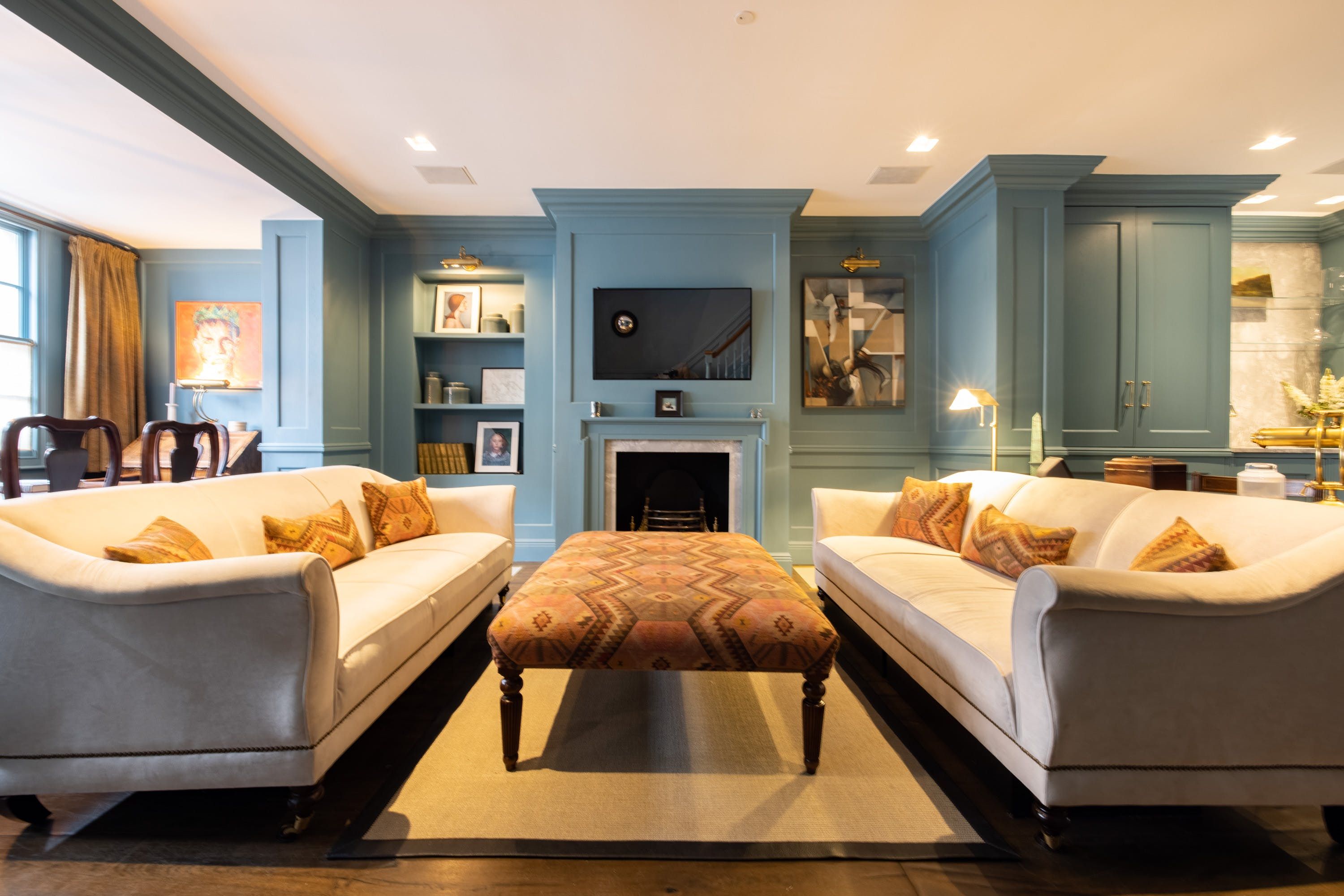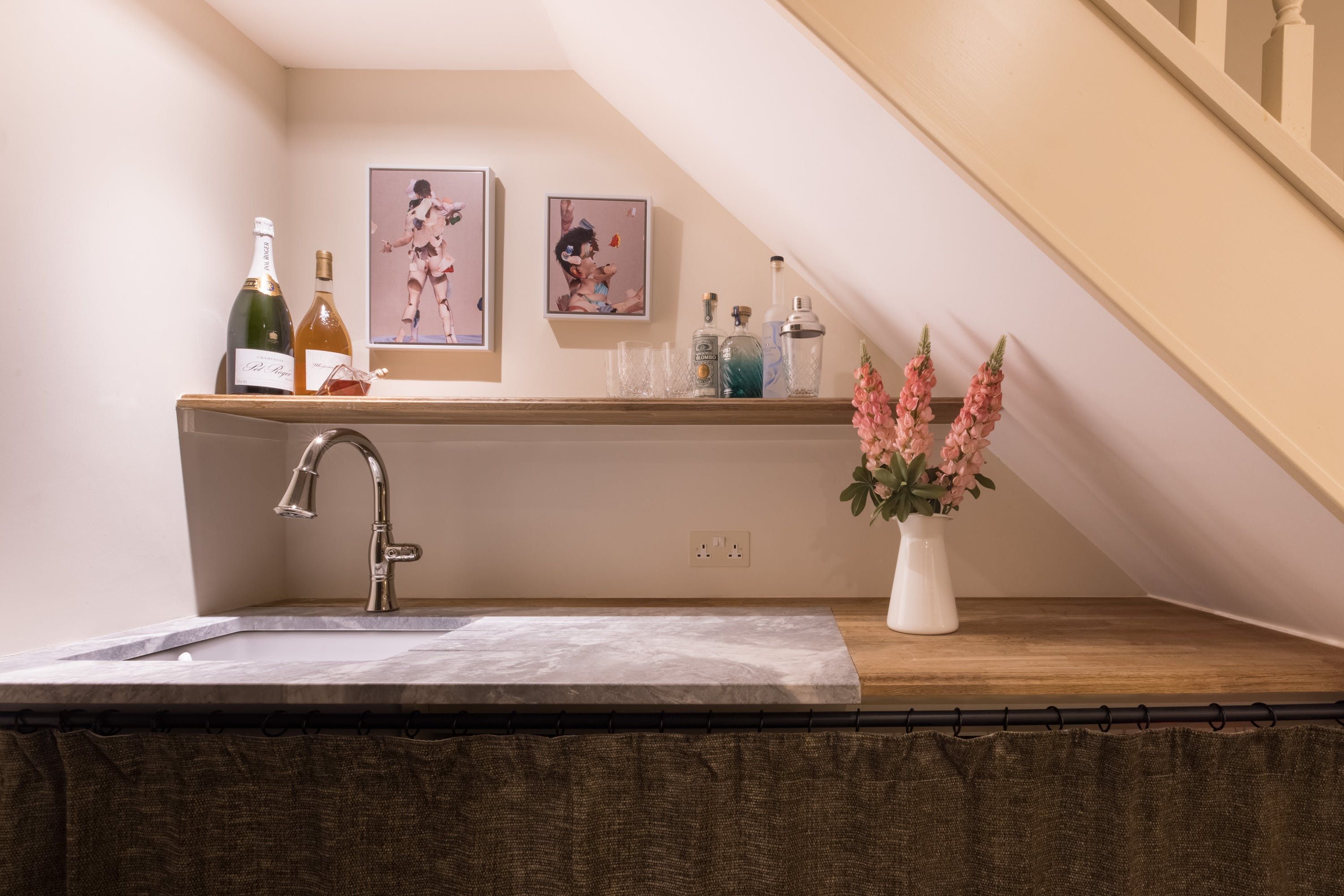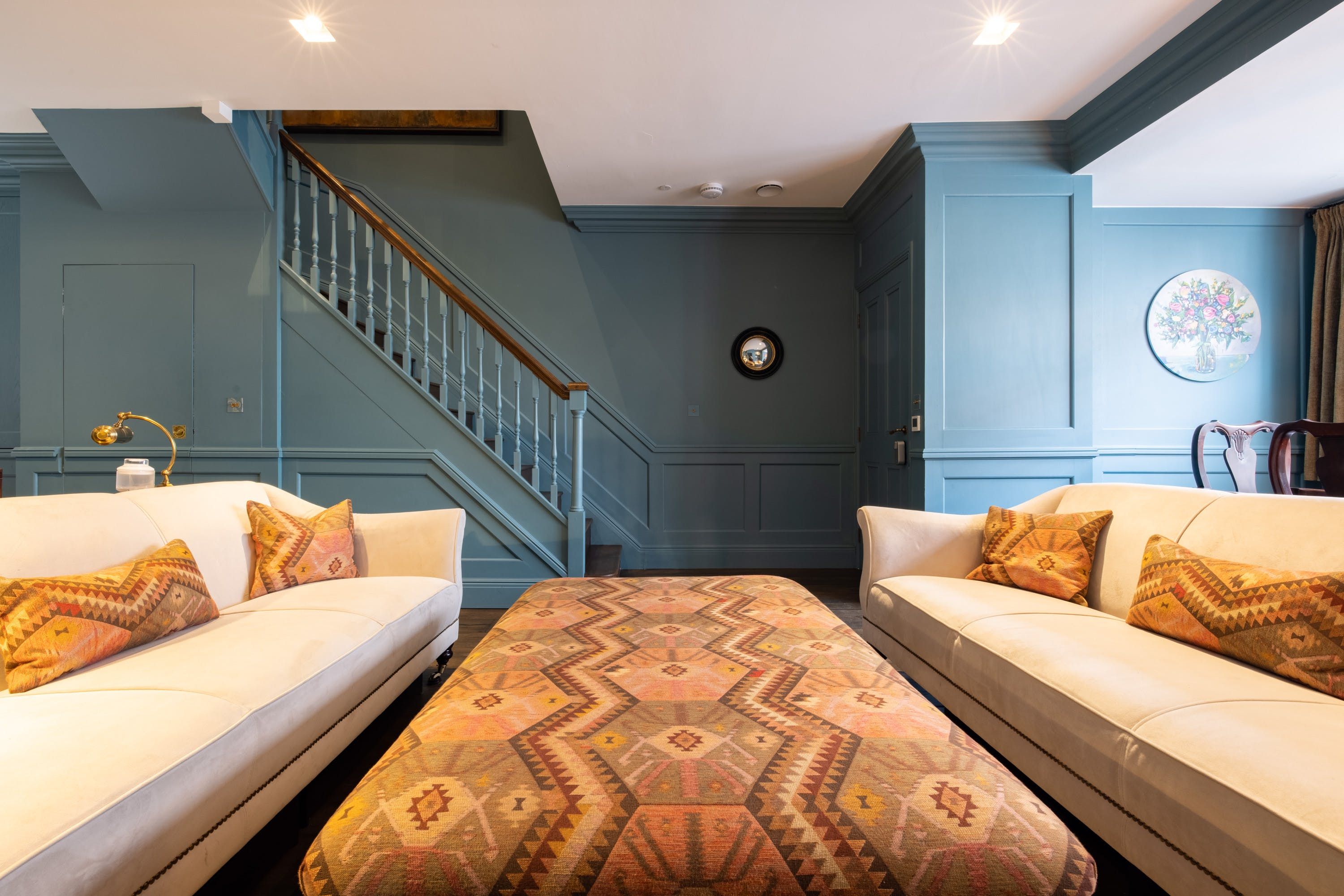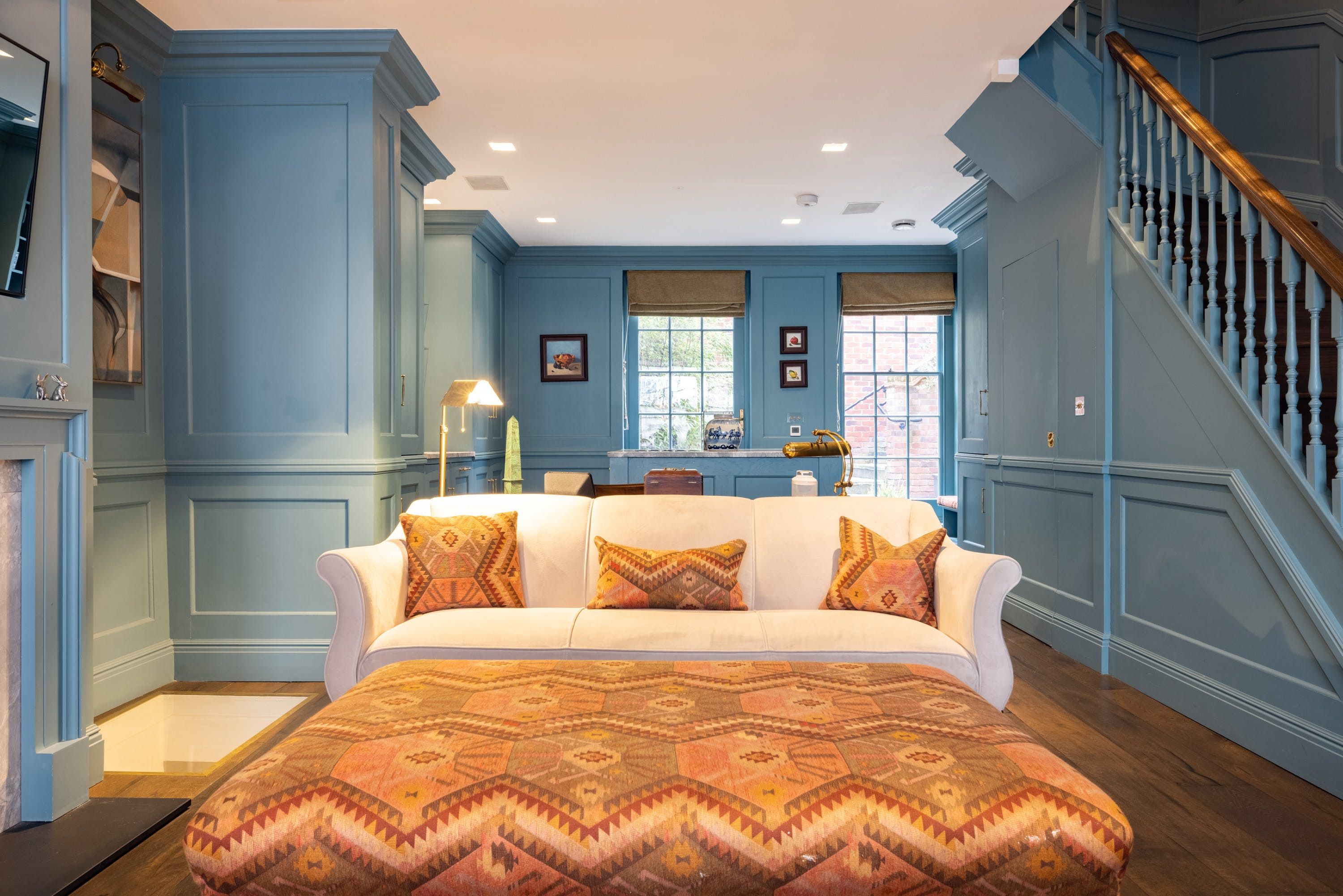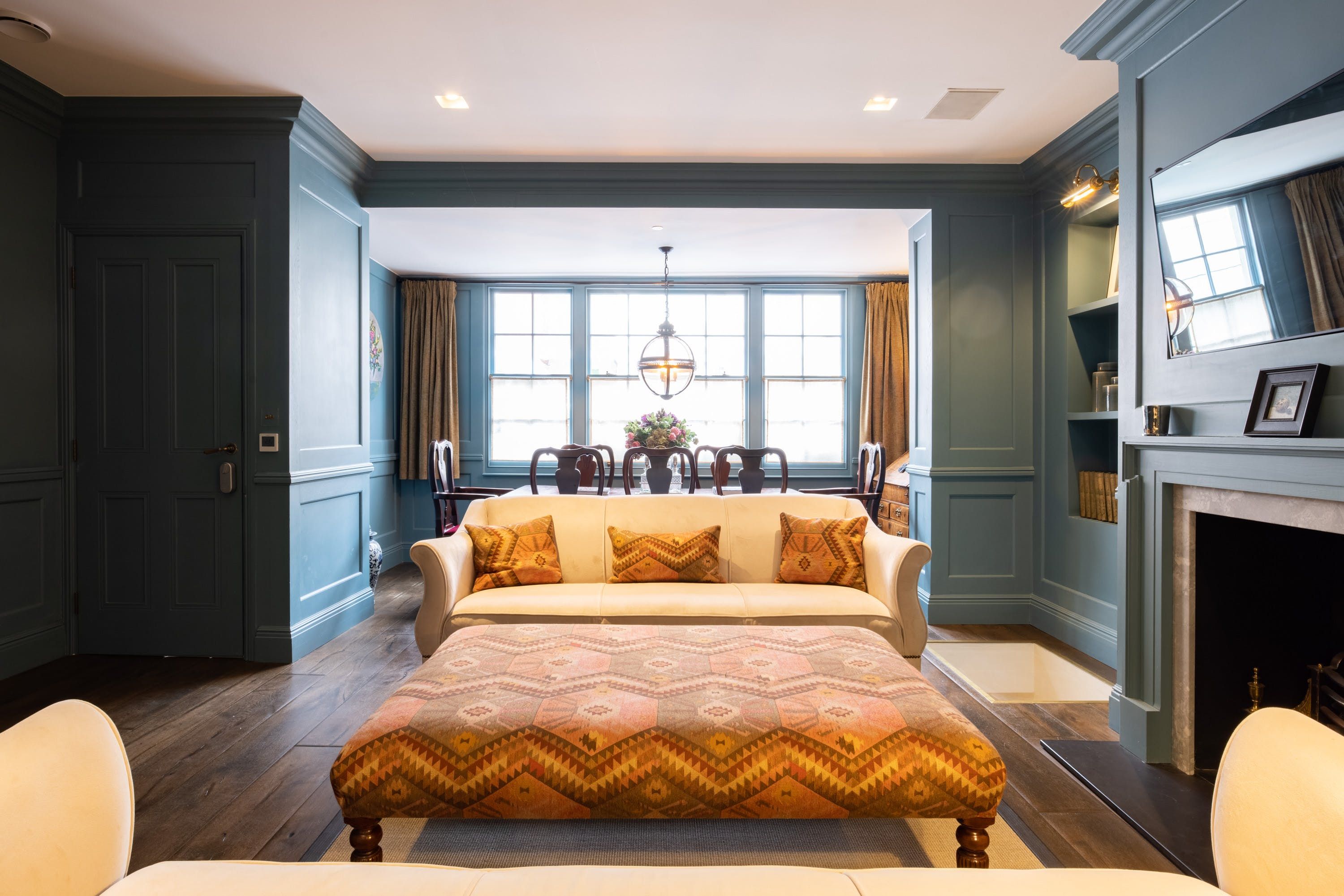 Barnes is one of London's most coveted neighbourhoods and it's homes like this that show you why. The Georgian townhouse is one of the oldest in Barnes Village — named as such since the area is bordered on three sides by the River Thames and parkland on the final side — although the interior is as modern as they come. Downstairs, the teal walls and dark brown floorboards make for an opulent canvas against which the varied artwork collection, marble kitchen surfaces and patterned ottoman stand out. As well as an additional living room geared towards movie nights, guests will also find a small patio filled with plants at the back of the property and a balcony with a view of the river. As well as sitting on a high street with plenty of shops and cafes, the Thames Path can be reached in just two minutes if you fancy a stroll, while the London Wetland Centre is just a fifteen-minute walk away also. The bright lights of Central London take just twenty minutes to get to on the train, too.