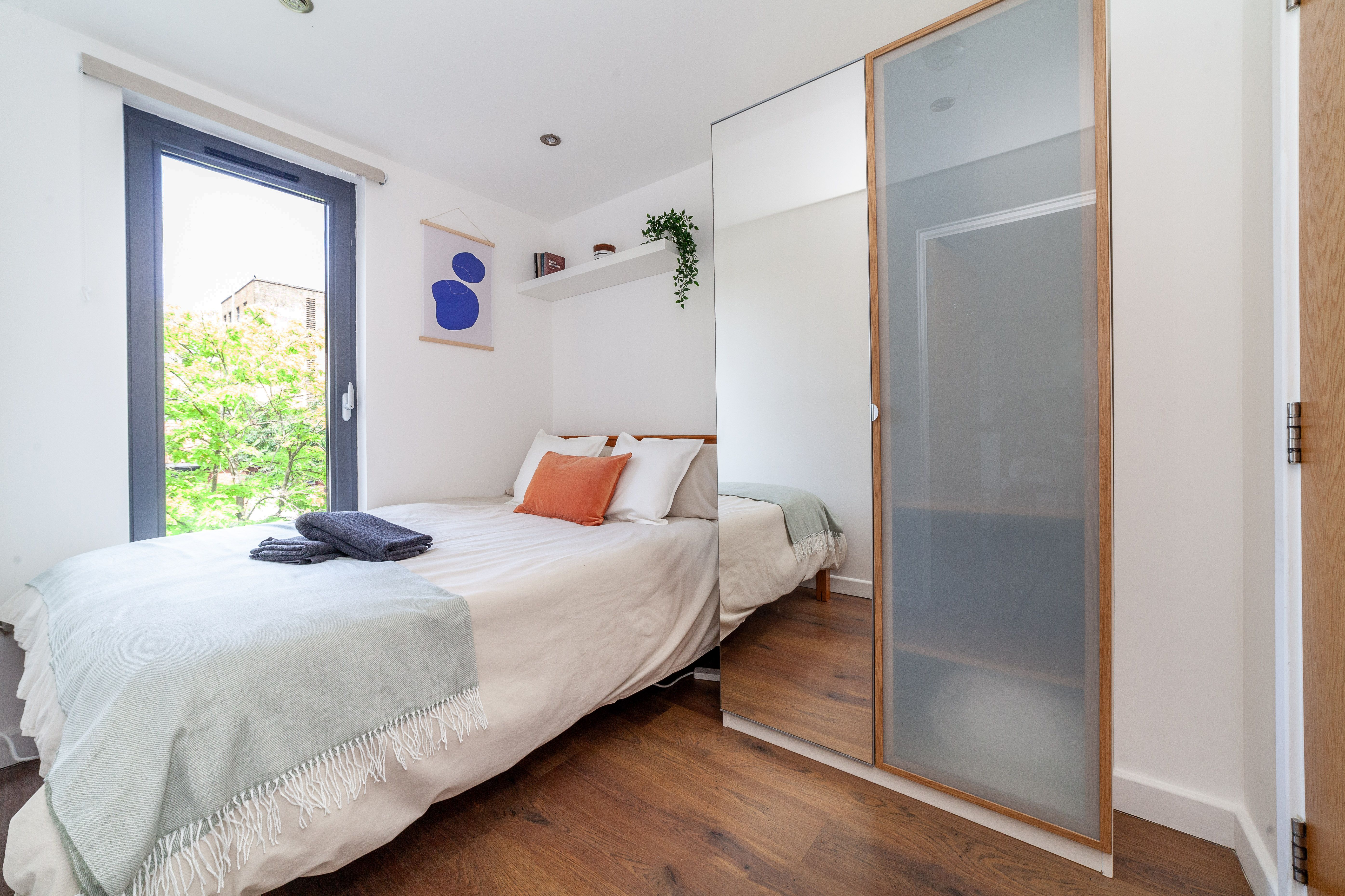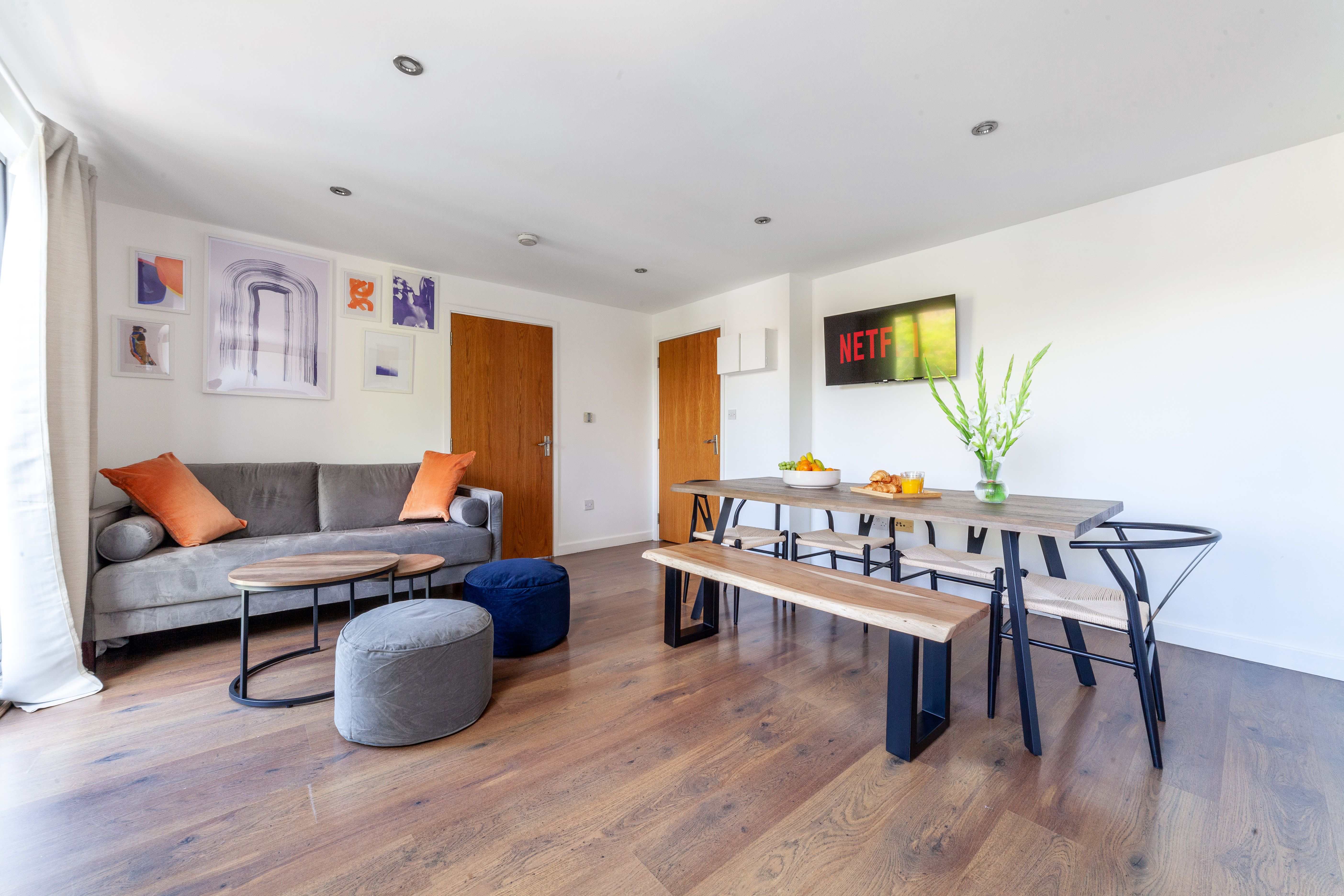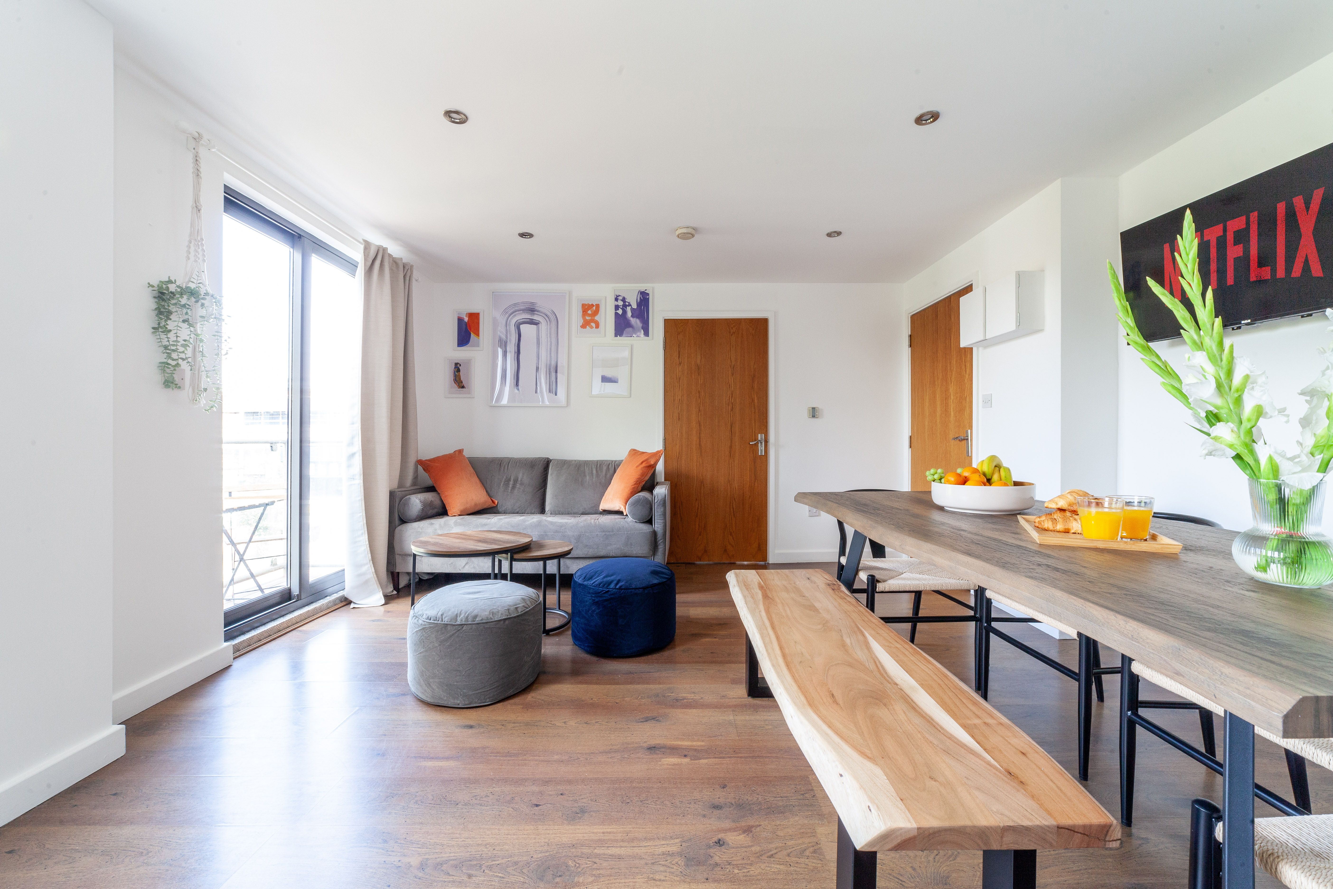 Staying in Hackney, you get an authentic London experience. This home is on a vibrant street in a friendly neighbourhood, within walking distance of coffee shops, bakeries, and restaurants. You can hop on the train at Hackney Downs, a one-minute walk away, to explore the rest of London. This apartment is equally well-suited to families, friends, and professionals – the open-plan living, dining, and kitchen space is ideal for gathering together, and the lavender-filled balcony offers a peaceful escape for quieter moments.