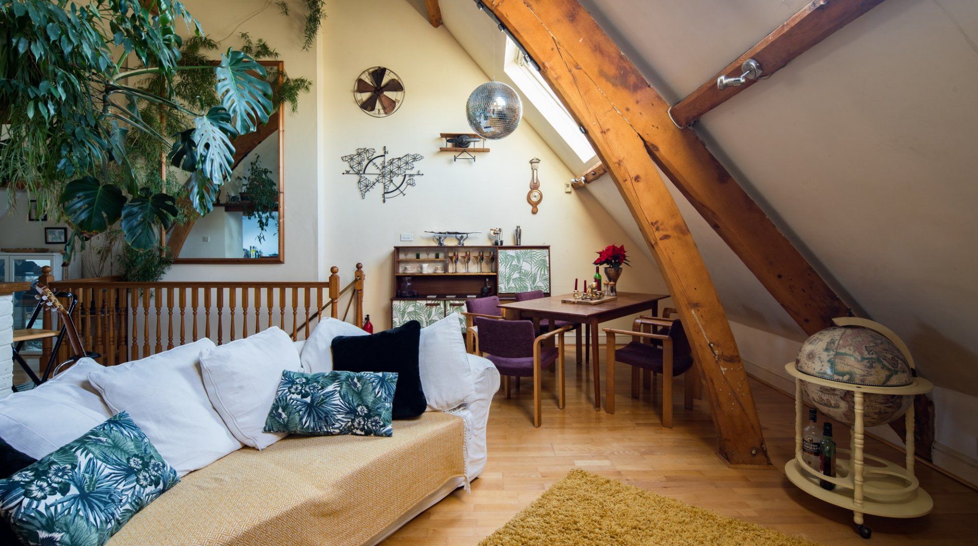Set within an old Victorian school, this home is undeniably “old school” with its vaulted ceilings, exposed beams and climbing plants. While the other rooms aren’t quite as exciting as the living space, we are willing to look past this when considering the views of Canary Wharf. Especially at night, this is a sparkly cityscape you won’t get enough of. While the location is not your typical tourist destination and most will probably find it a little isolated, the streets have period character and the pubs are historic.