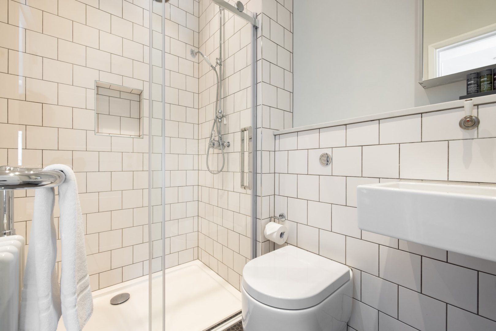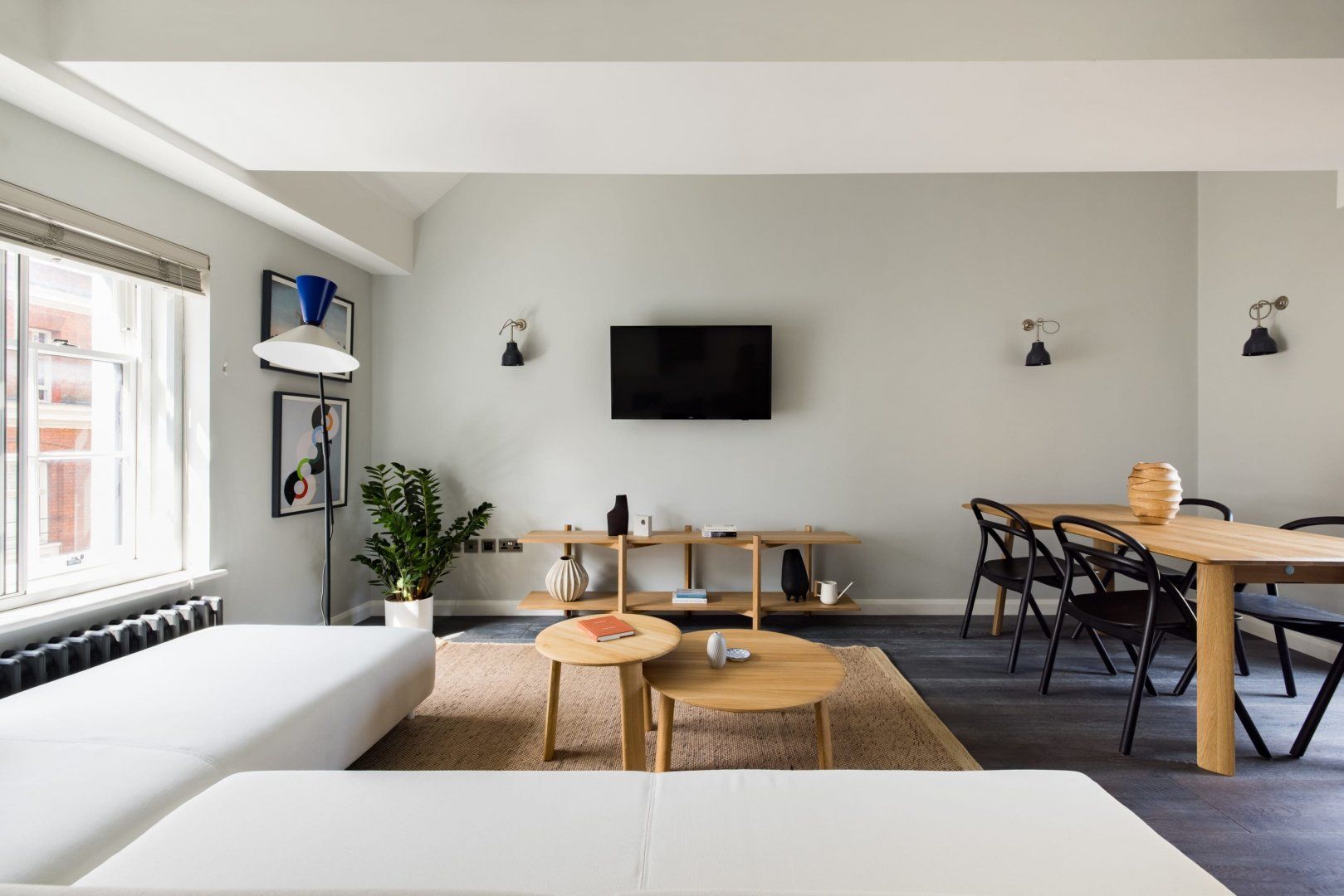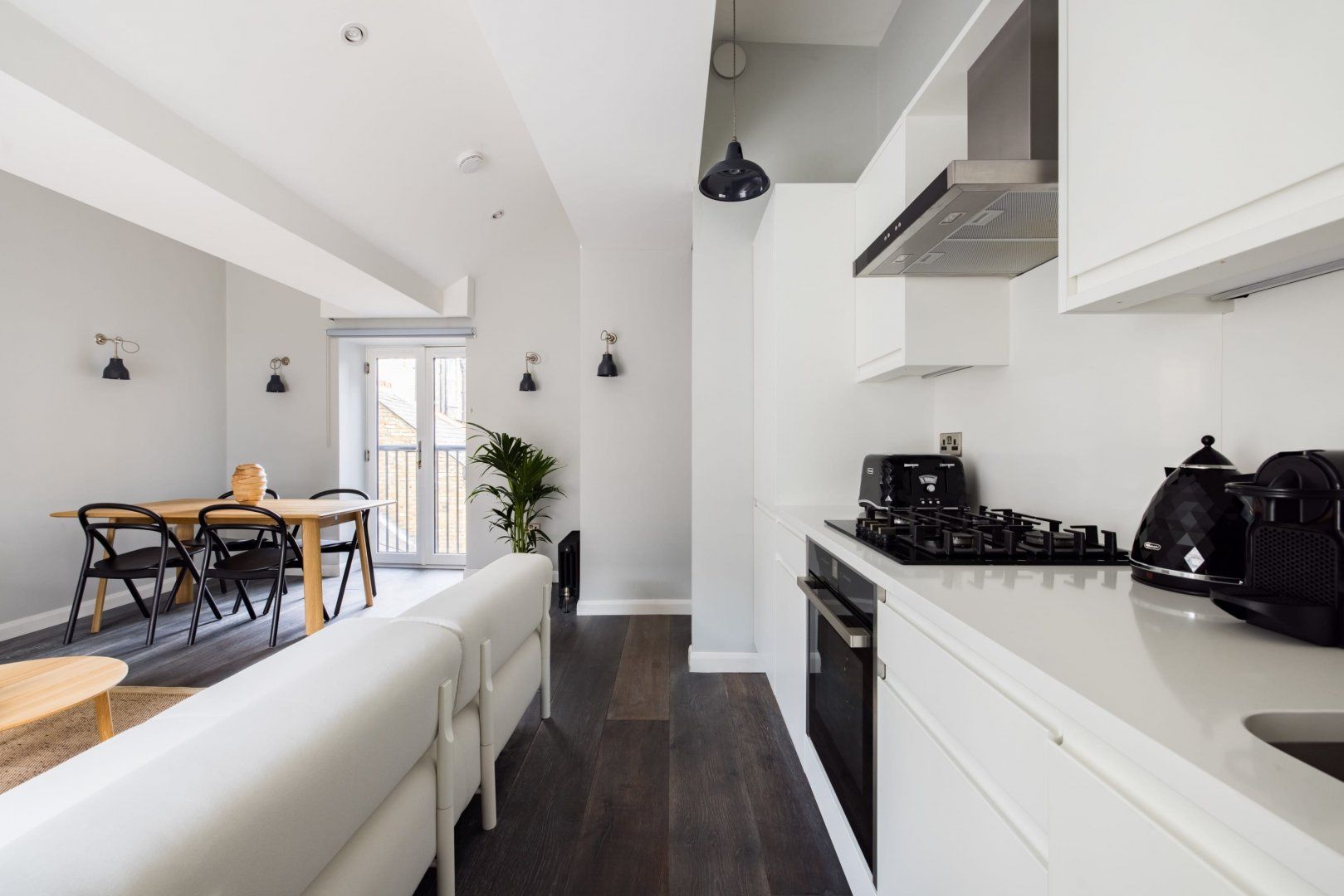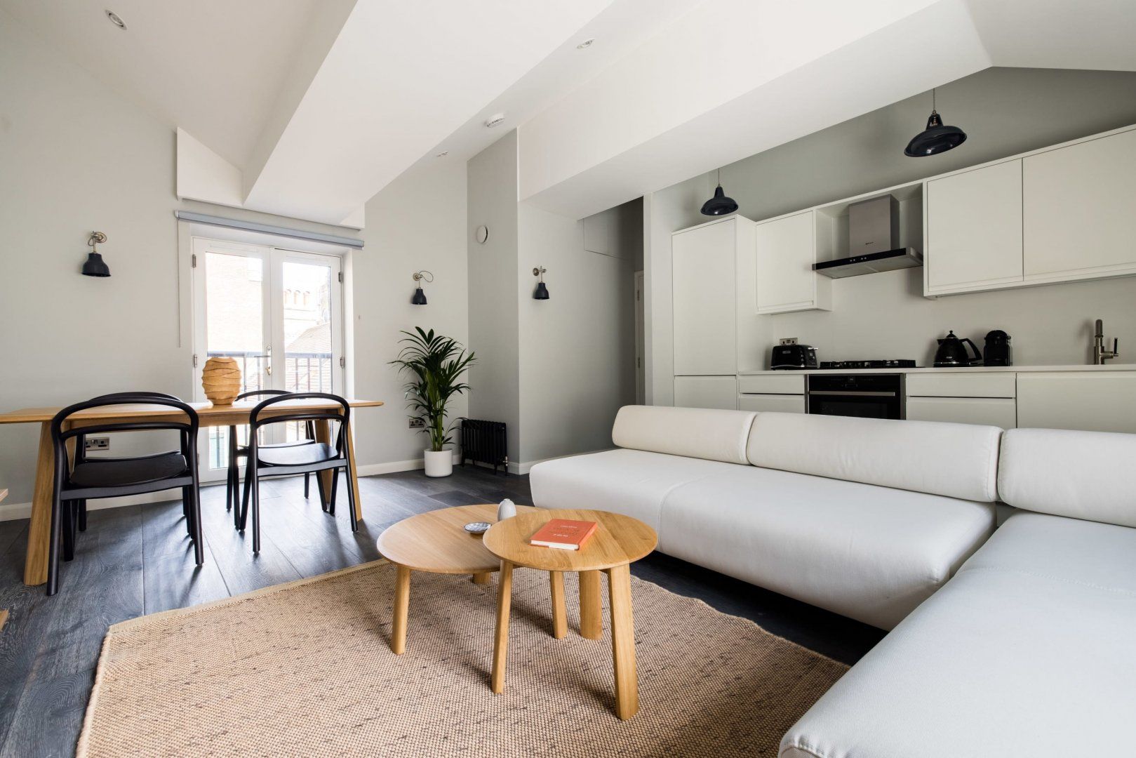There's no shortage of things to get up to in Leicester Square, that's for sure. Famous for landmark cinemas, star-studded movie premieres and buzzing casinos, this vibrant epicentre has plenty to keep you entertained. Even better, it's close to everything – Soho, Chinatown, Covent Garden and the West End are all a short stroll away, and thanks to Leicester Square station, zipping around the rest of the city is a breeze. Everything you'd want or need is on your doorstep here, and for first-time visitors to London, it's an exciting, albeit busy, spot to base yourself. When you're not out exploring, this stylish apartment is an excellent place to rest your head. We think it's bright and surprisingly roomy, especially for a flat in one of London's liveliest neighbourhoods. Following an afternoon adventure, sprawl out on the plush L-shaped sofa with a glass of wine and your favourite Netflix shows on the TV. If you're in the mood for a home-cooked meal, the glossy full-size kitchen has you covered. Both bedrooms have sumptuous beds and sleek bathrooms with rain showers, but our favourite detail is the small Juliet balcony off the dining area, where you can stand with your morning coffee and admire the Chinese lanterns hanging on the streets below.