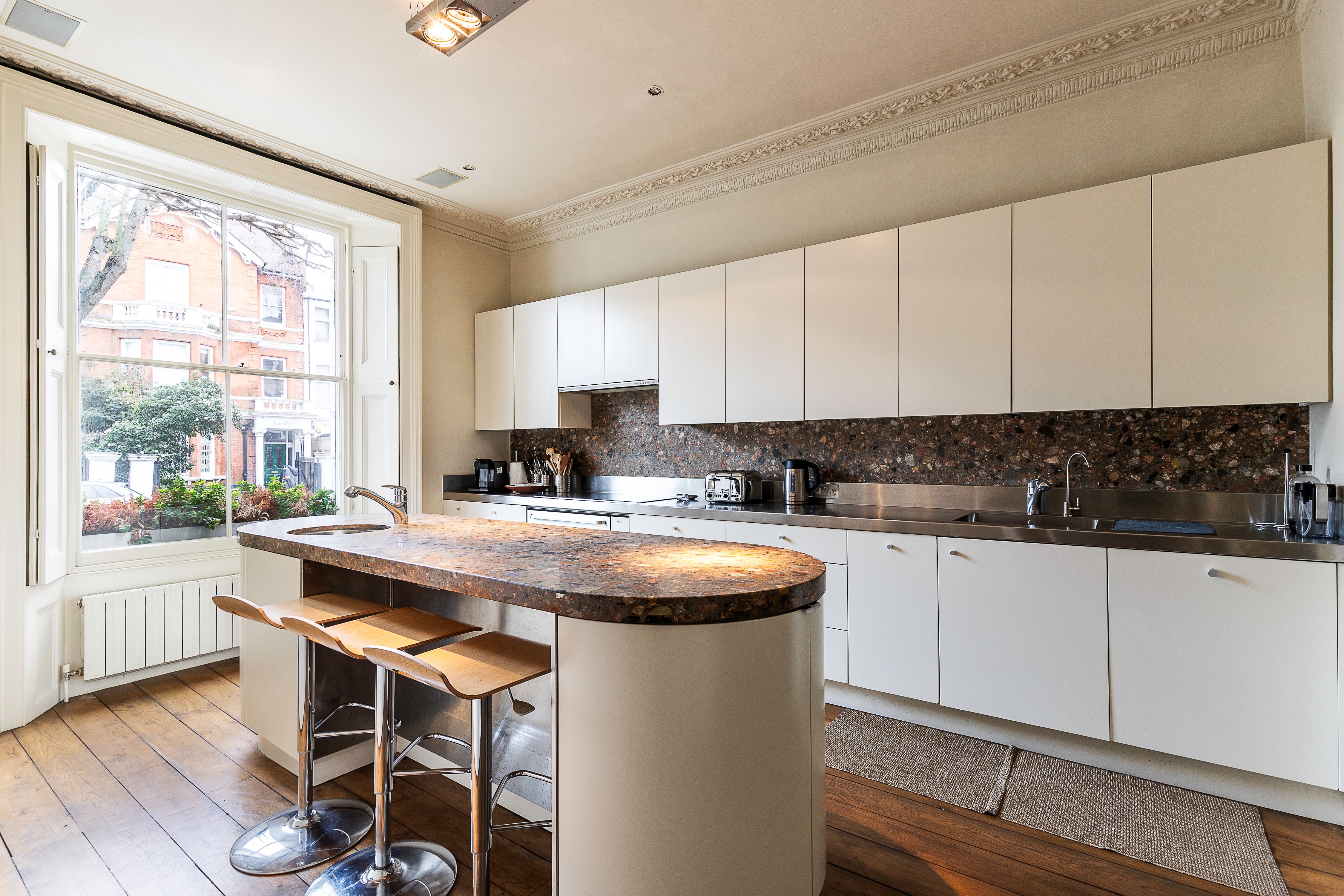 Nestled between Notting Hill and Paddington, this home places you in a fantastic part of London. Outside, you can wander to local cafes, restaurants and shops. It’s also just a short walk to Kensington Gardens and you’ll find great public transport links with Royal Oak, Bayswater and Queensway tube stations within easy walking distance. Back at home, there’s a private garden for warm weather drinks and two living rooms for cosy movie nights. There’s also plenty of dedicated desk space – making this a great option for remote workers.