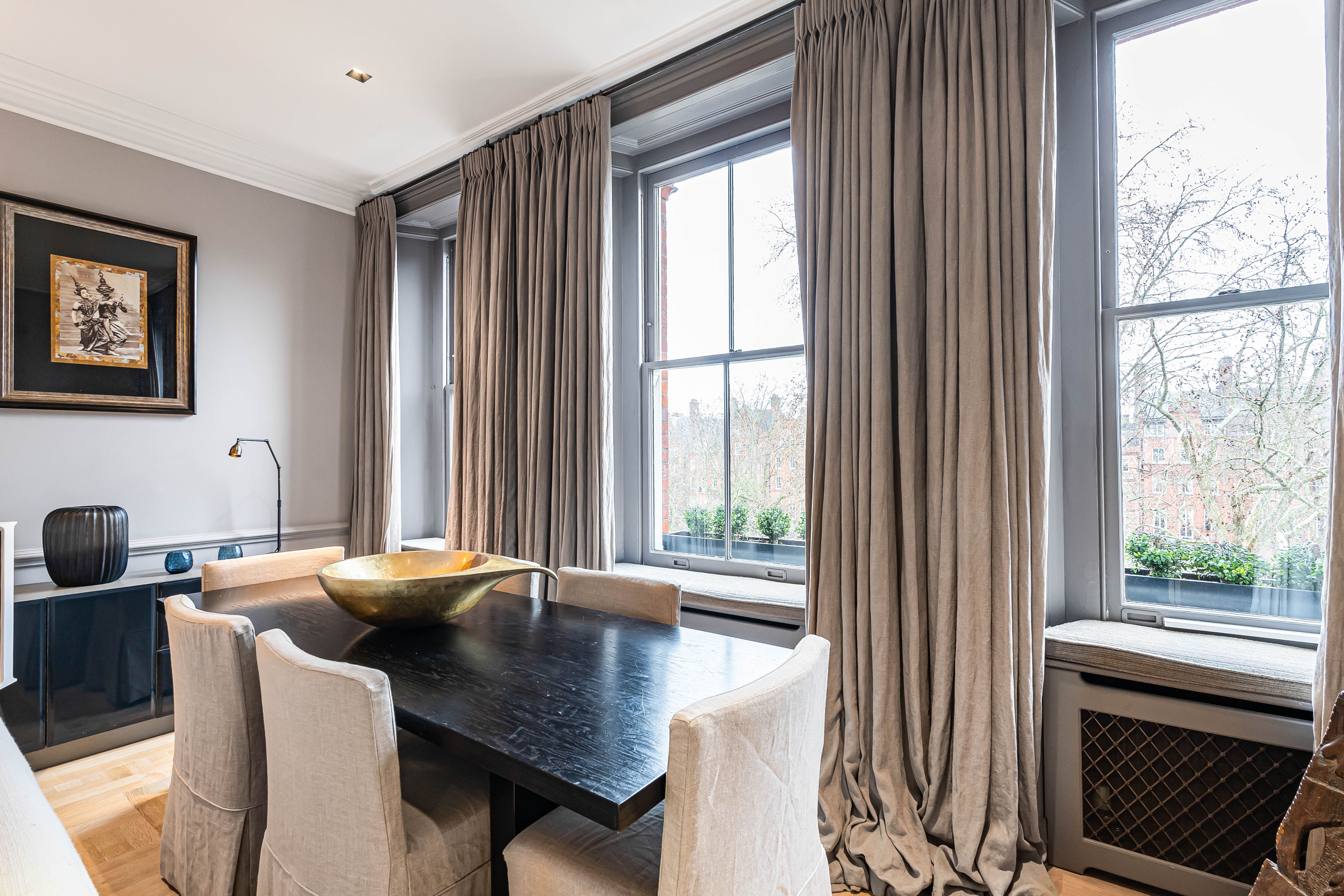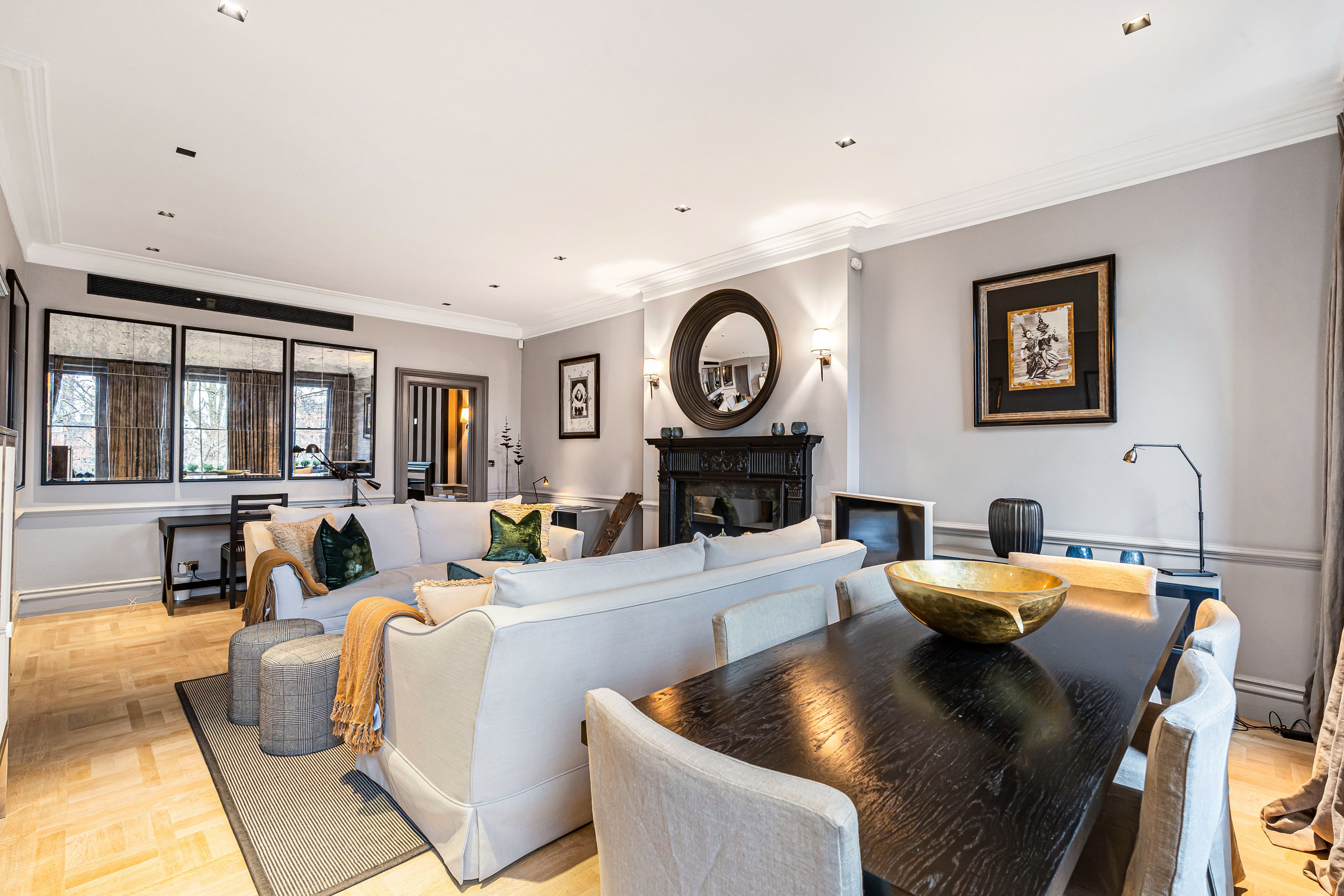 Take the private lift up to this apartment and you’ll find a cosy city sanctuary overlooking the prestigious Cadogan Square. The living room is the perfect spot for cosy evenings by the fire and both of the bedrooms set the tone for total relaxation with en-suite marble bathrooms. There’s no private parking available here, but it’s just a five-minute walk to Sloane Square Tube Station for explorations across London. You’ll also find everything you could need in the neighbourhood with the King’s Road just moments away – offering a fantastic range of restaurants, cafes and shops.