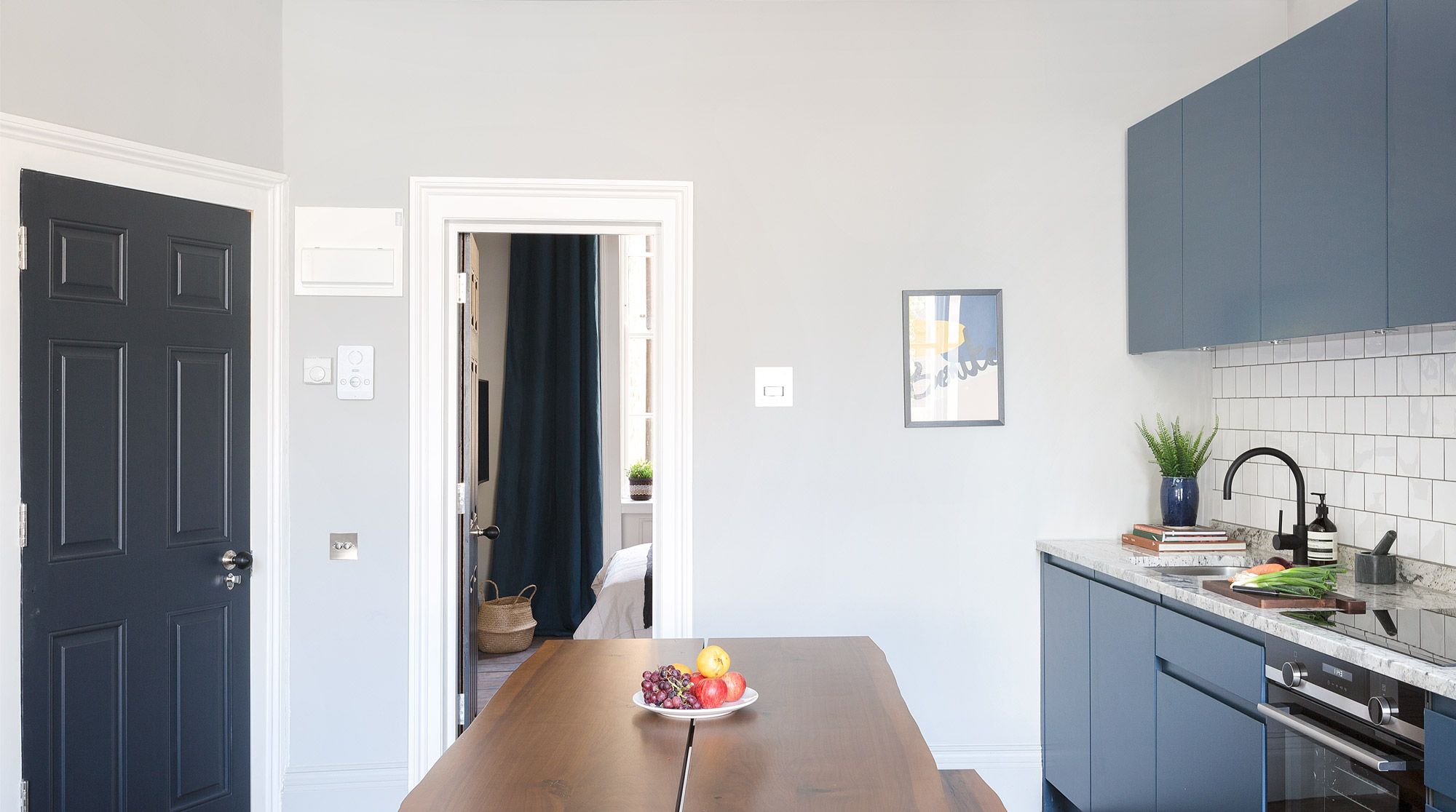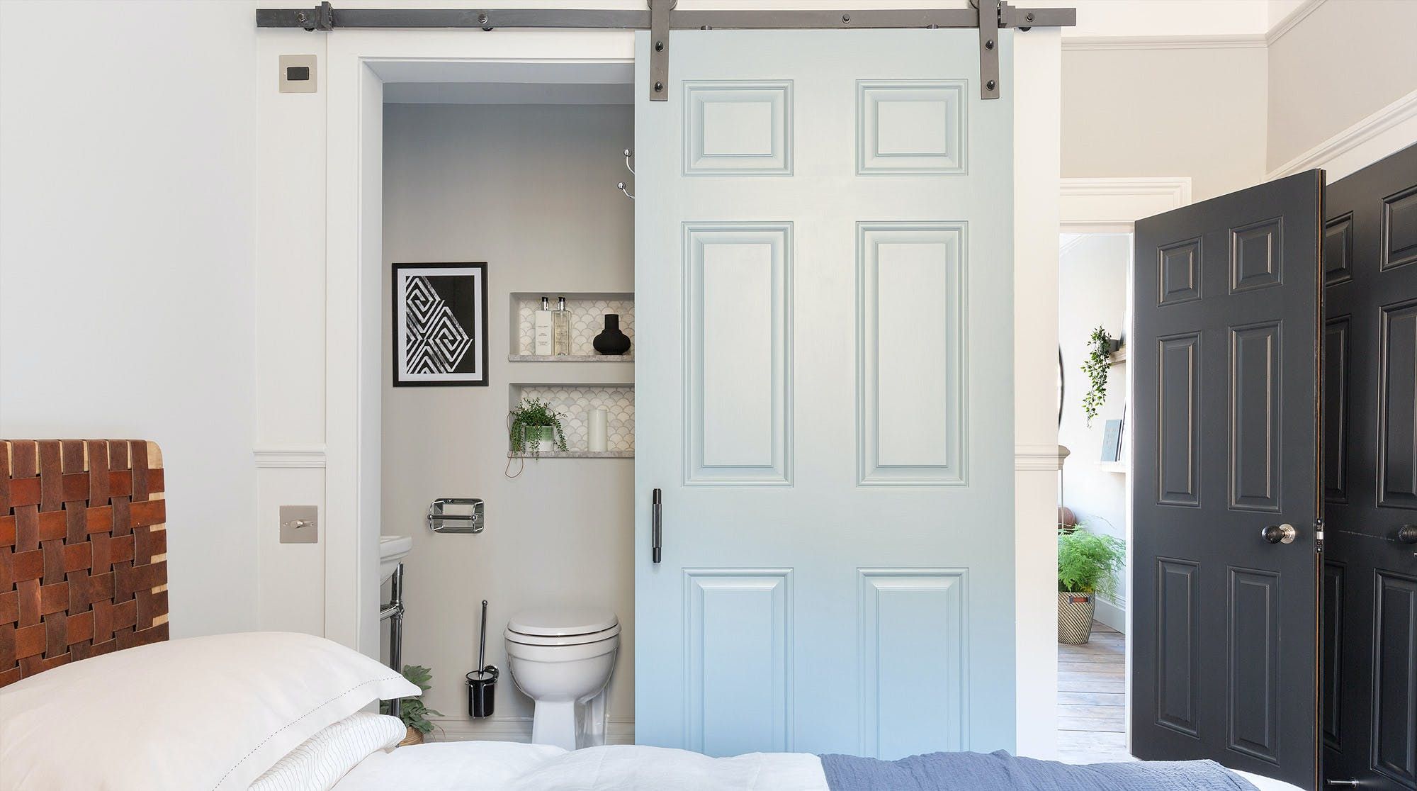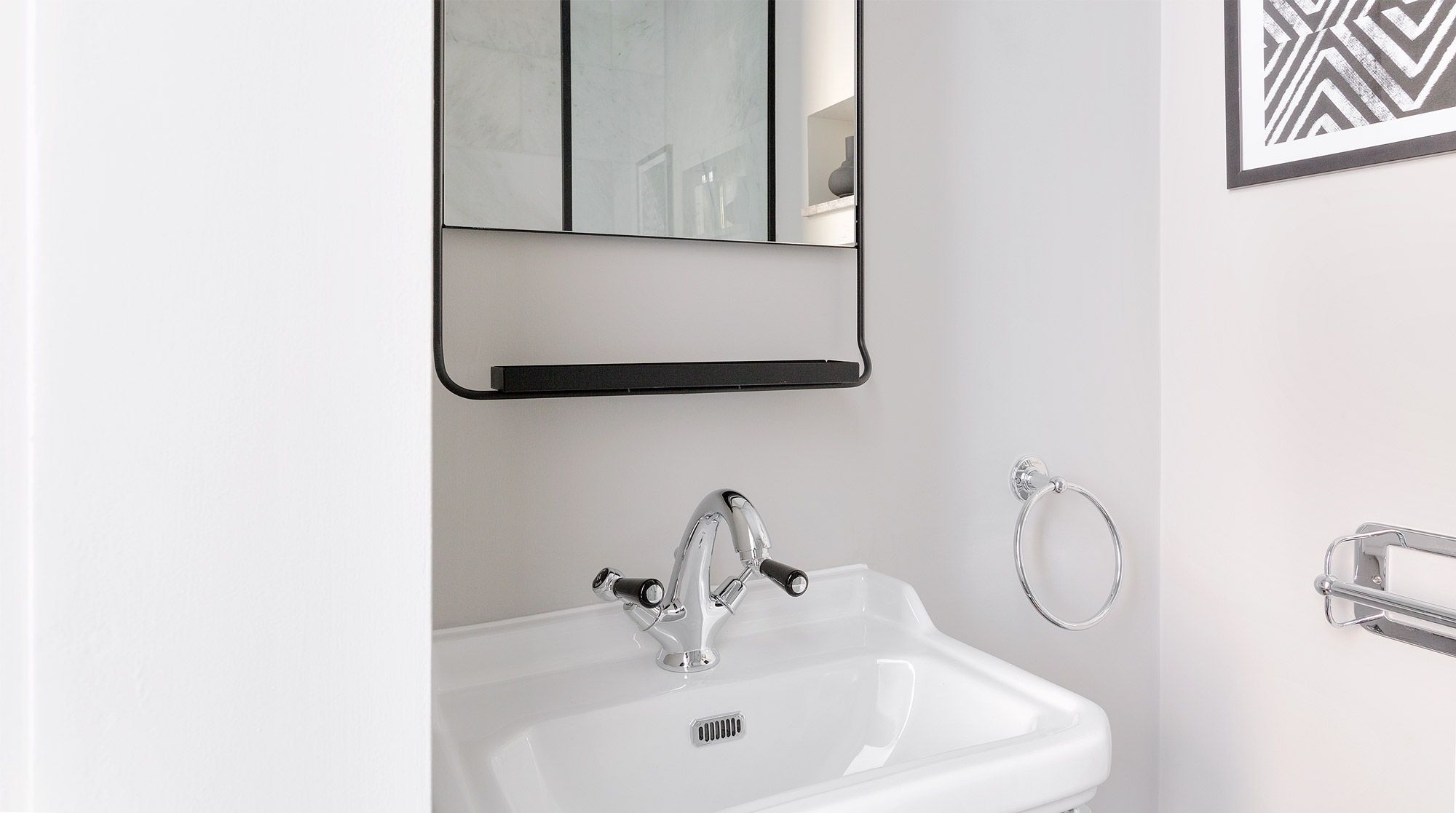 With the bedroom and en-suite at the back of the apartment, away from the road, it's a peaceful space to return to at the end of a busy day. And while the en-suite may be a bit of a squeeze for some, there is another private bathroom up half a flight of stairs – a helpful addition.