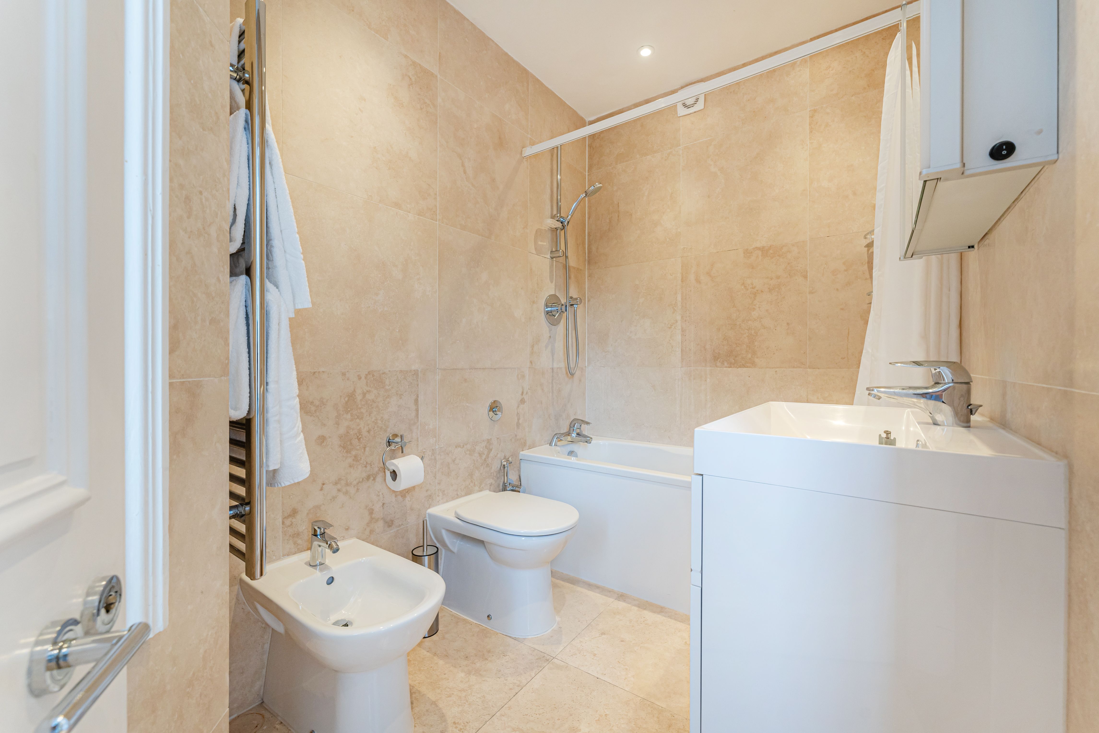 Just steps from Hyde Park, this apartment is a great base for exploring central London – close to top sights and greenery, yet spacious enough to feel at home. There’s plenty of room for everyone to spread out, with a bathroom for each bedroom and a full kitchen for nights when you’d rather stay in. And while much of London is within walking distance, the Tube is just a short stroll away when you want to venture further. The only downside to the fantastic location is that street noise can sometimes be heard at night.