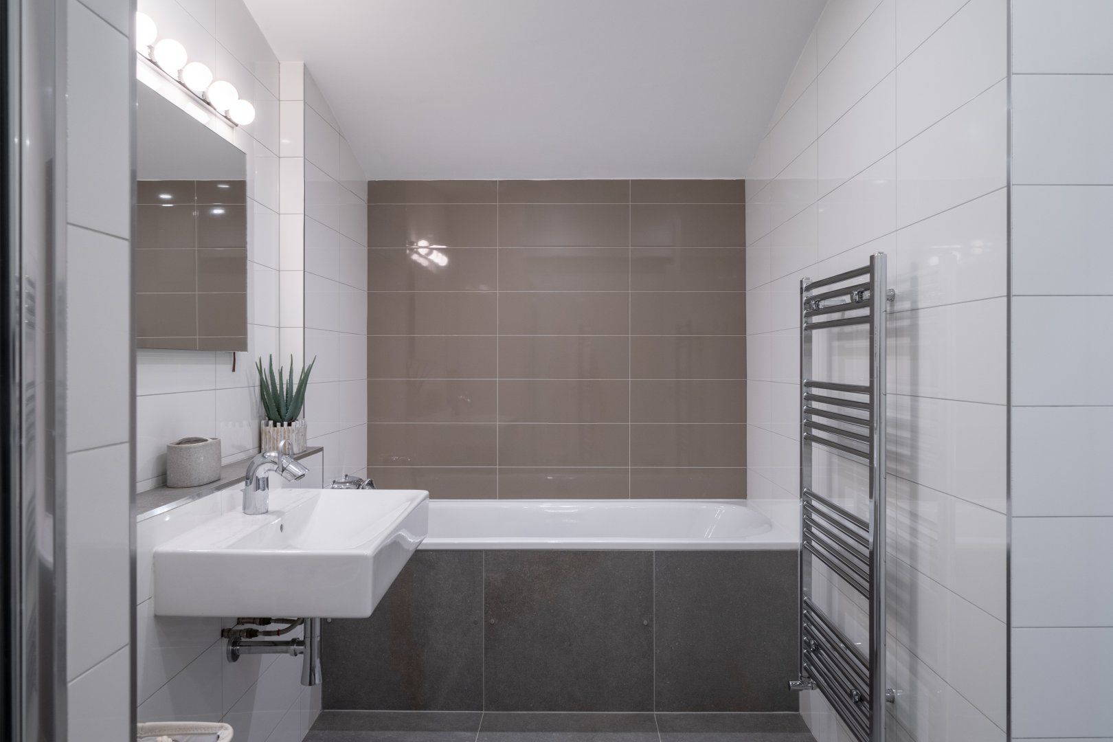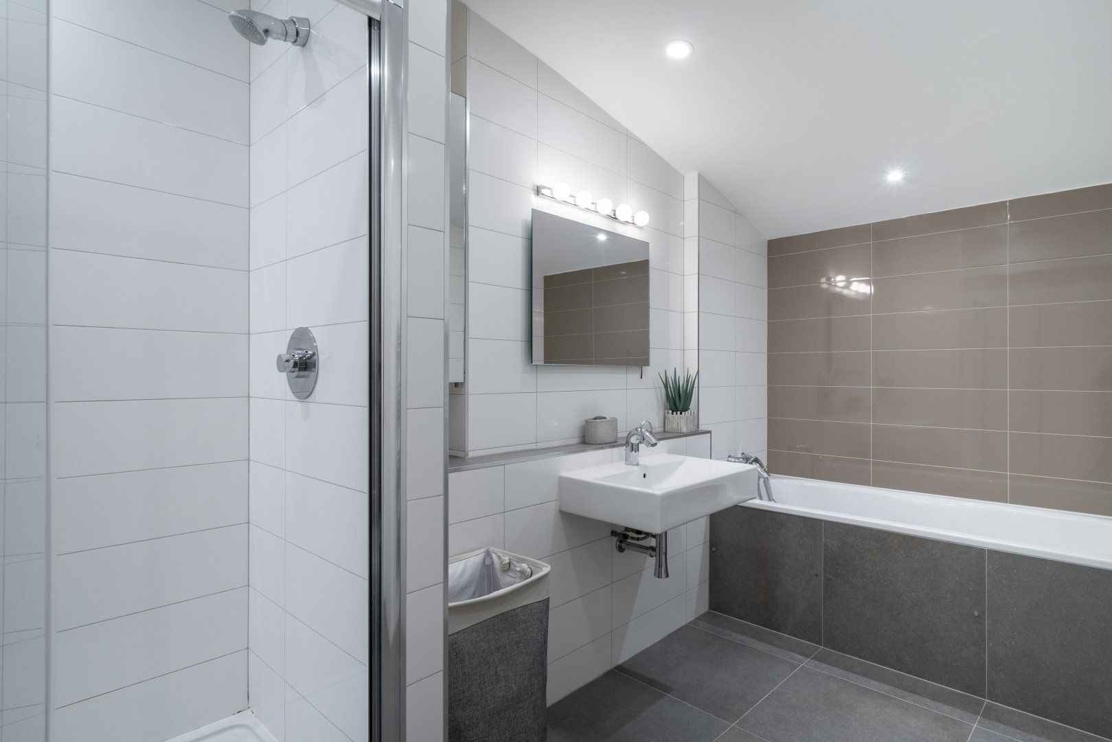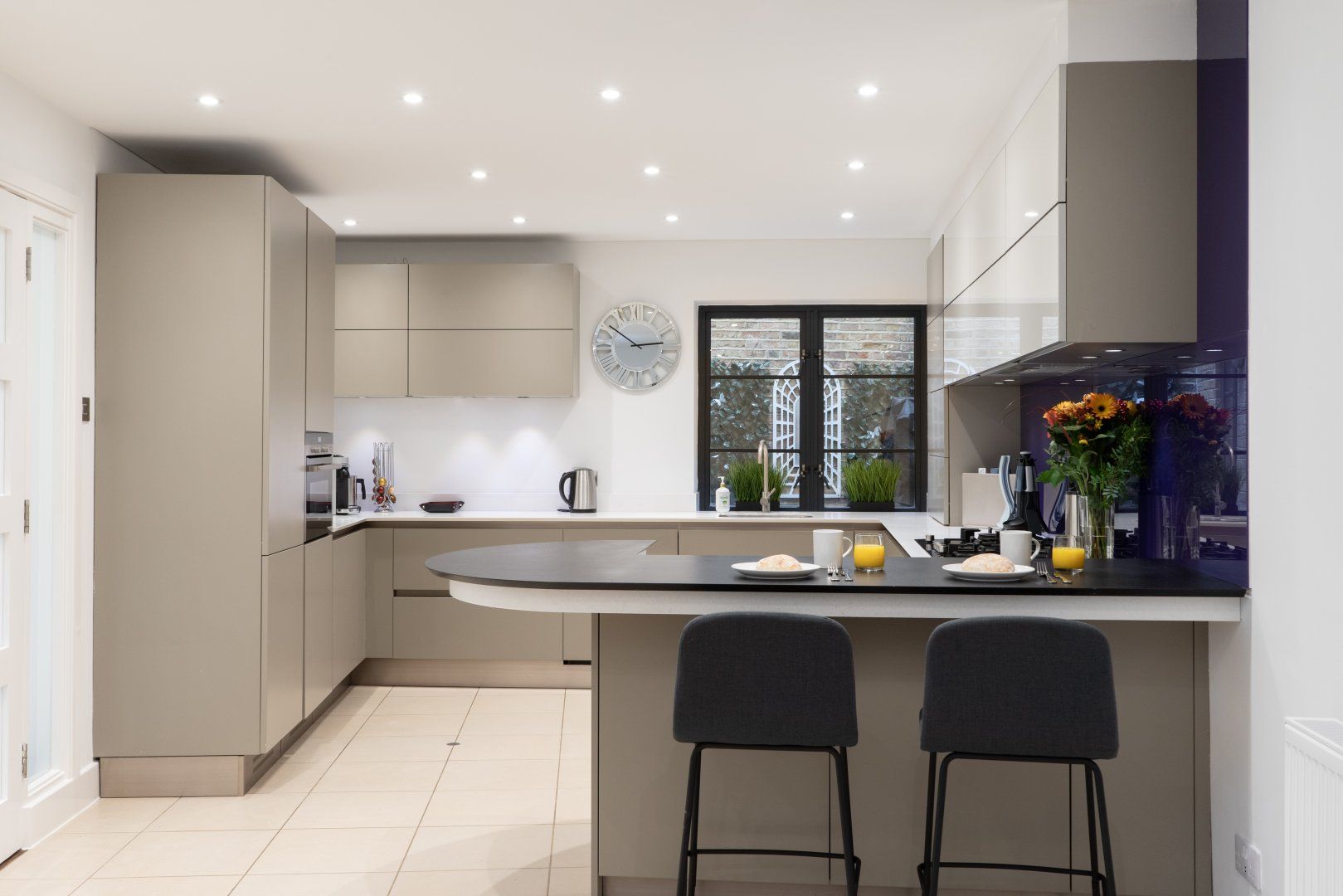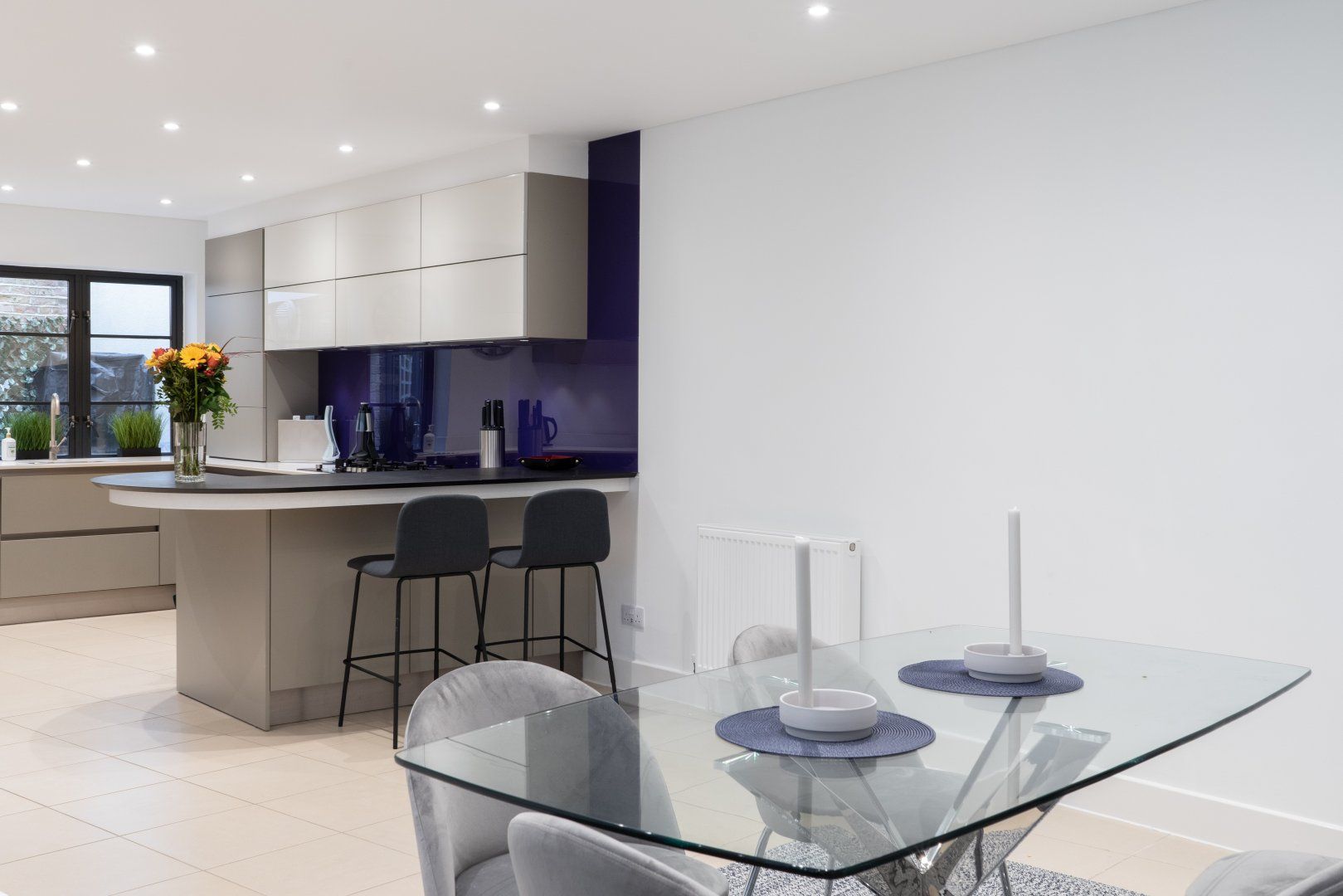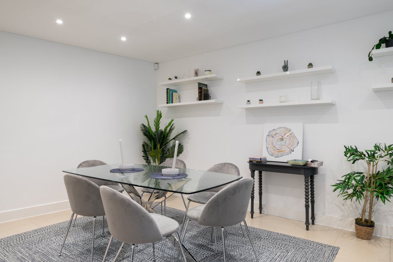Let yourself be embraced by the welcoming ambience of this space, with its plush sofas, sleek furnishings and gorgeous plants dotted about. The huge window overlooks a private courtyard and it lets in streams of natural light which gently flood the lounge area – settle in for an evening of movies and conversation with your loved ones and enjoy a lovely homemade supper at the elegant dining table. The modern, well-equipped kitchen will make rustling up delicious meals a breeze, and you can also opt to dine outdoors on the patio, where there’s a barbecue at your disposal too.