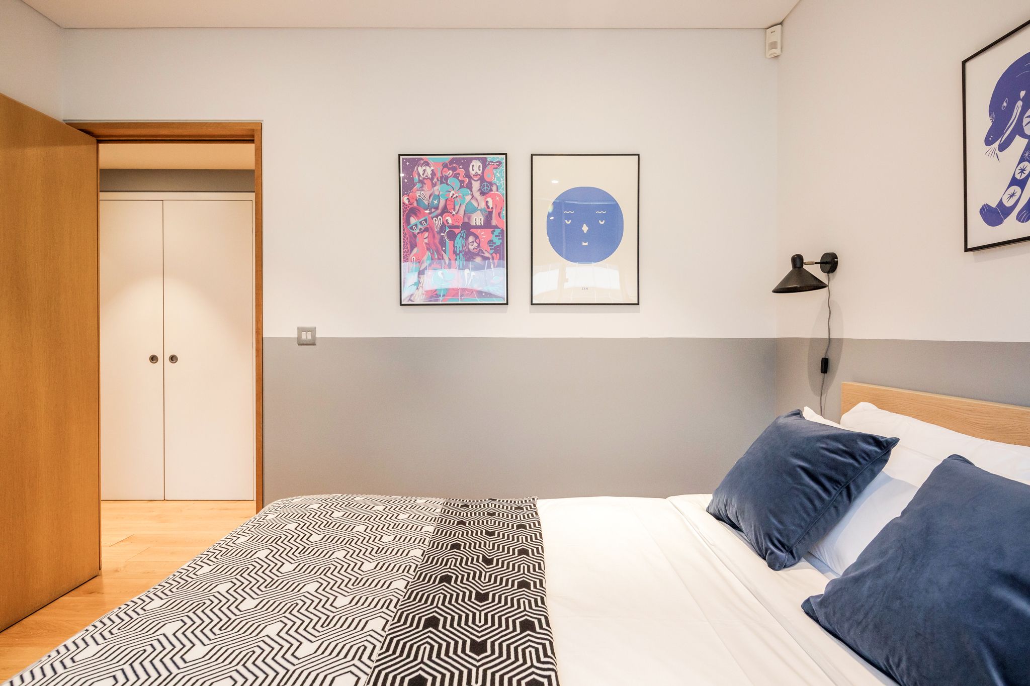 Inside you’ll find a large open-plan living room, with huge windows letting in streams of natural light. Beyond, there’s the terrace where you’ll love to relax with a glass of wine and watch as the city lights begin to sparkle in the evening. Rustle up delicious meals in the well-equipped kitchen and share them with your loved ones at the dining table. Later, gather together on the plush sofa and enjoy an evening of movies and conversation.