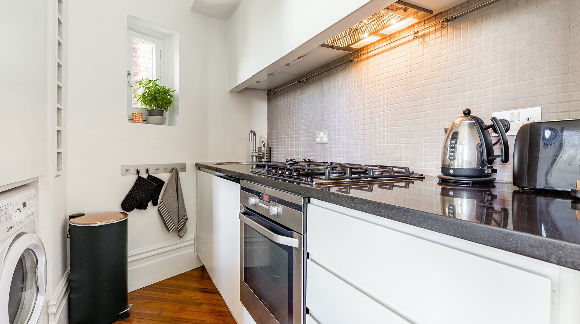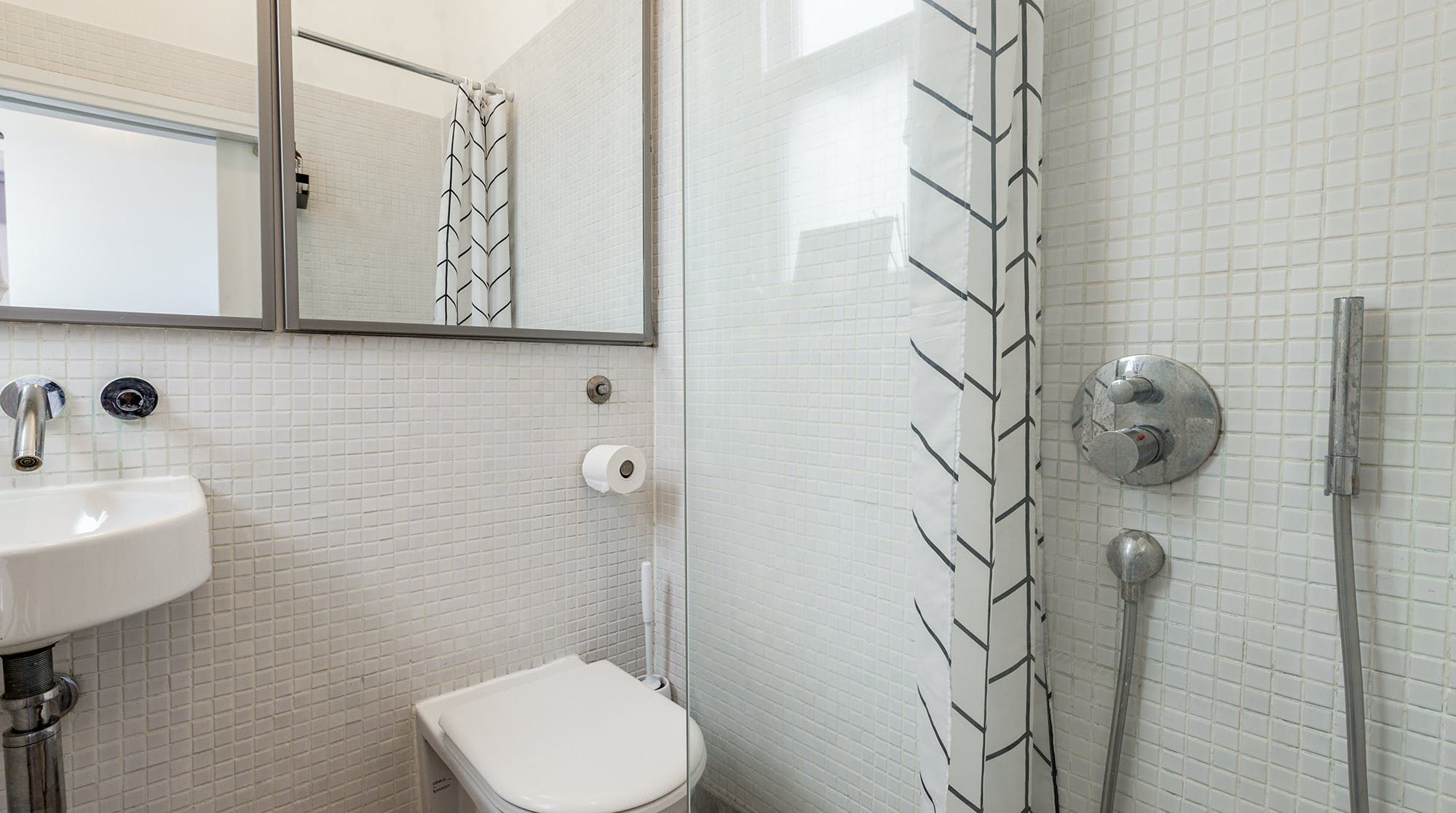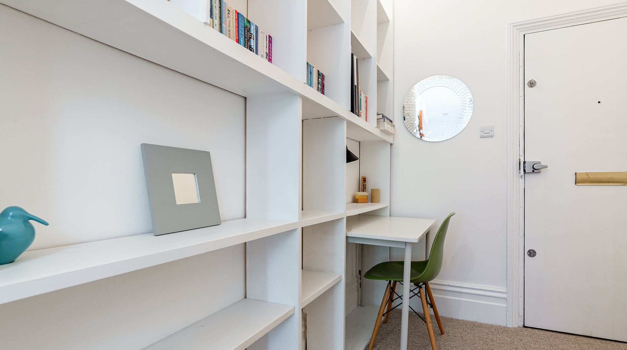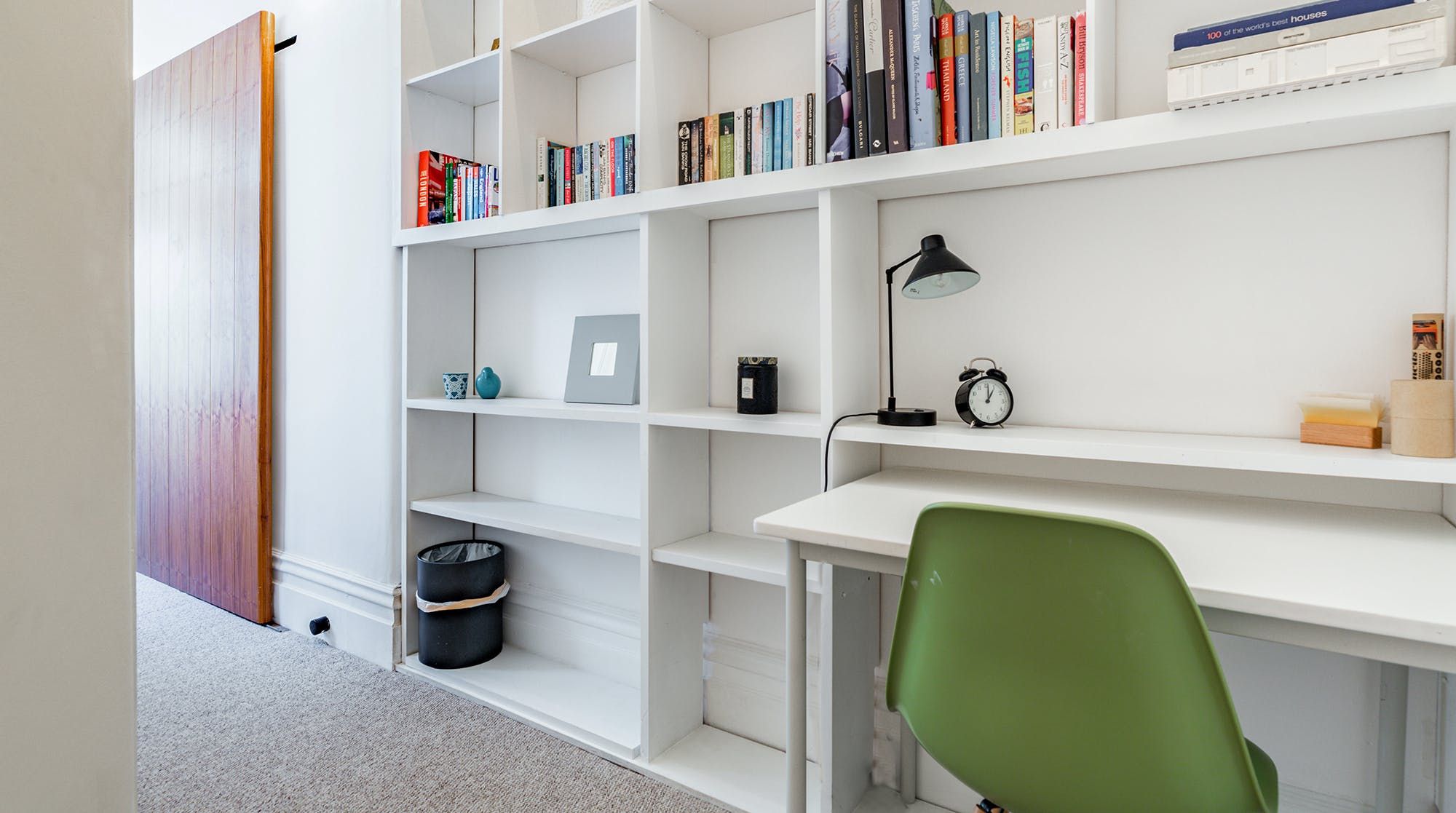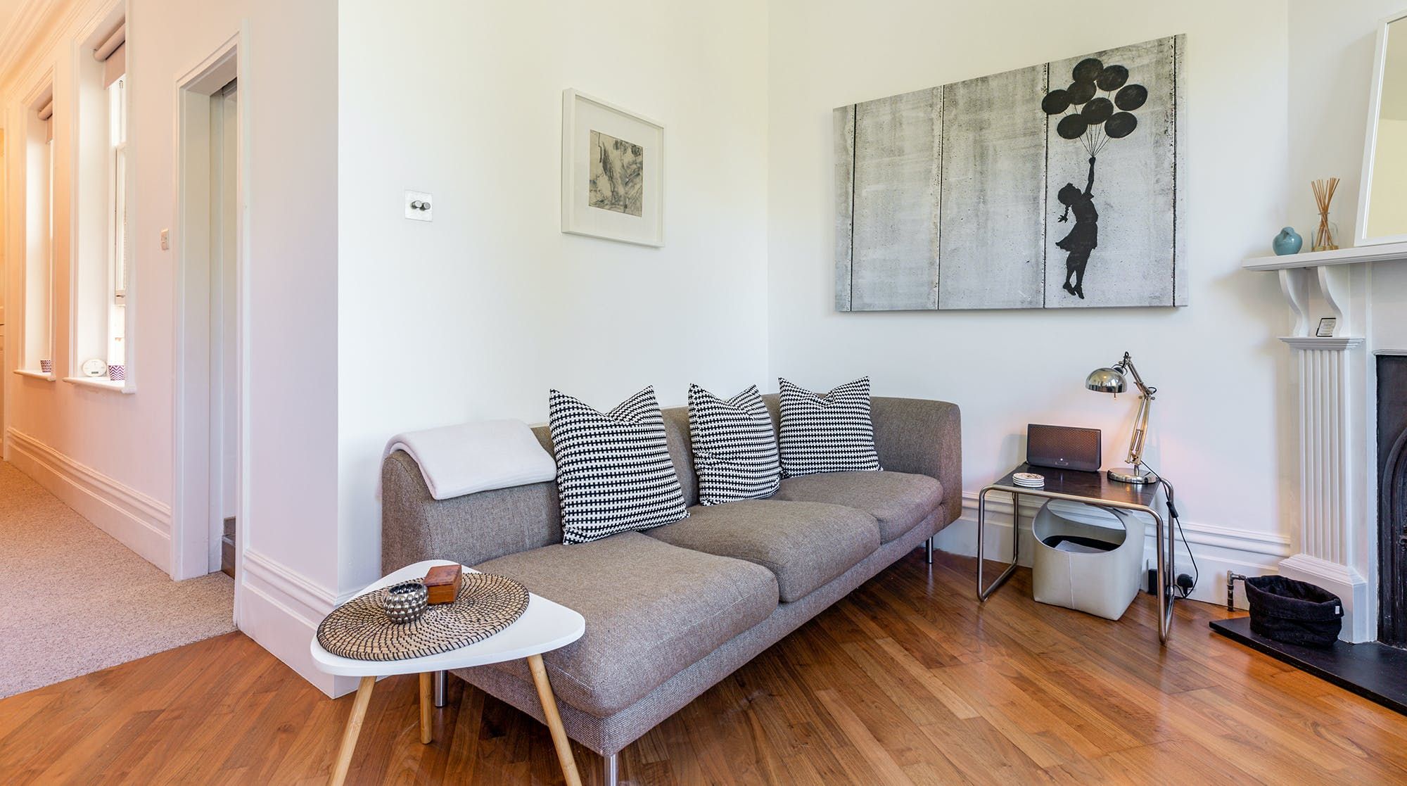 Inside, wooden floors and stark white walls lend the feel of a contemporary art gallery, and indeed, you'll find several Banksy prints hanging up about the place. In addition, guests are also treated to a sleek monochrome kitchen, plus a study area that can be curtained off from the rest of the space in case you're working from home. When the weather's on your side, there's also a communal garden in which to sit out and soak up the sunshine.