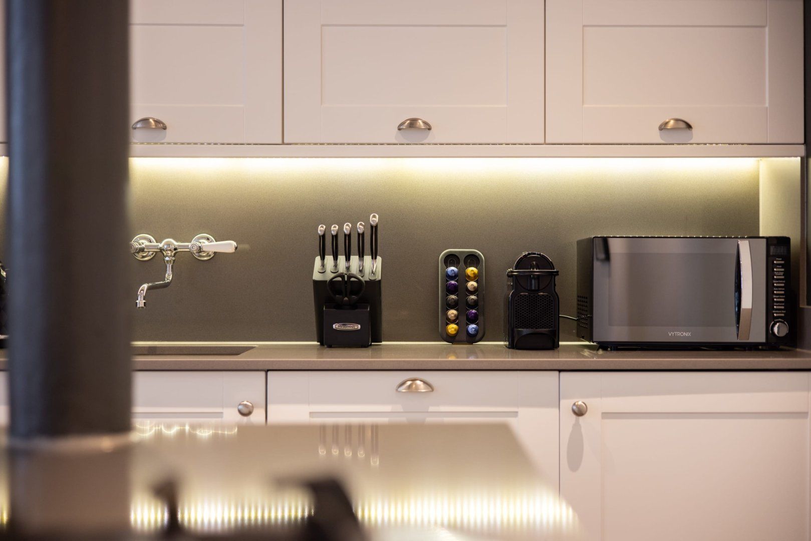 *The kitchen is lacking some basic crockery.