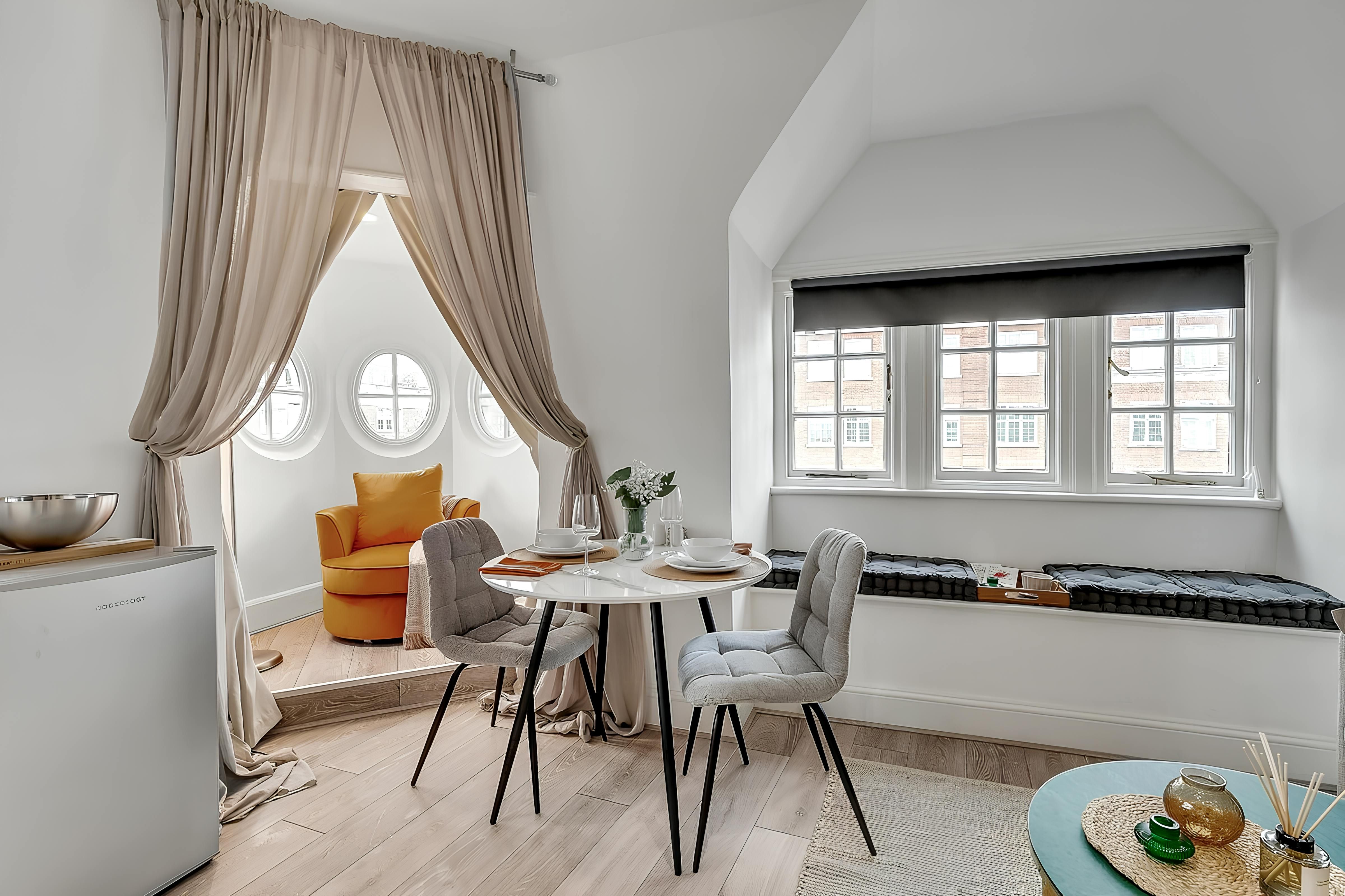 Locations don't get much better than this. Perched above High Street Kensington, you'll have all you need at your fingertips – from shops and cafes to green spaces and galleries. Nearby Holland Park and Kensington Gardens are ideal spots for leisurely strolls, while art fiends will love the Design Museum just down the road. The home itself is cosy and comfortable. We love the window seats and the little alcove where you can curl up with a book. The kitchen is compact, but that’s no bother, as there are plenty of restaurants nearby. Even with one guest sleeping on the sofa bed, we think it's a great option for a central stay.