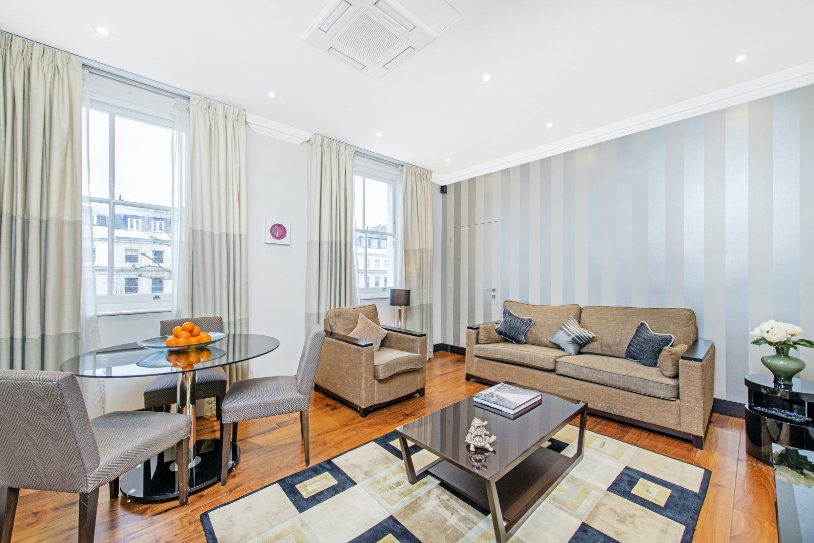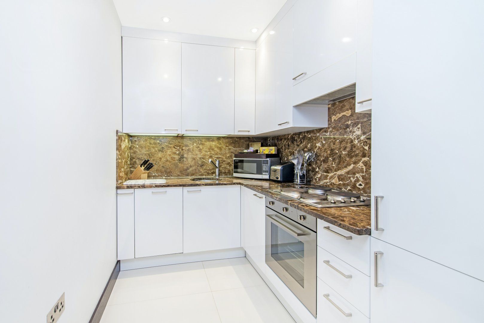 Ideally located in the heart of South Kensington, this handsome apartment is just the ticket for a couple or solo traveller looking to be within easy reach of London’s cultural hotspots. Housed in a neoclassical-style building from the 1870s, there’s a definite air of luxurious sophistication to this bright and welcoming spot. With its hardwood floors, elegant striped wallpaper and sash windows, you’ll have no trouble making yourself at home in its bright living room or getting a dreamy night’s sleep in the neutral-toned bedroom. You’ll relish waking up to Kensington views and heading to the shared gym for an invigorating start to the day, while the bathroom’s Jacuzzi tub provides a relaxing end to any evening. When you’re not chilling out in your snazzy city pad, go out and explore the sights. You’re just a four-minute walk from the Natural History Museum and an eight-minute stroll from the Science Museum and V&A. Hyde Park’s leafy boulevards are also a fifteen-minute walk from your door, while Harrods is twenty minutes away on foot.