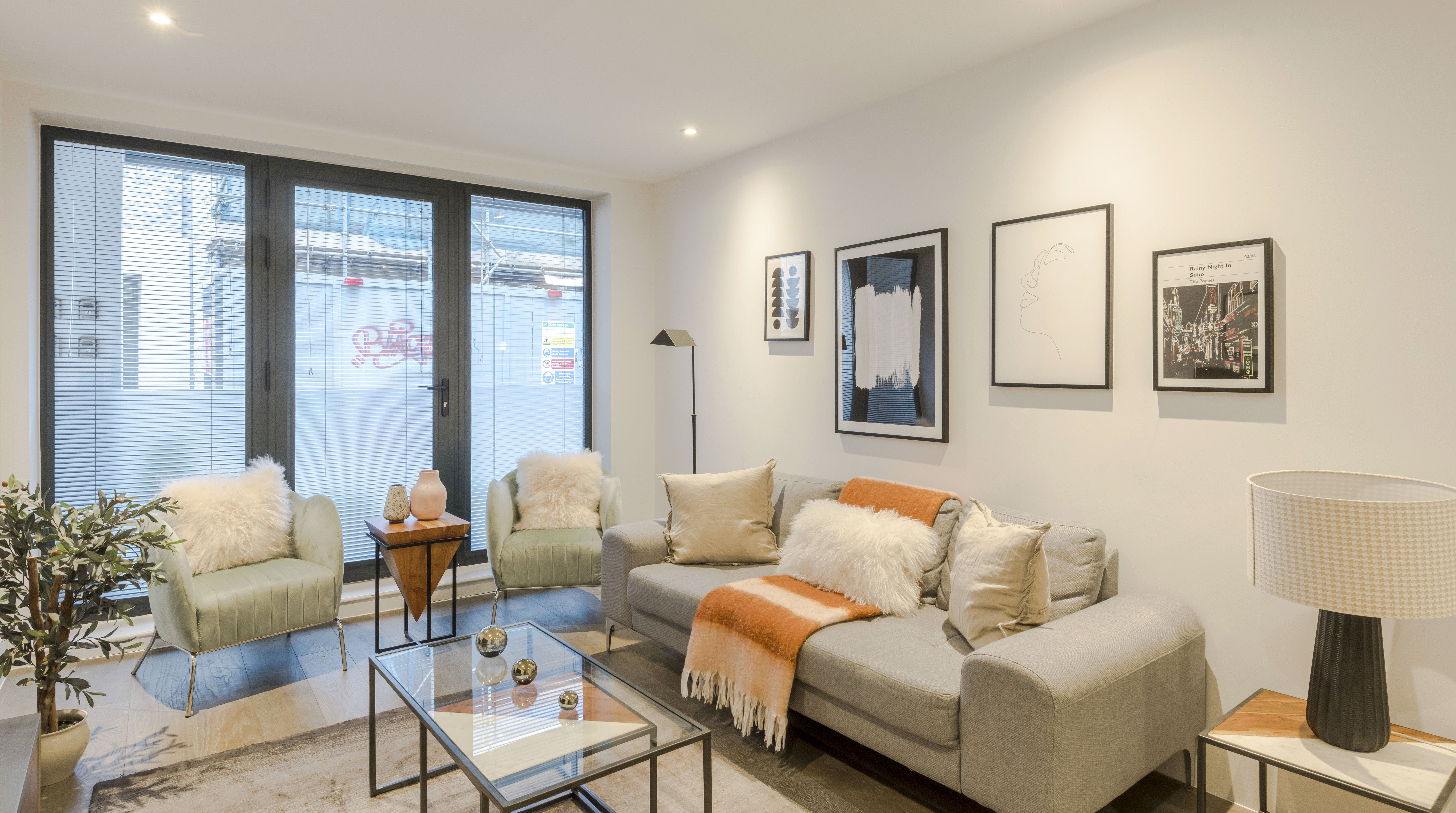 This duplex apartment on a quiet mews street in the centre of London is an example of a designer fully committing to luxury in an interior. You'll notice the attention to detail as you wander about the home, from the sheepskin carpets and wooden floors to the white gloss kitchen fitted with Neff appliances. The living room features sleek mid-century furnishings, while the pristine bathrooms are almost dazzlingly white. There's a strong coherence between all the rooms and it makes for a lovely place to retire to after a long day of exploring the UK's capital. The prime location means that there are attractions in any direction you set off from your front door. The British Museum is a quarter of an hour's walk due west and the Barbican is twenty-five minutes on foot to your east.