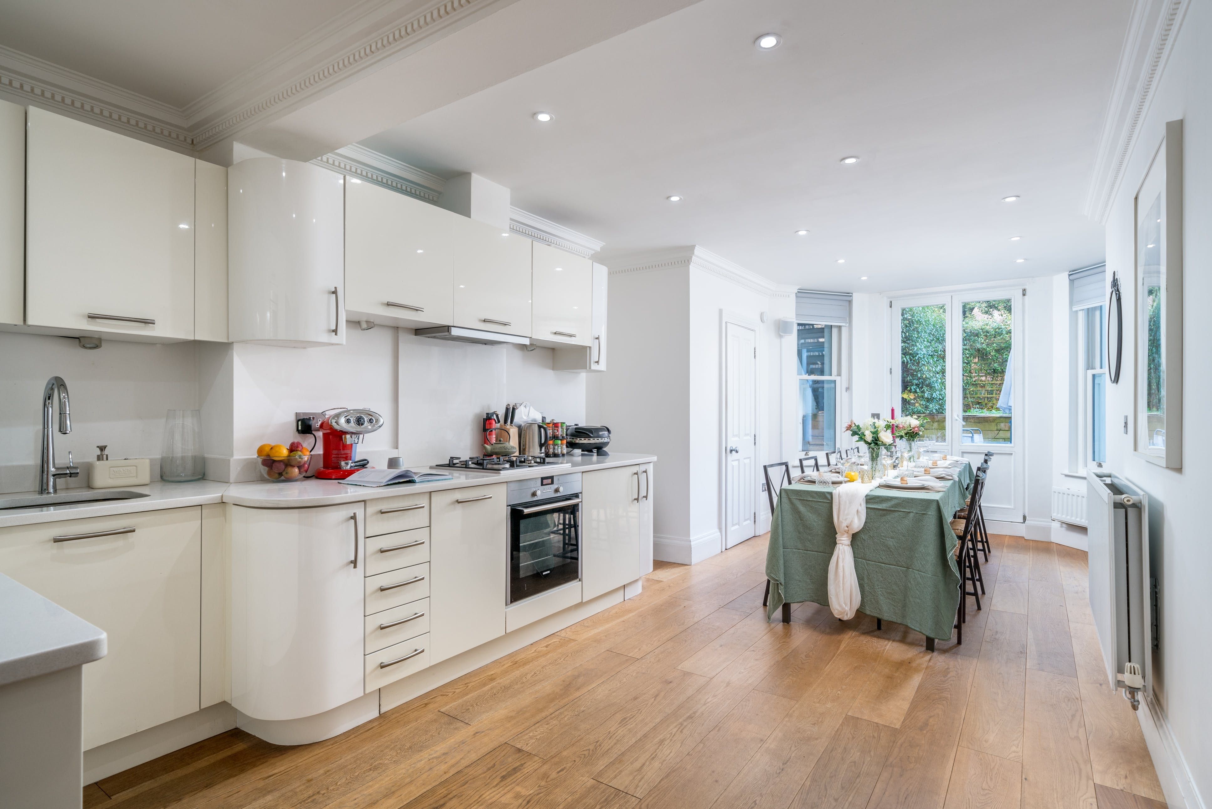 From the wooden floors to the chic furnishings, curated houseplants and a private garden terrace, the home is suburban London living at its brilliant best. You'll soon make yourself at home in the bright and wonderfully open kitchen and dining area that creates a functional space for hosting, socialising and relaxing.