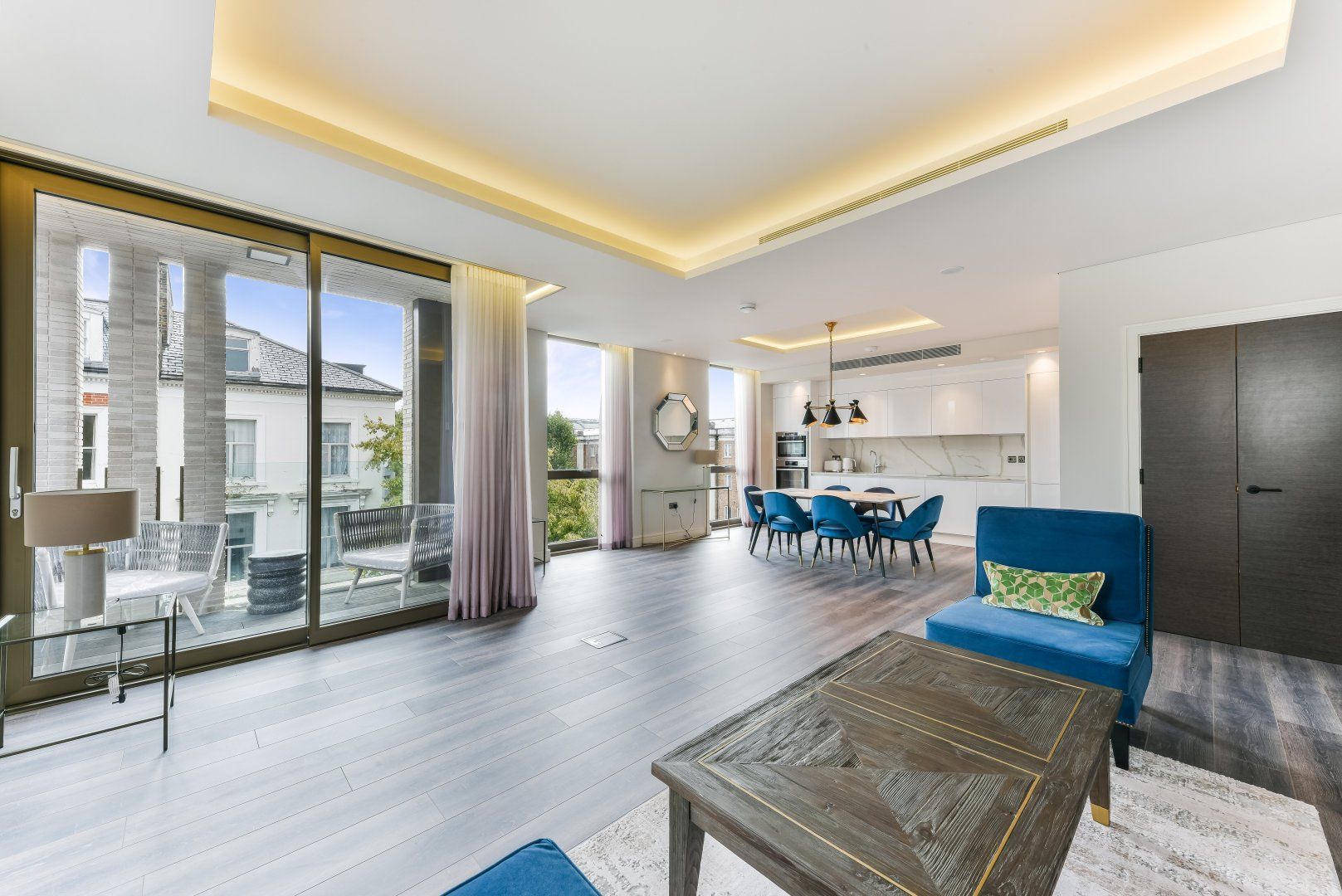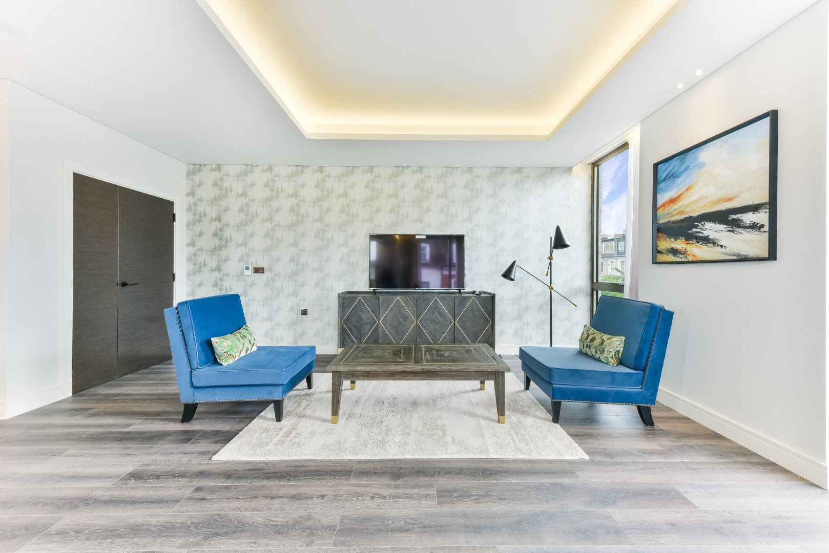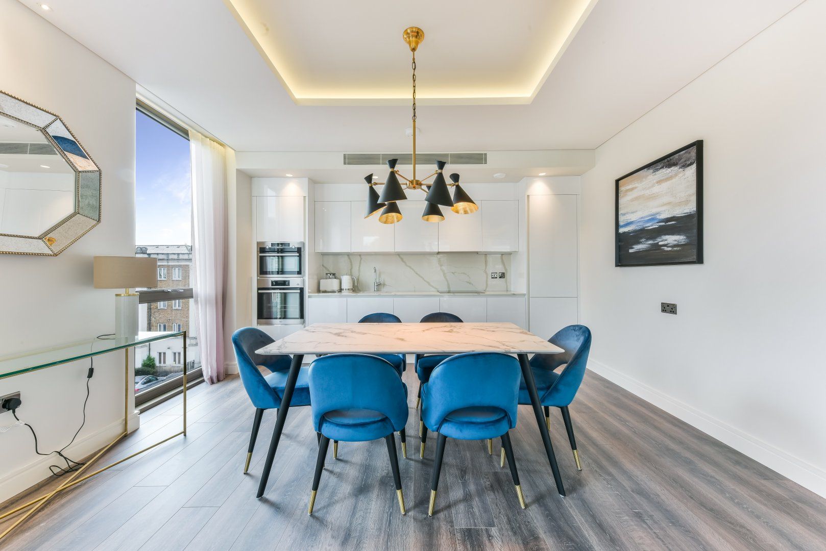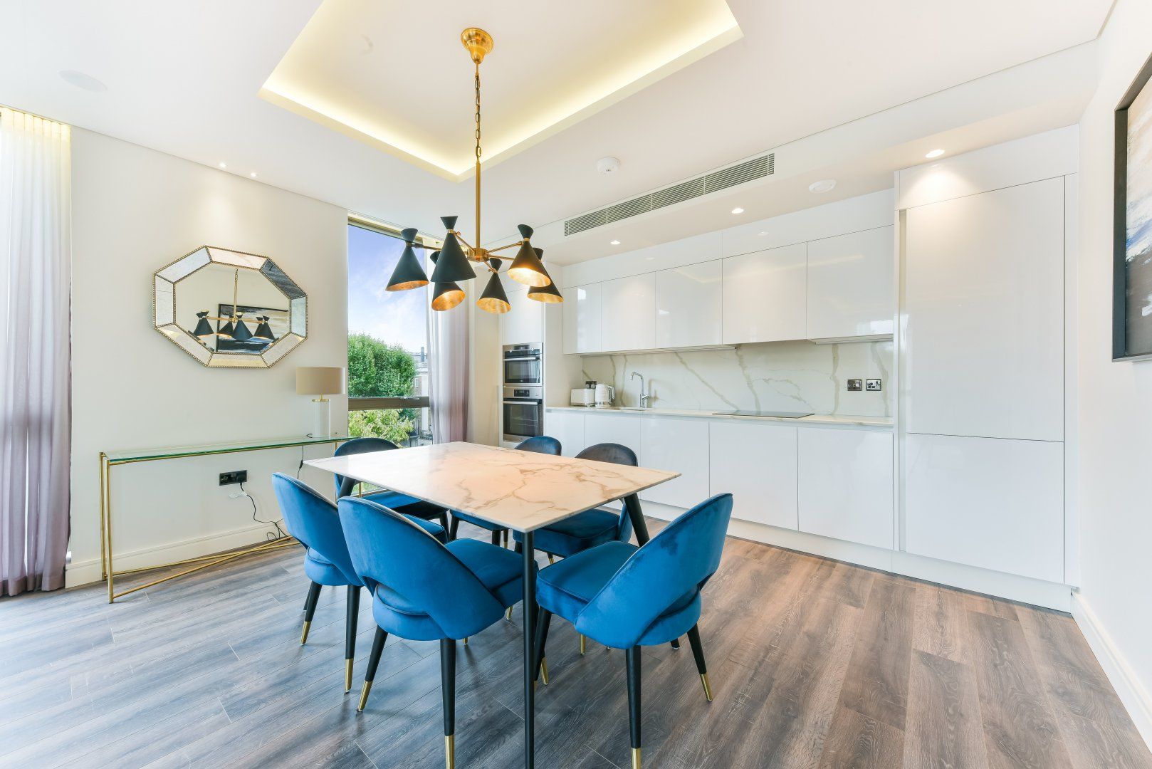 This is a bright and roomy flat, with large windows and an open-plan layout that's perfect for socialising. You'll find plenty of luxe touches inside – we love the plush velvet furniture and the glossy marble accents – but our highlight is the balcony. It's a sweet spot to enjoy your morning cup of joe or a glass of wine as you sprawl out on the rattan furniture, ideal for lingering, laid-back afternoons. Whether you're gathering for a homecooked meal around the dining table or drifting off after a long day in the swoon-worthy bedrooms, there's more than enough space here to spread out and get comfortable. We think it's perfect for a family or small group wanting a quiet spot that still has easy access to central London – Oxford Circus is a ten-minute tube ride away.