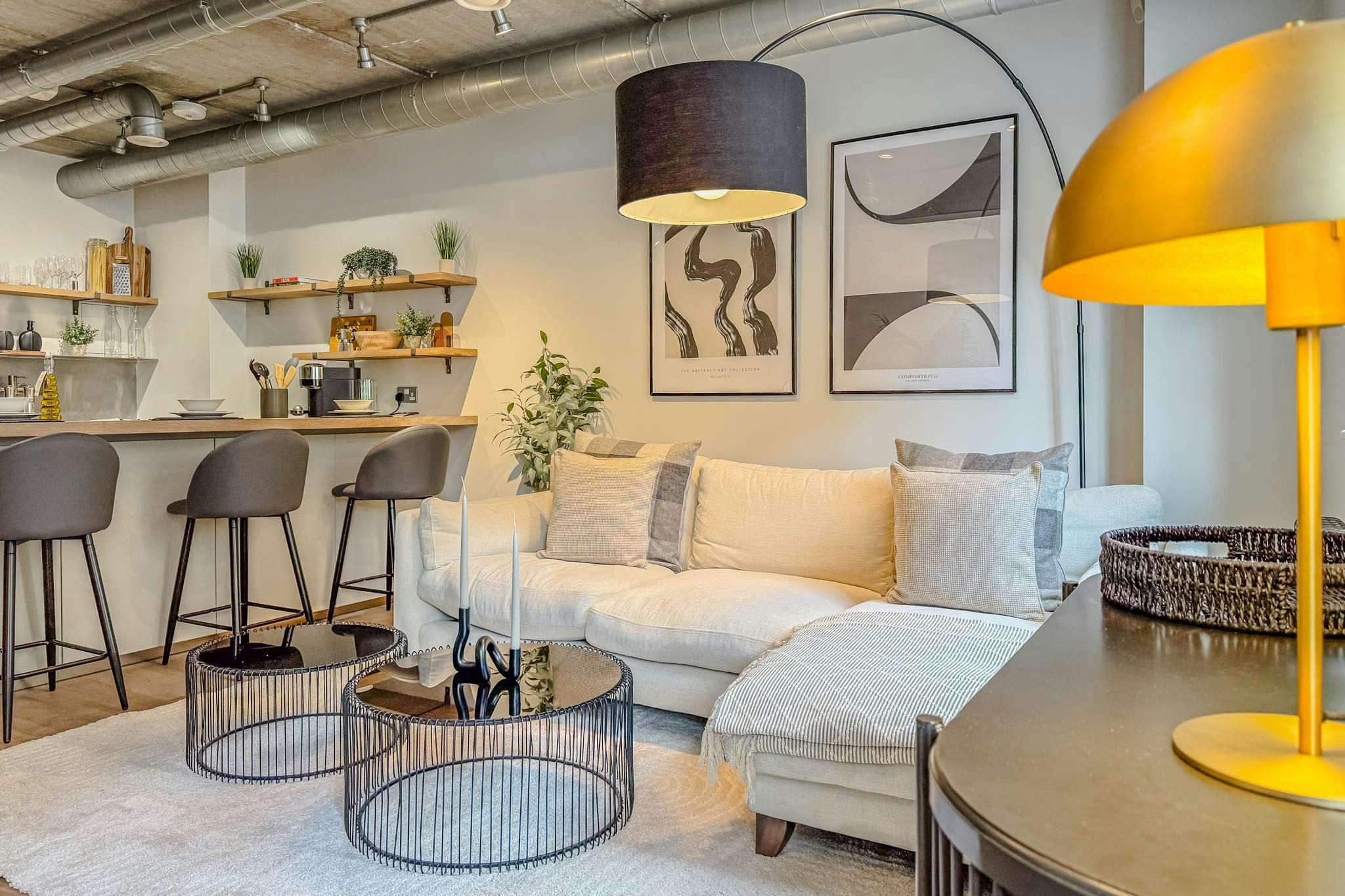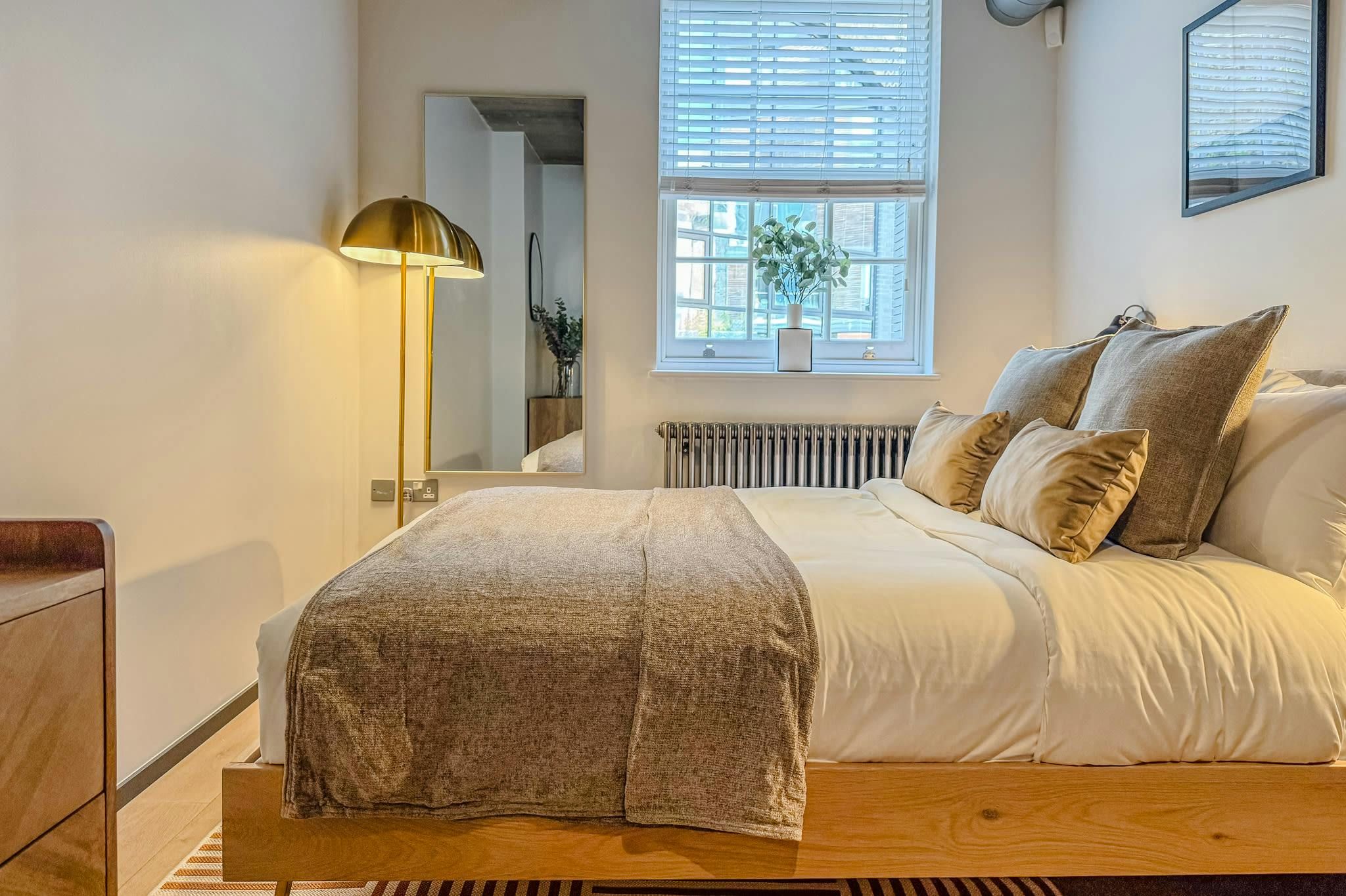 Moments from the banks of the River Thames, this Southwark apartment has been thoughtfully curated as a city sanctuary. Inside, the open-plan design makes it easy to relax, cook or catch up on work. It’s worth noting the second bedroom is compact, but it does open up onto a private terrace – perfect for evening drinks. Outside, it’s just a short walk to iconic landmarks like Shakespeare's Globe Theatre and the Shard. There are also great public transport links and you’ll find Borough Market, historic pubs and galleries are all within easy reach.