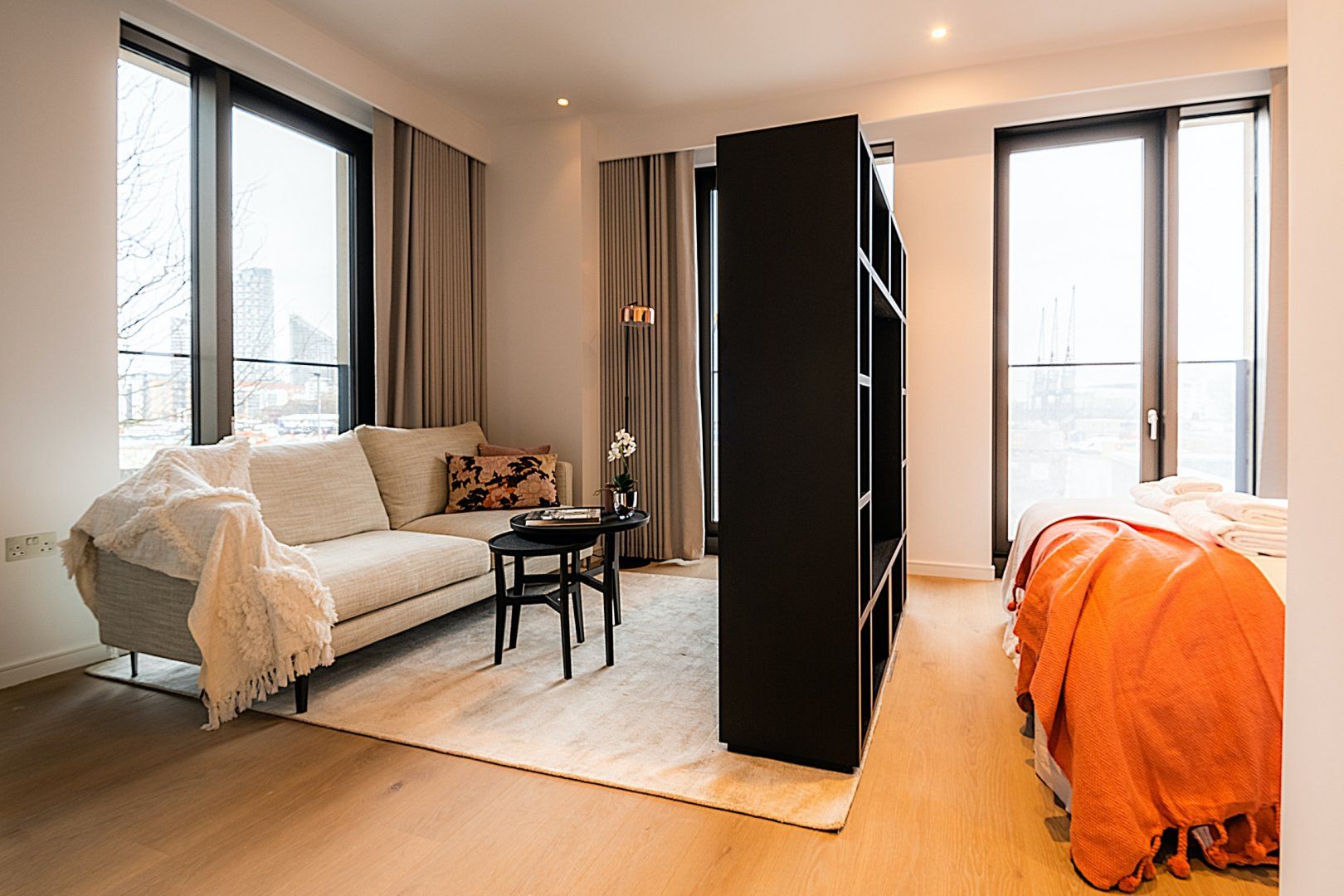 You'll find this stylish studio in one such building. With views over the river, it's reminiscent of a trendy hotel, but that's why we love it. The layout makes the most of the small footprint, so even though it's an all-in-one living space, it feels like there are separate areas to chill out, cook and sleep. Floor-to-ceiling windows and Juliet balconies flood the room with light, while the contemporary and sleek finishings fit right in with ultra-cool Canary Wharf. Best of all are the amenities, including a co-working space area and a shared south-facing shared terrace where you can sip wine and watch the water. Sounds like heaven to us.