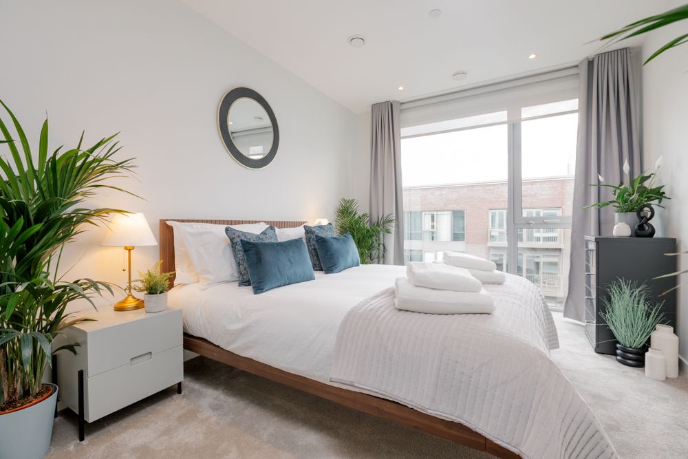 This comfortable, modern apartment is in an attractive development in Nine Elms, close to The Oval and Battersea Park. Pimlico is just across the river, and there are great transport links to the rest of London. The apartment is simple yet stylish, with an open-plan living, dining, and kitchen space. The kitchen is sleek and well-equipped, so cooking at home is a breeze – though you’ll have plenty of restaurants, pubs, and cafes nearby if you don’t fancy cooking. The bedroom is cosy and attractive, with large windows that bring in plenty of light.