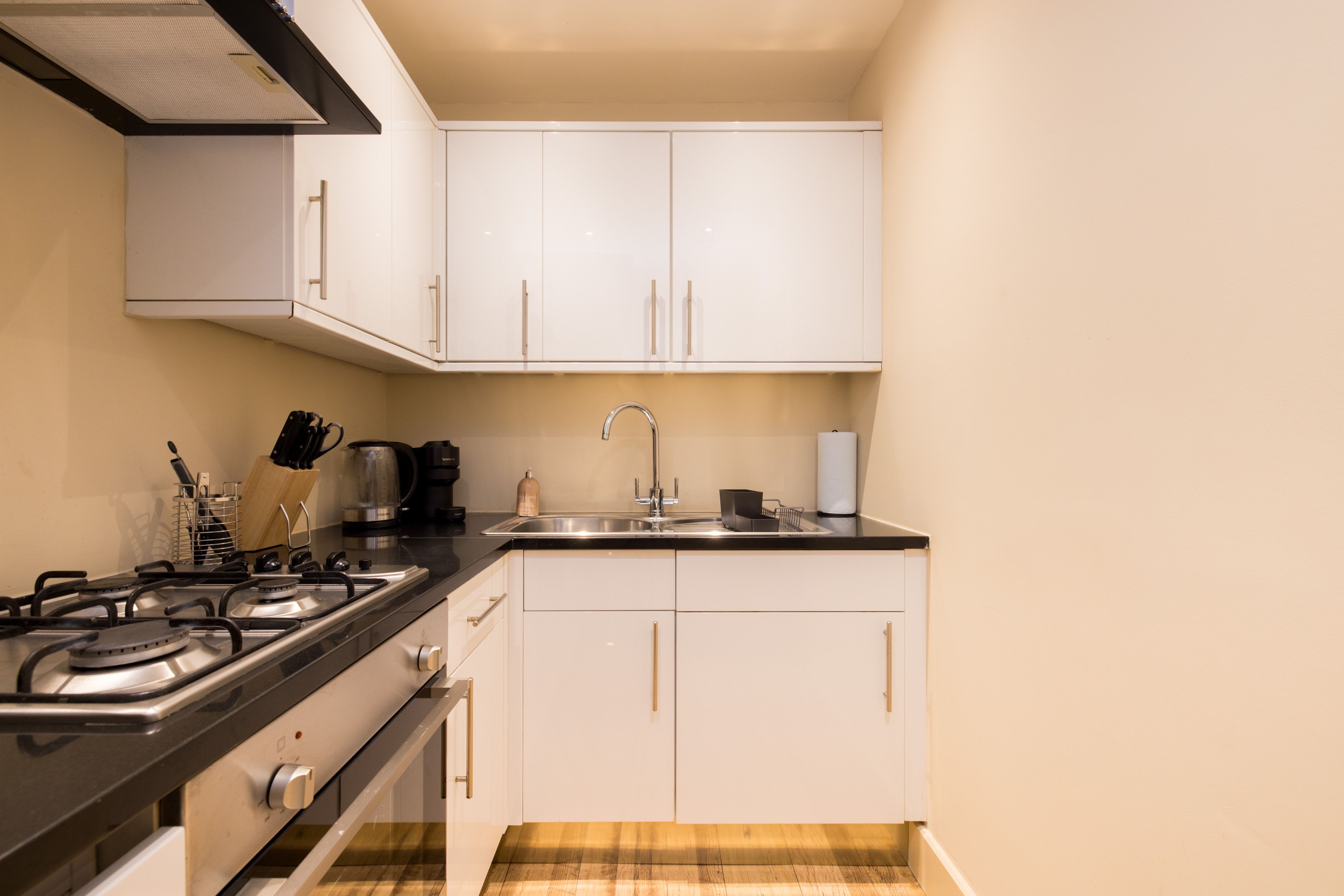 This modern apartment is an ideal base whether you’re in London for business or leisure. Perfectly proportioned for three, it’s worth noting that at full occupancy, one person will be sleeping on the sofa bed in the living room. Still, it’s a small price to pay for this home’s location. Locally, you can enjoy a visit to Tate Britain or a stroll along the River Thames. And for those keen to explore further afield, Pimlico Victoria Line is a mere four-minute walk away, so hopping across the city is a breeze.