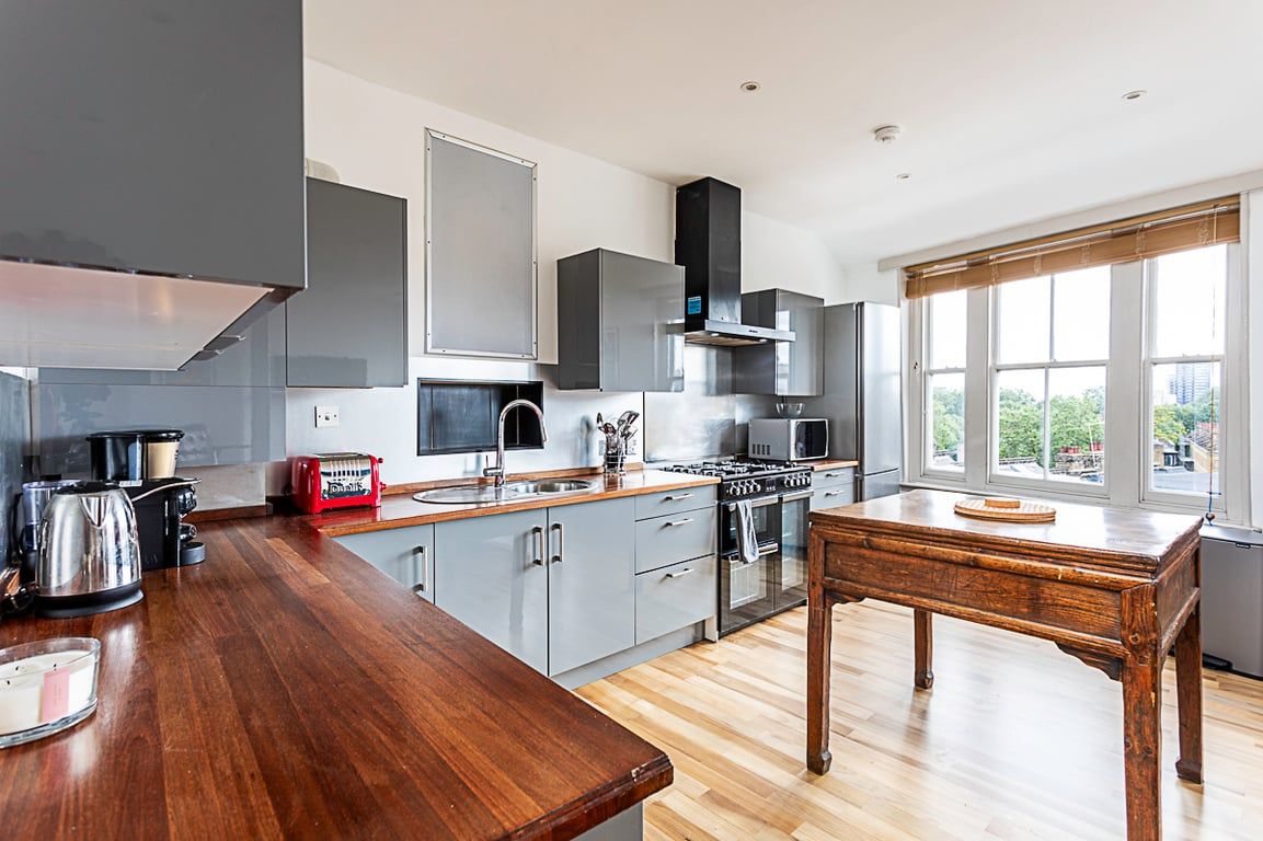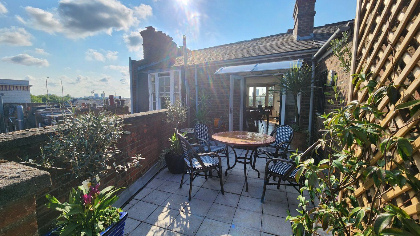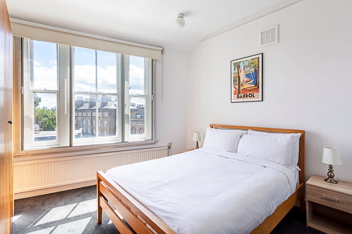 This penthouse apartment boasts views of Islington from every window. It’s an attractive, light-filled home in an excellent location, a few minutes on foot from pubs, restaurants, and shops. Angel Tube station is a twelve-minute walk away, giving you easy access to the rest of London. The apartment boasts a terrace, perfect for enjoying warm weather and unwinding after seeing the sights of the city. Modern and comfortable, this apartment features a kitchen with top-of-the-line appliances and desks in each bedroom.