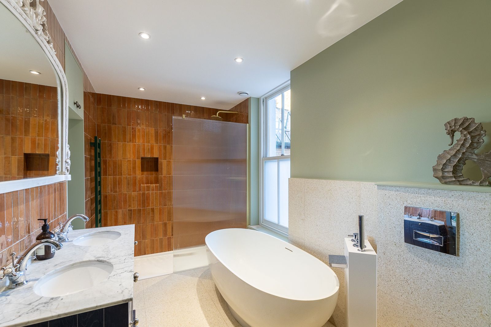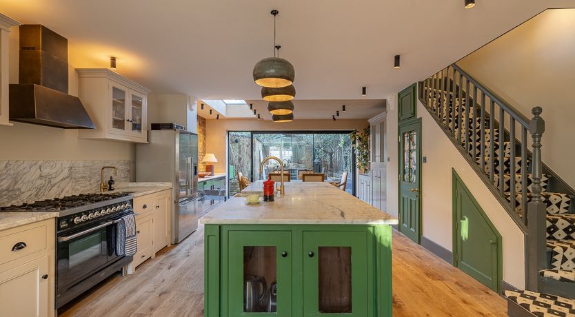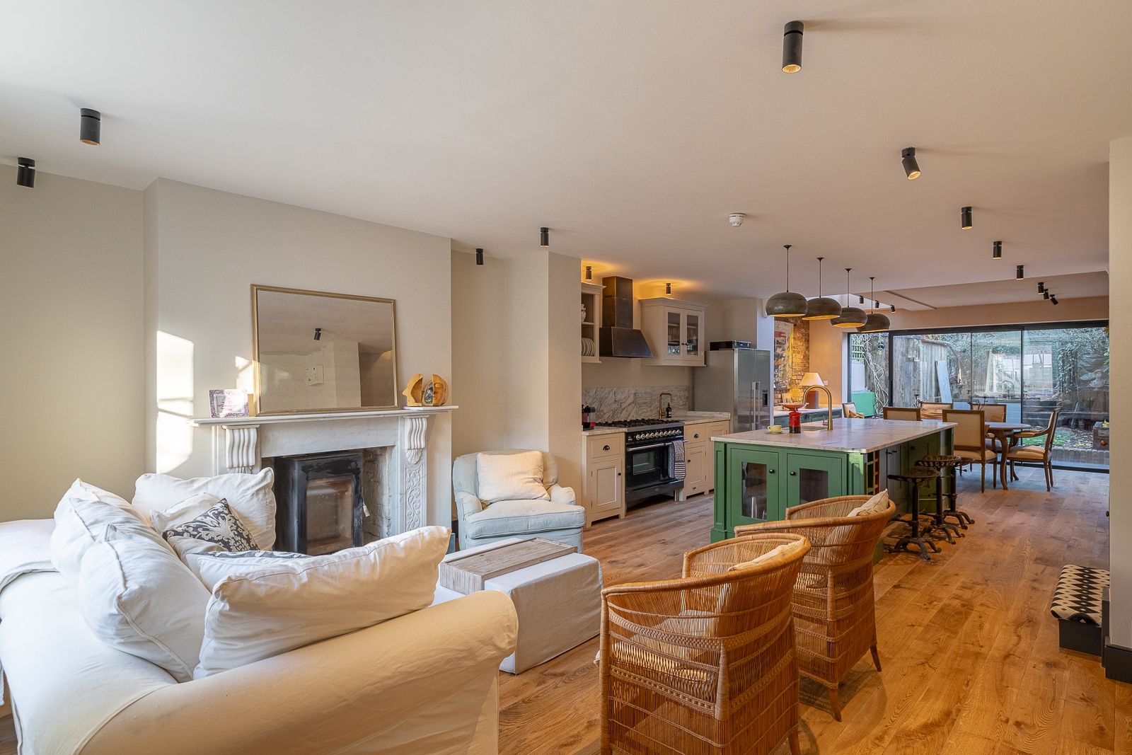 This beautiful two-floor apartment is just a short walk from both Primrose Hill and Hampstead Heath. It’s the perfect place for a family or group of friends to call home while staying in London, though the sleeping arrangements may not suit everyone – at full occupancy, two guests will sleep on a sofa bed in the living space and two will sleep on a raised bunk-bed-style bed with limited room above. Beyond that, this home is a delightful base, with a striking open-plan kitchen, dining, and living space with skylights and sliding doors leading to a charming garden. It's suitable for long-term stays too.