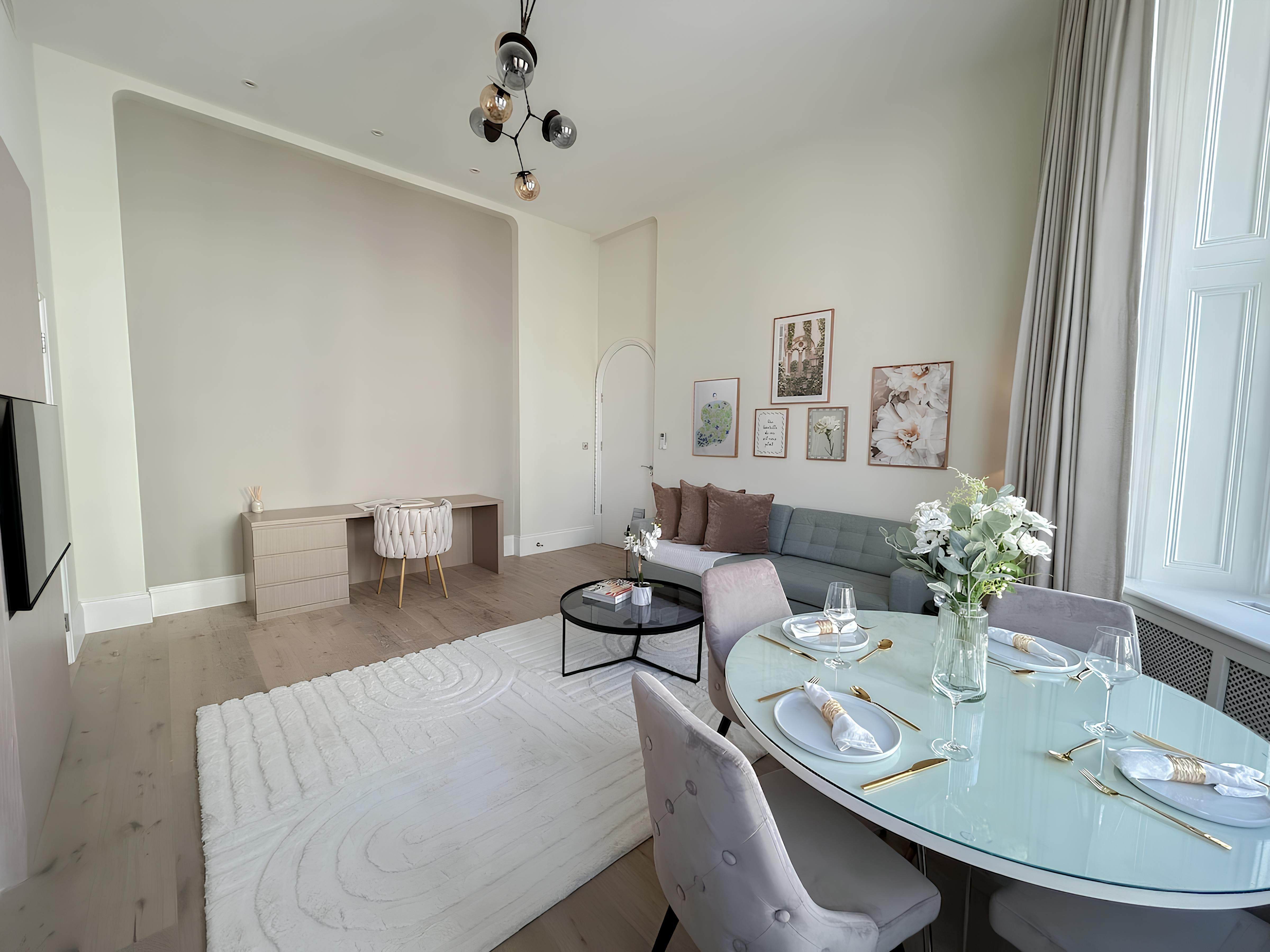 This chic, contemporary pad is tailor-made for solo travellers and couples alike. Whether you’re in London for business or leisure, this home drops you in a prime position in South Kensington. We love the light-filled living area, and, step through the bedroom and you’ll find a quaint balcony, perfect for morning coffee or an evening aperitif. Location-wise, it’s an easy stroll to some of the capital’s most iconic museums, Hyde Park and Kensington Gardens, or you can hop on the Tube at Gloucester Road Underground Station for trips further afield.