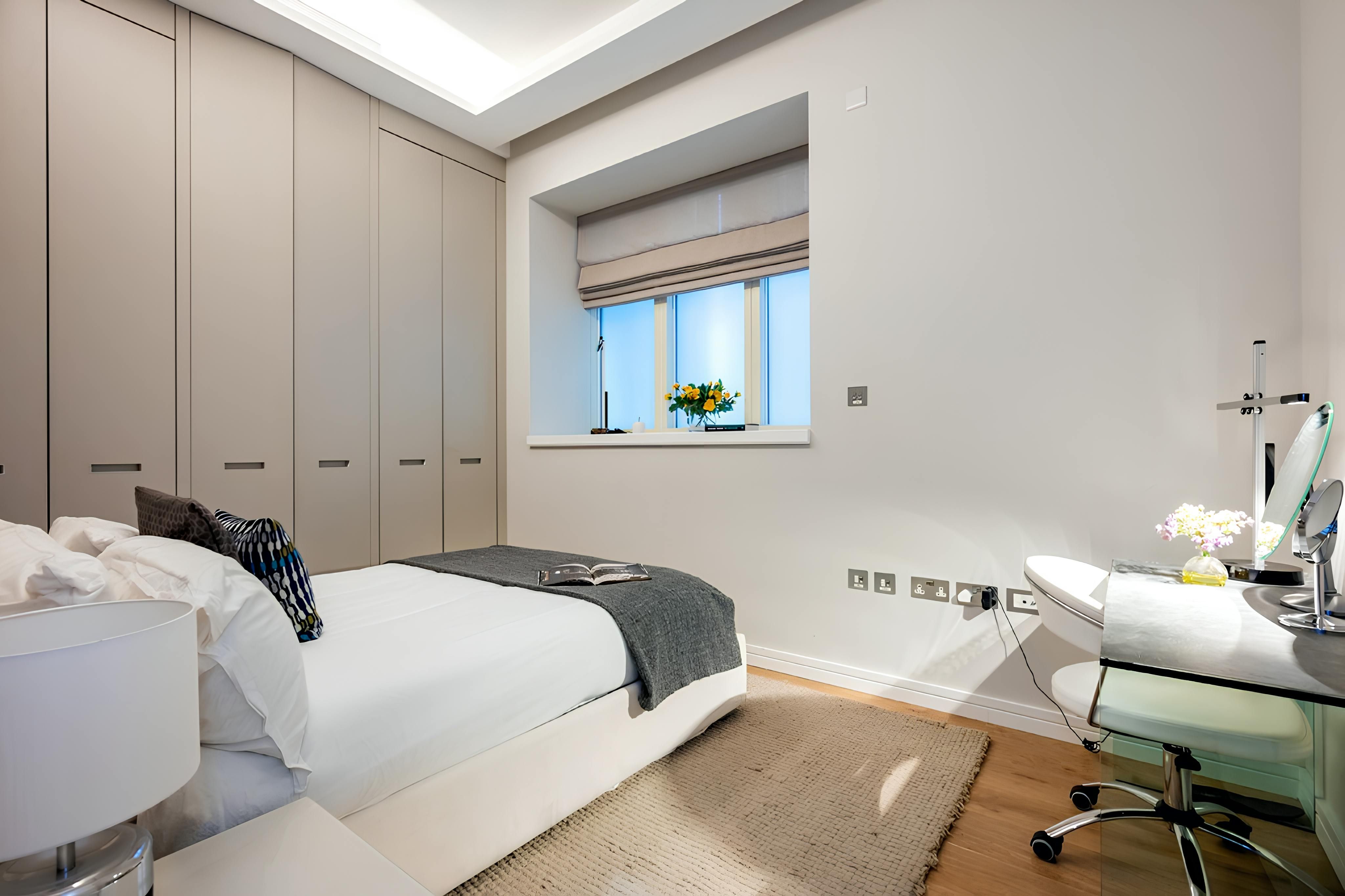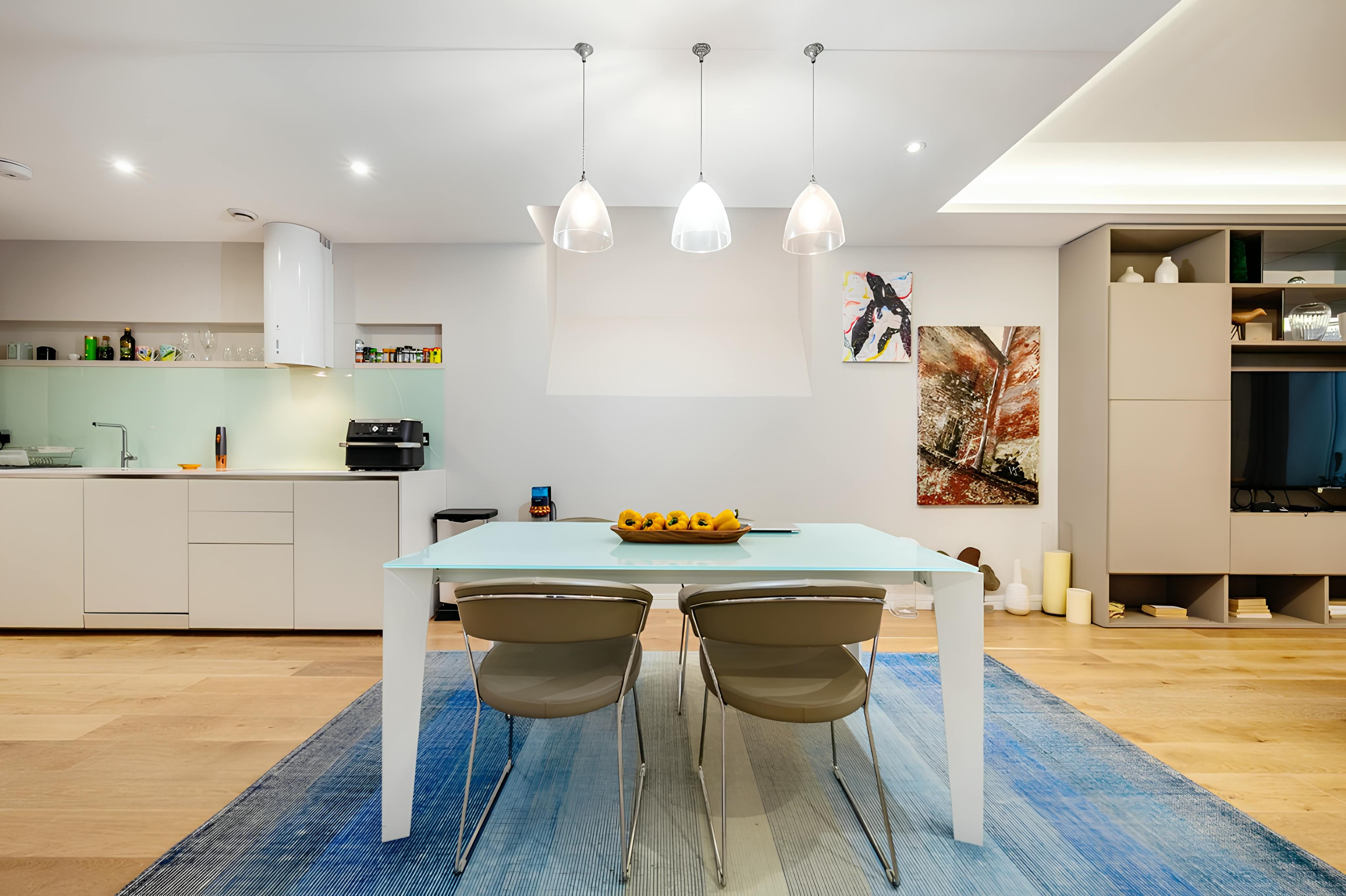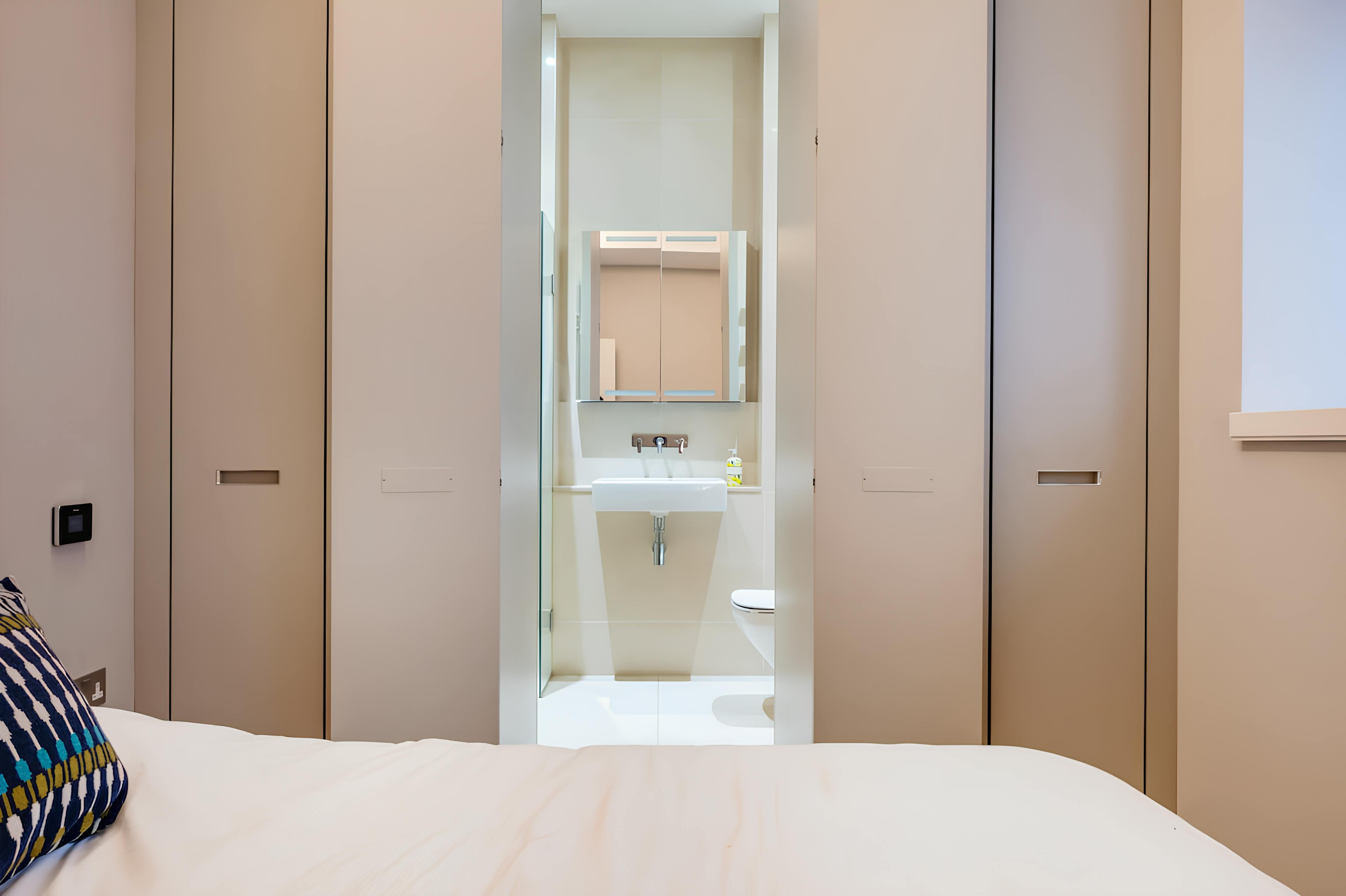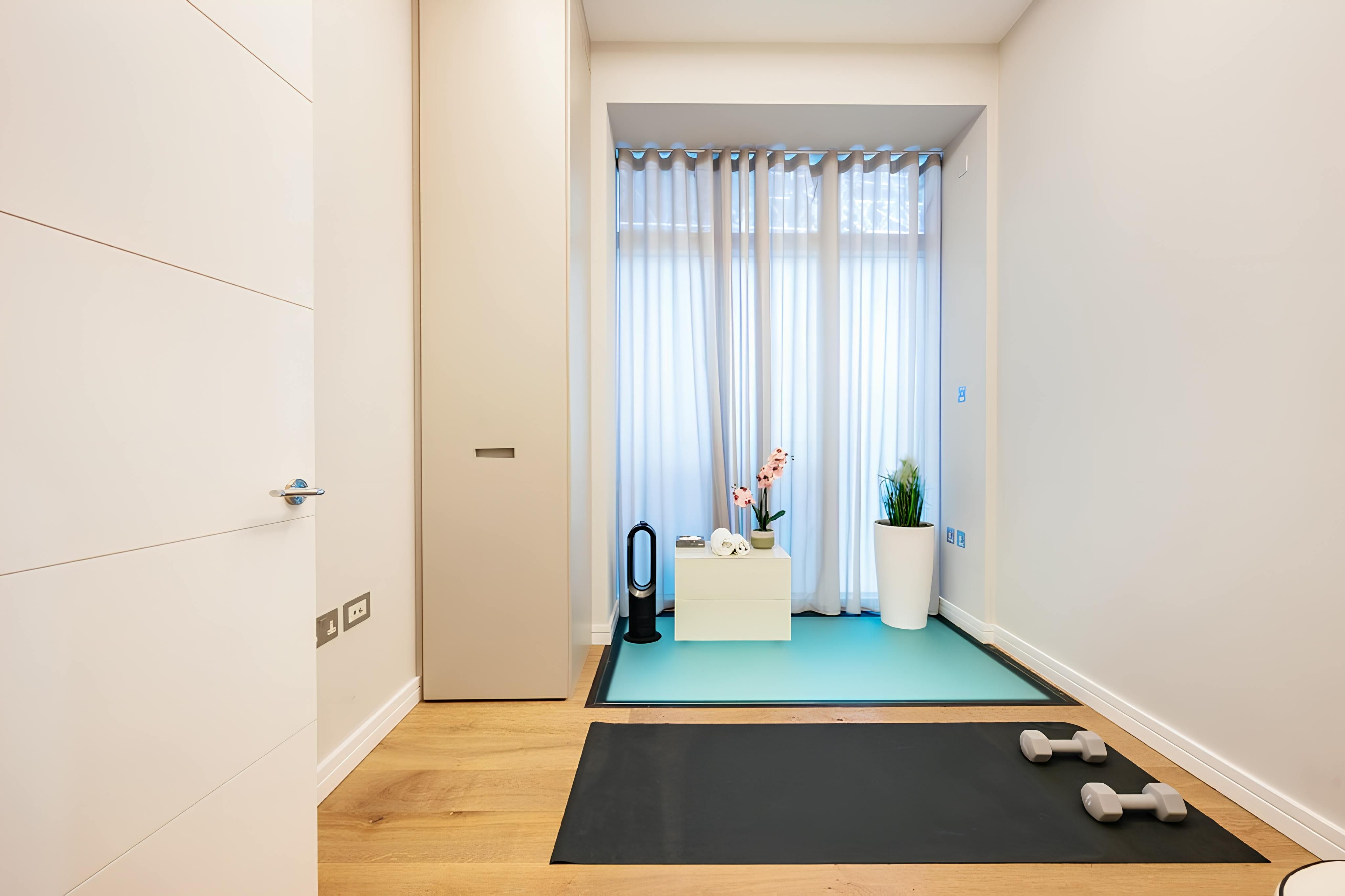 This stylish duplex apartment couldn’t be closer to Leicester Square – it's less than a thirty-second walk away. From there, you can effortlessly access Chinatown, Soho, and Covent Garden. Despite its central location, this is a peaceful London home. It faces an internal courtyard – it's a charming spot for a morning cuppa. The third bedroom has a small double bed that’s suitable for two children to share, and the room doubles as an exercise space. Convenient and comfortable, this apartment is a great choice for long stays in London.